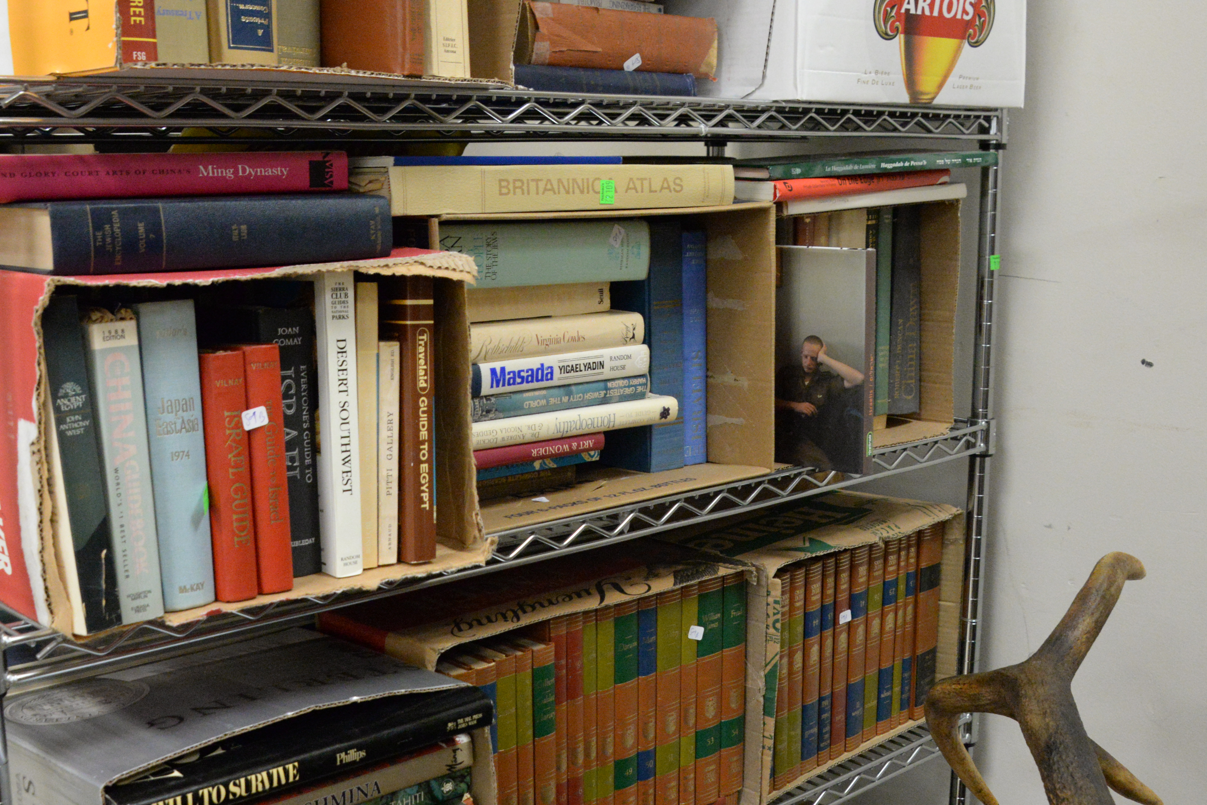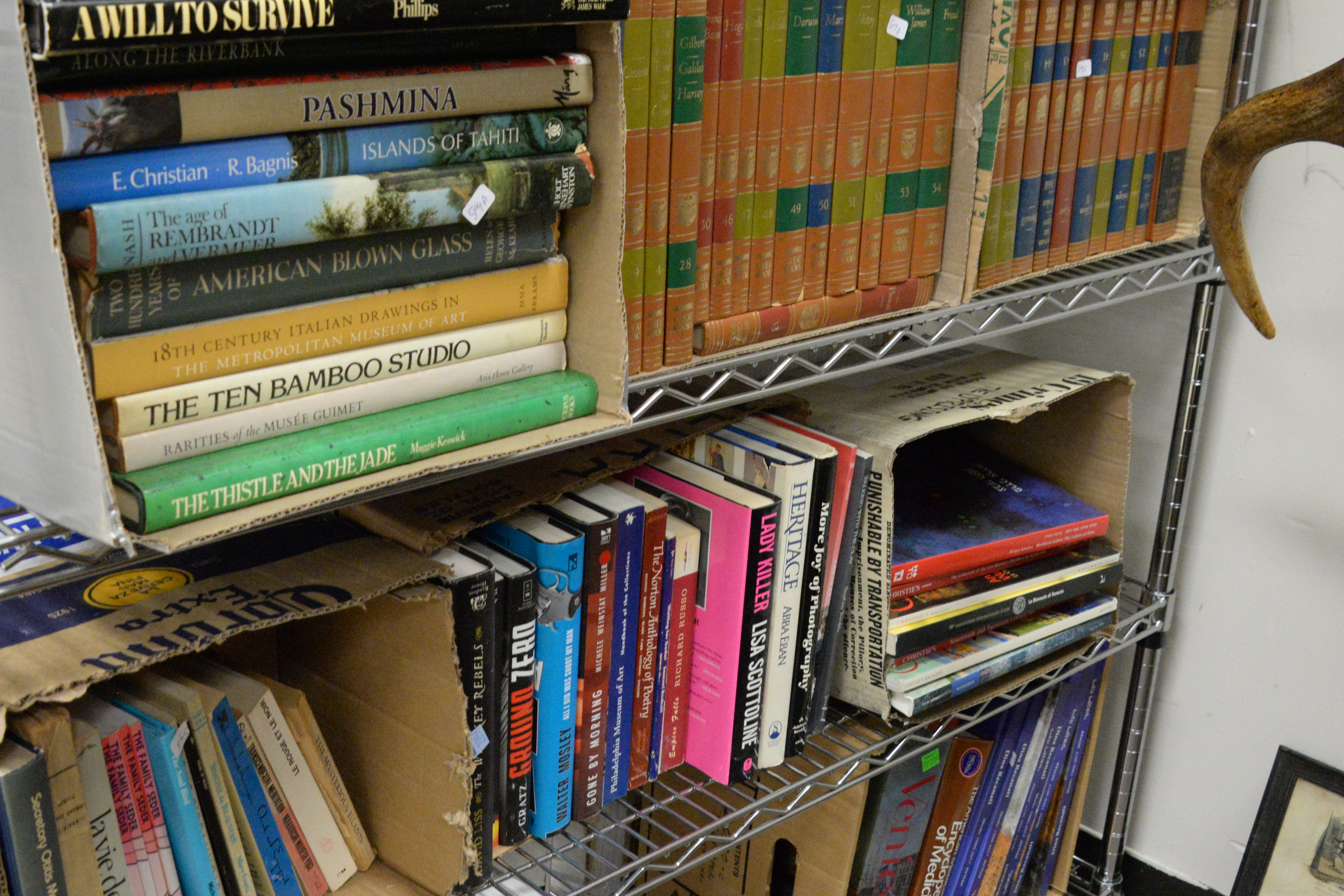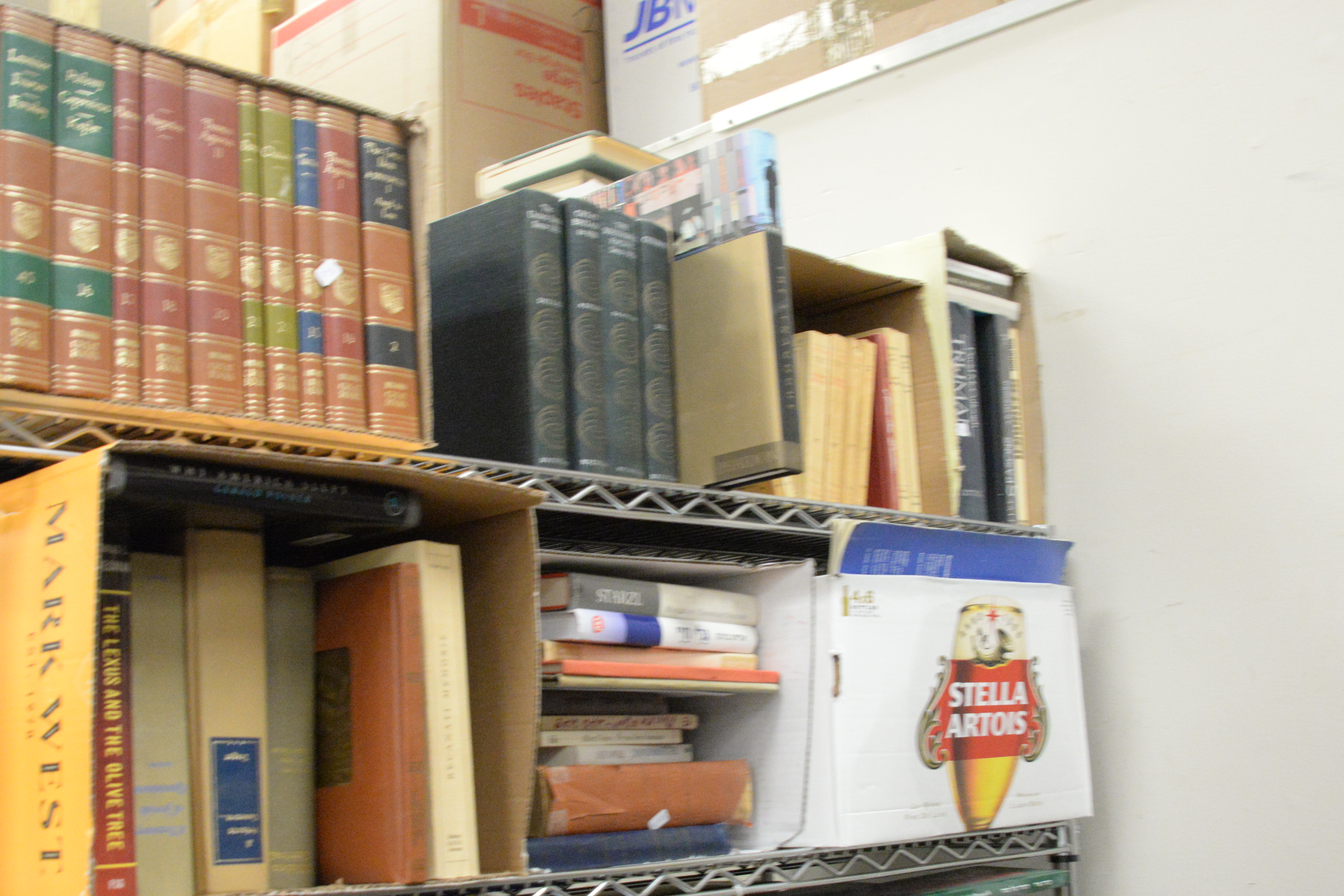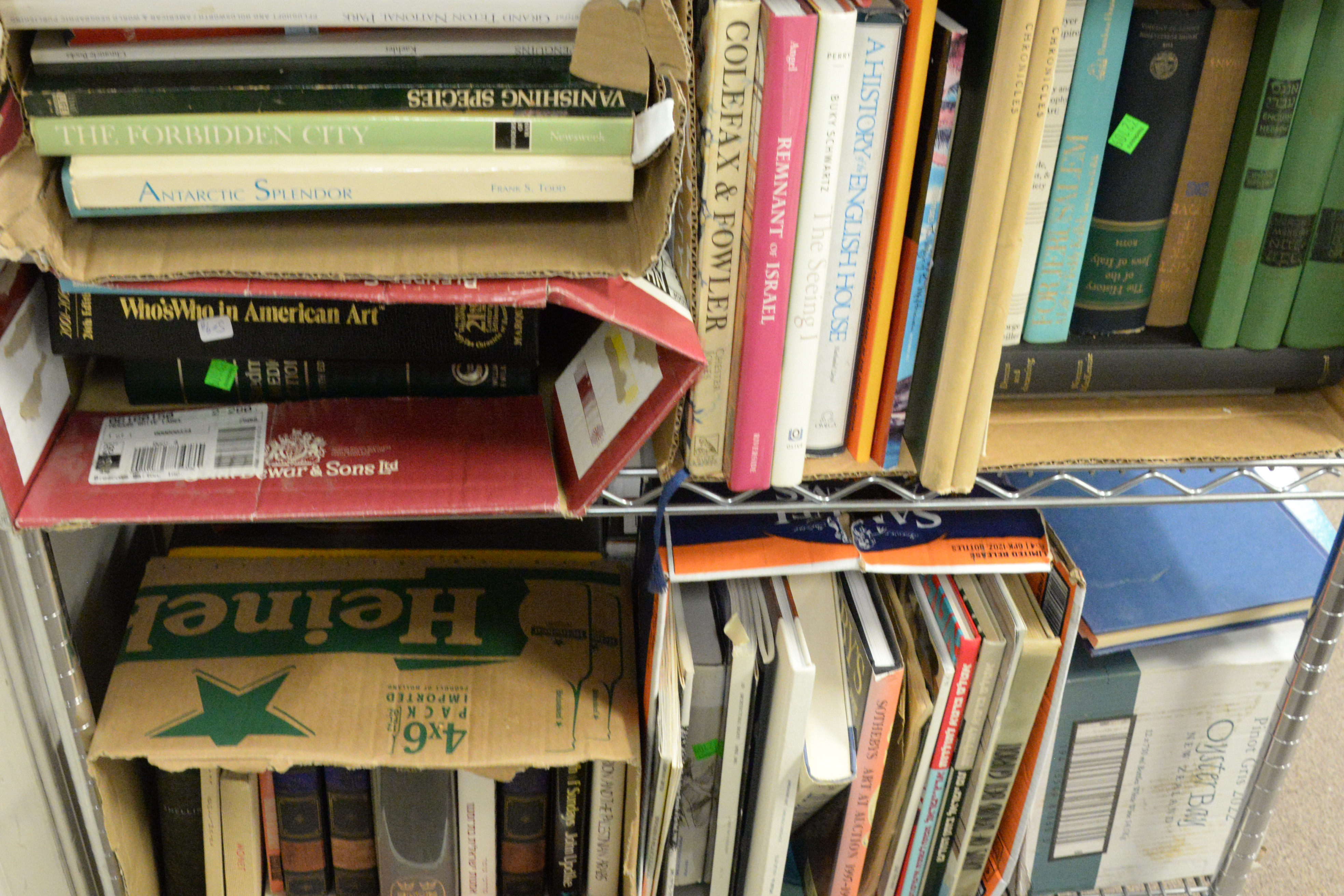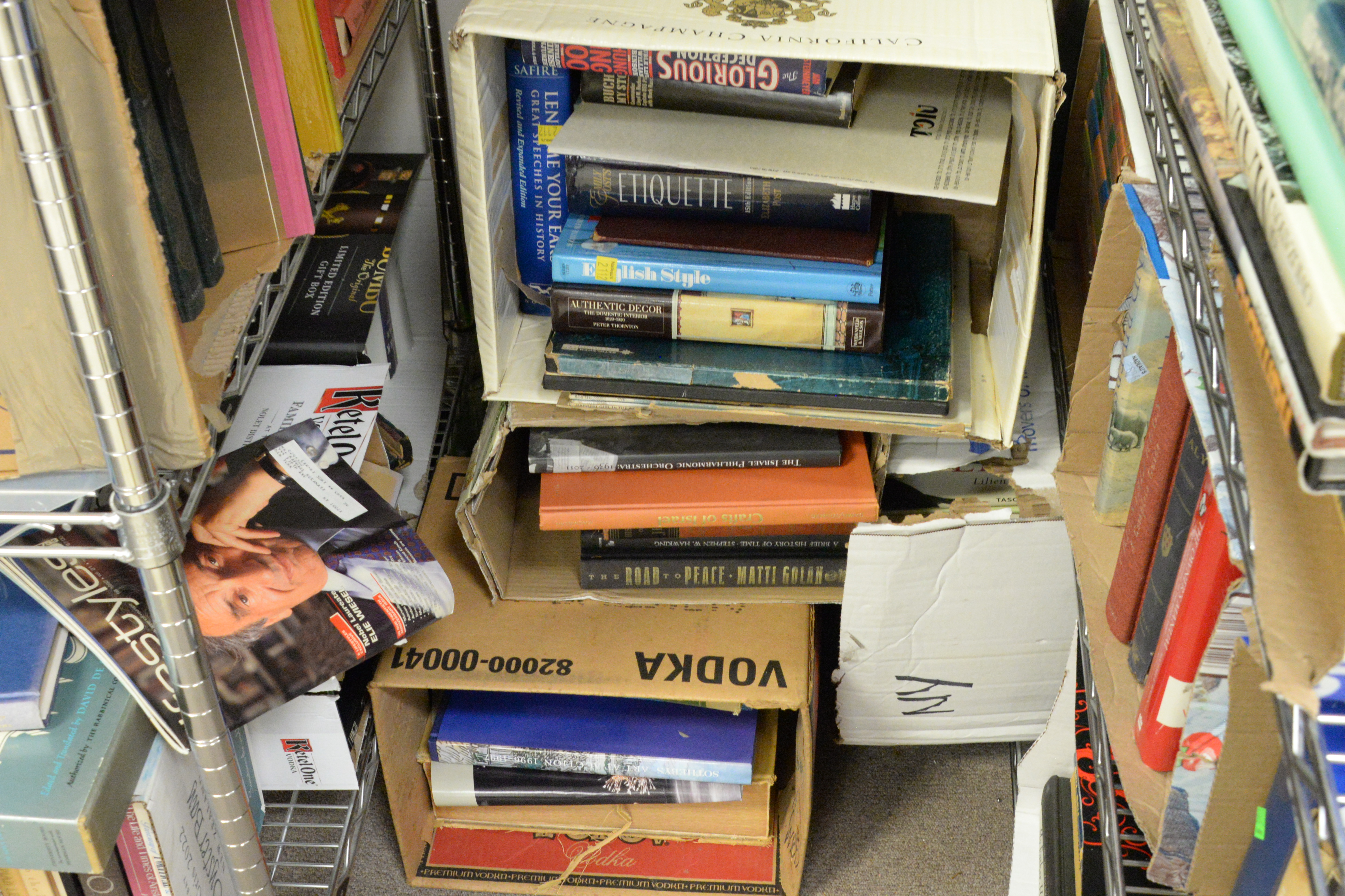 Four racks of books, to include mostly hardcover, some coffee table books, etc.