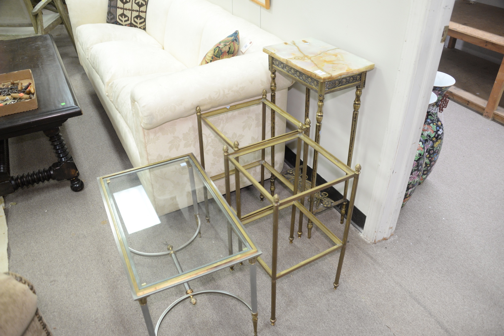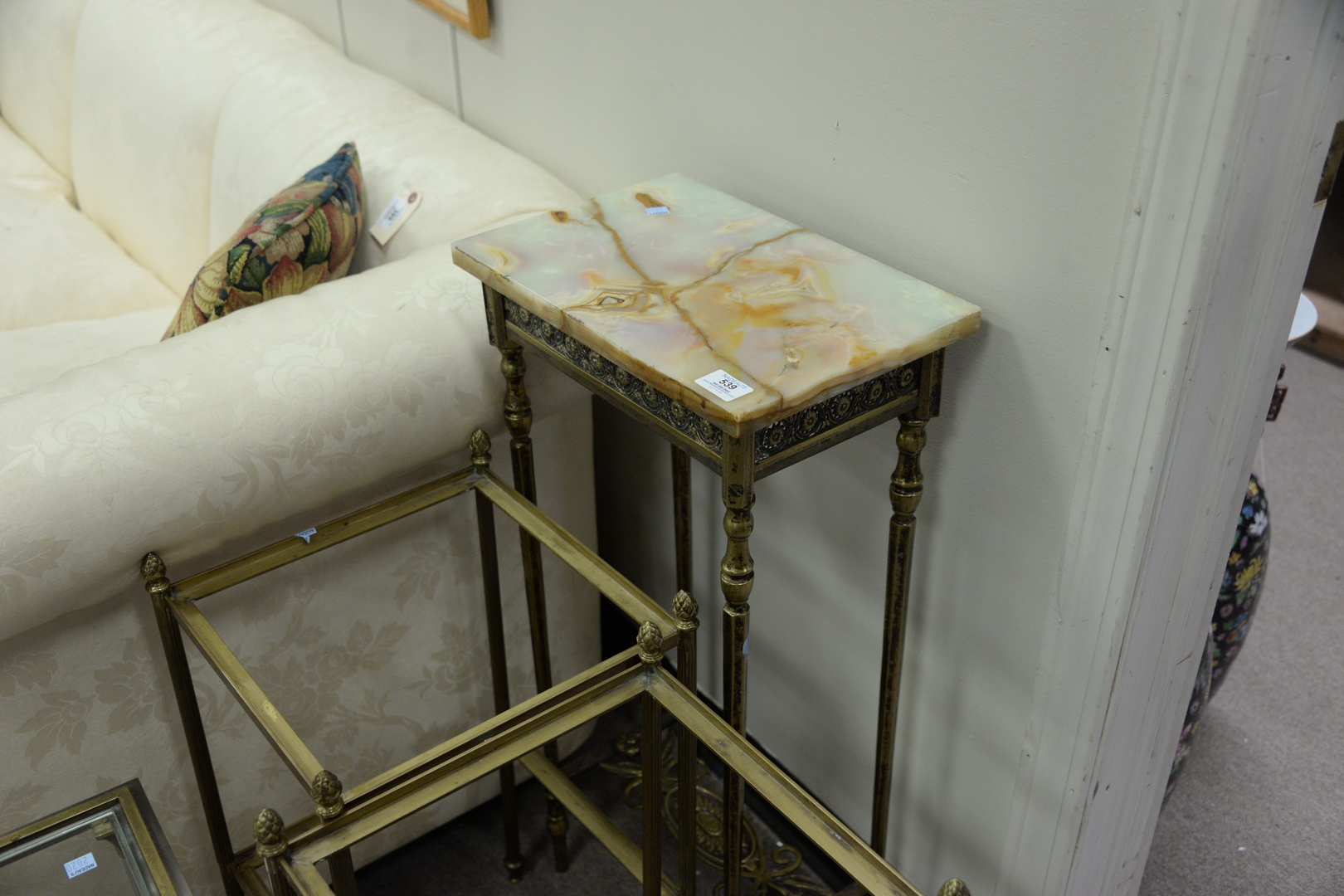 Four Stands, to include one with onyx top, height 31 1/4 inches, top 10″ x 15″.