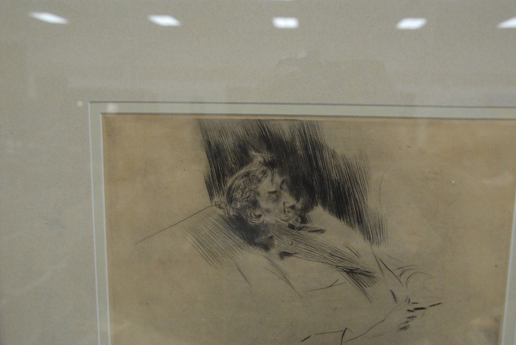 Giovanni Boldini 1842-1931 WHISTLER ASLEEP drypoint unsigned sight size 8 1/2 x 12
