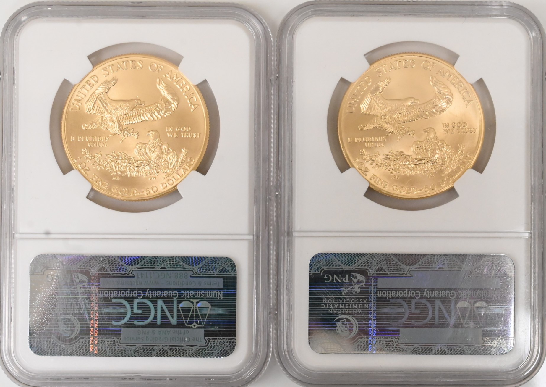 2010 Two NGC 69 $50 Gold Eagles, one ounce each.