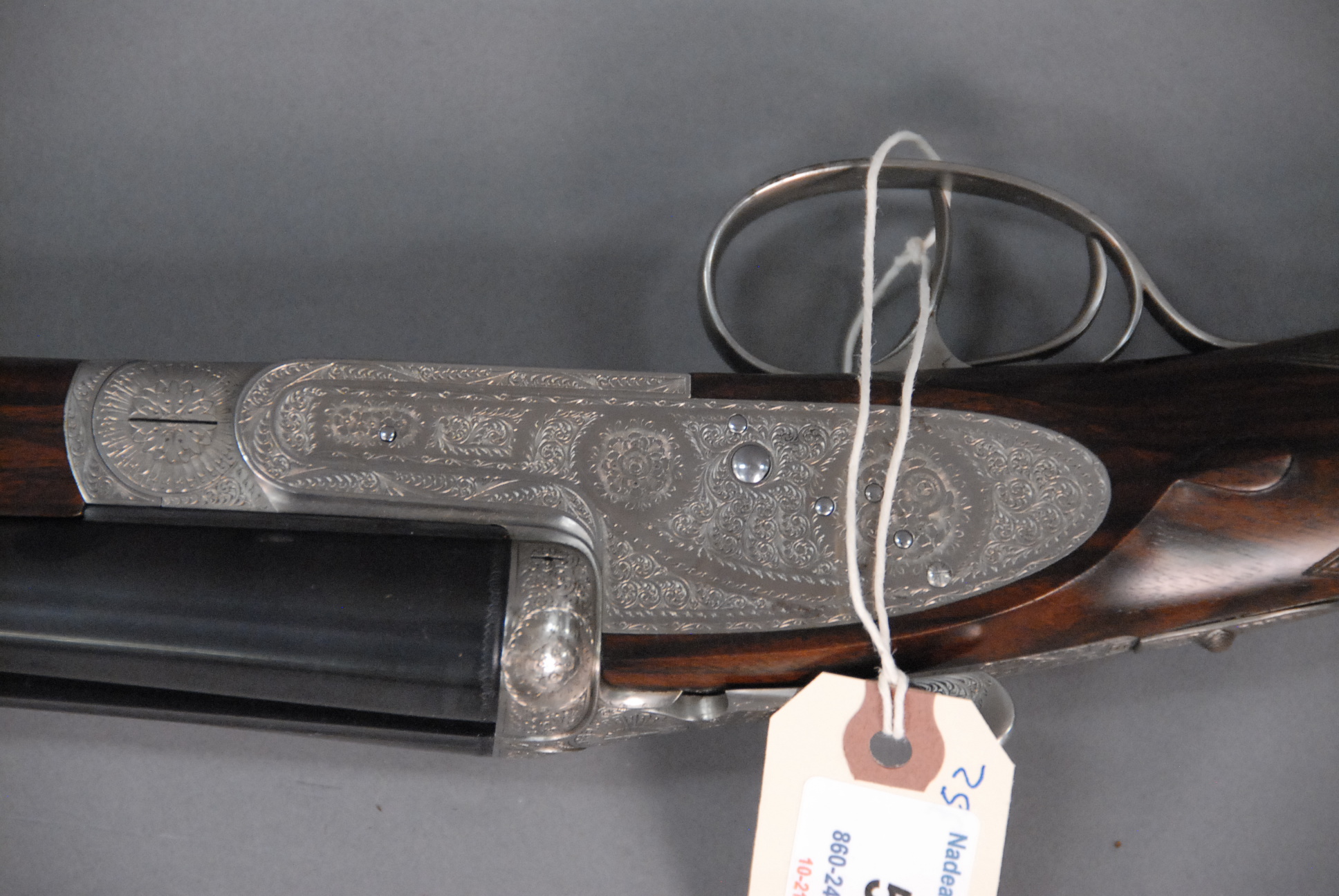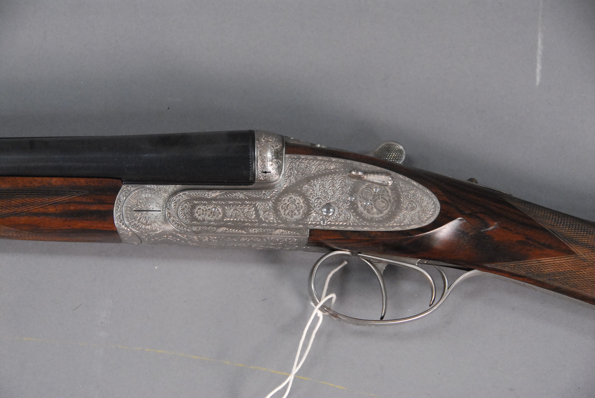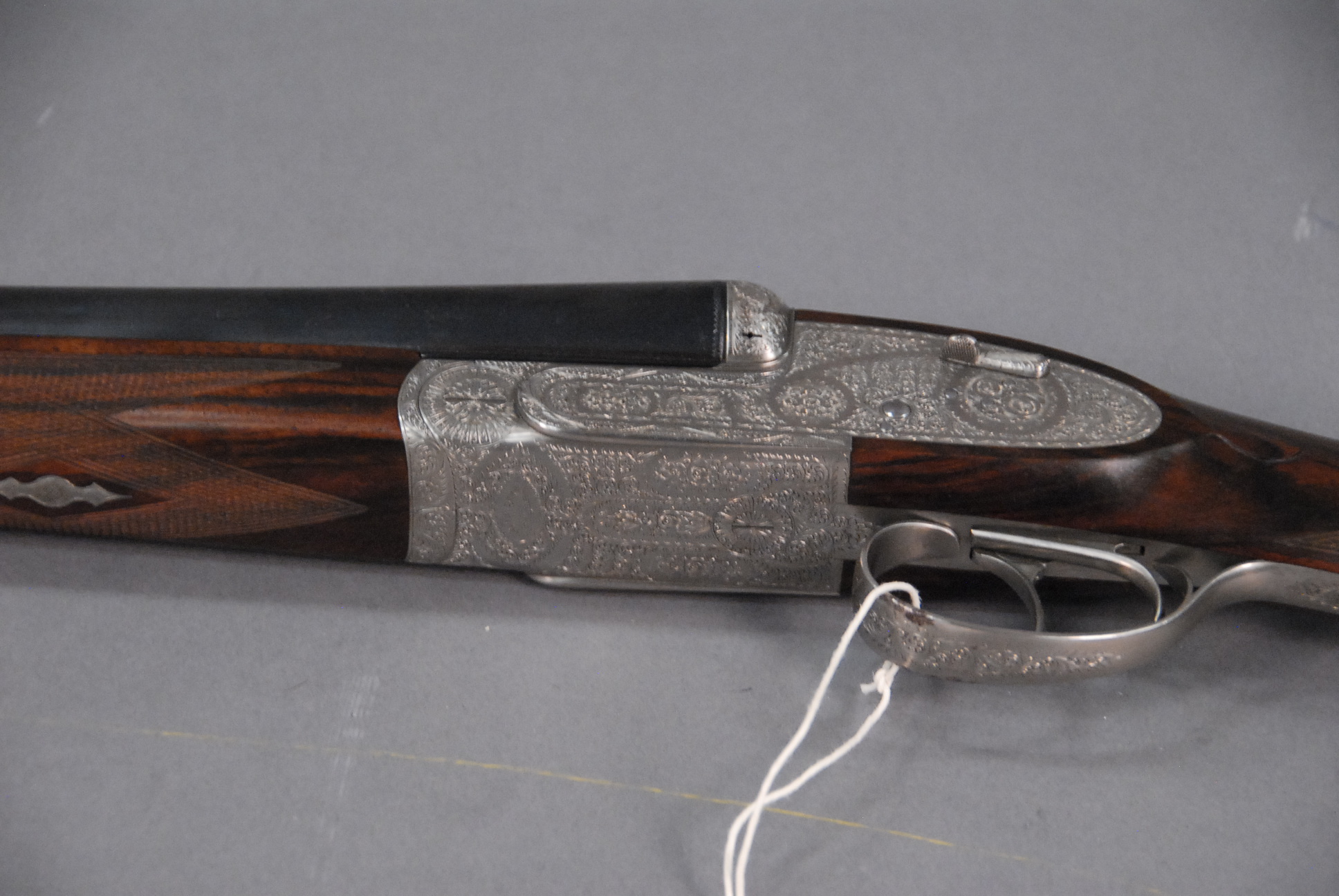 Lot 54: Armis Garbi, model 103, shotgun, William Larkin Moore & Co., side by side, 20 ga., having hand engraved rose and scroll, double trig…