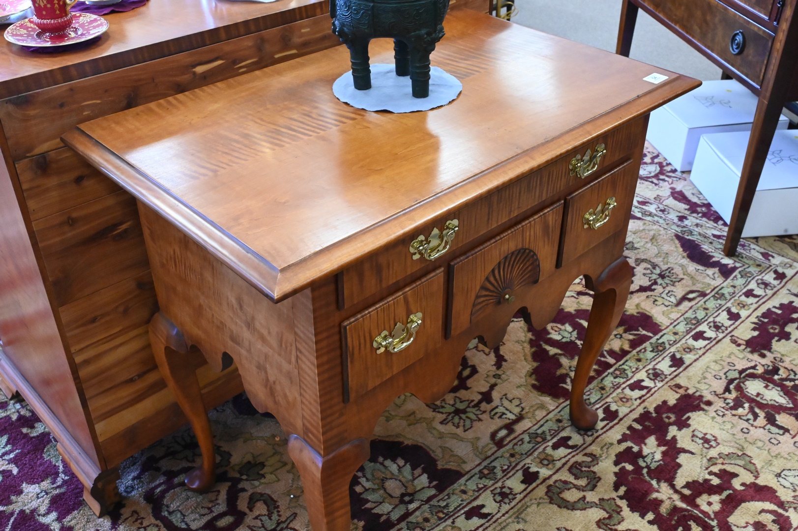 Benchmade Tiger Maple Queen Anne Style Lowboy/Dressing Table, having one long drawer over three drawers, along with shaped skirt, height 30 inches, top 20″ x 33 1/2″.