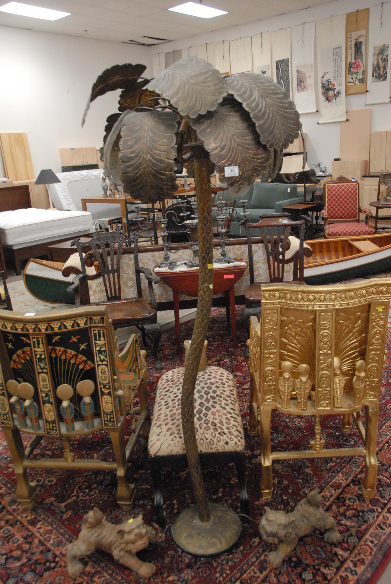 Lot 54: Brass palm tree floor lamp with four lights, ht. 62in.
