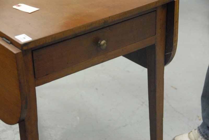 Lot 54: Federal drop leaf table with drawer, lg. 36in. dp. 19in.