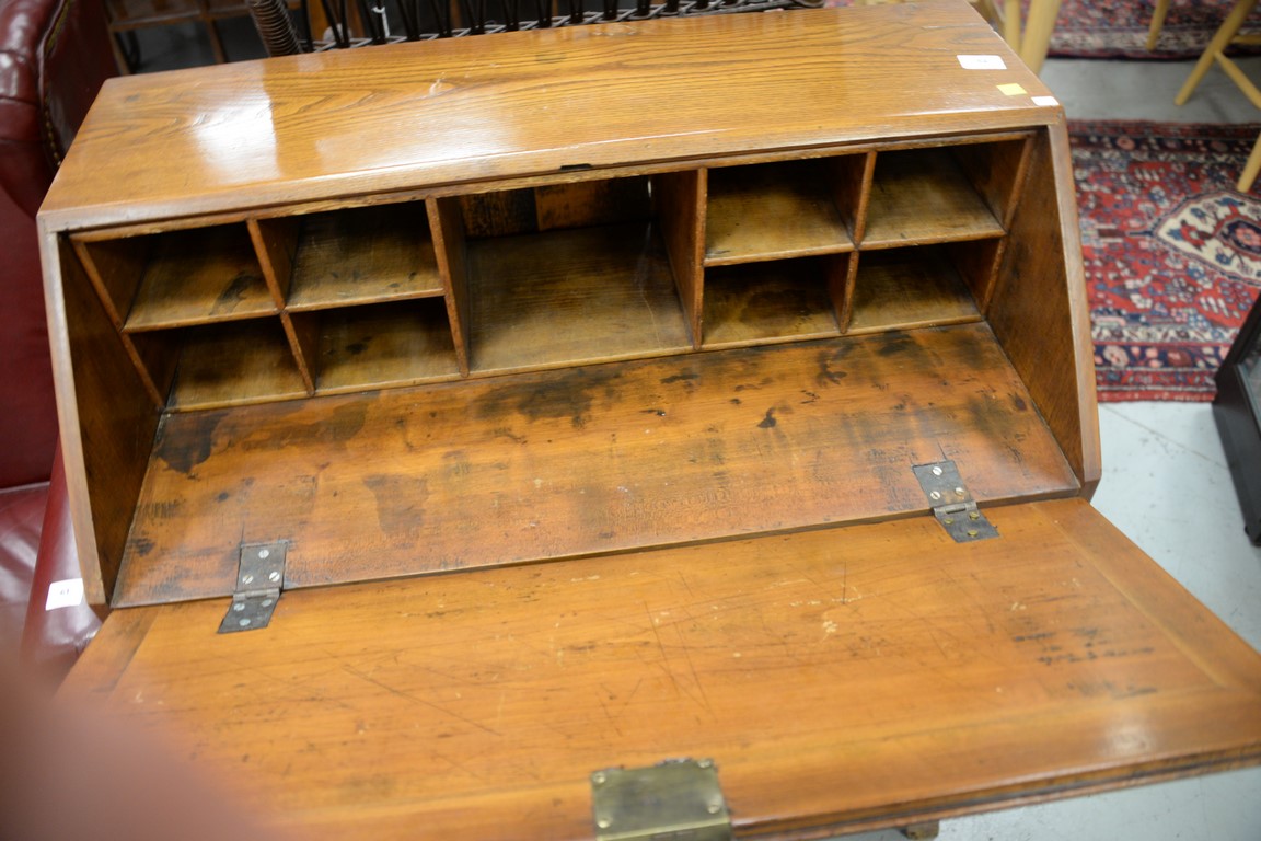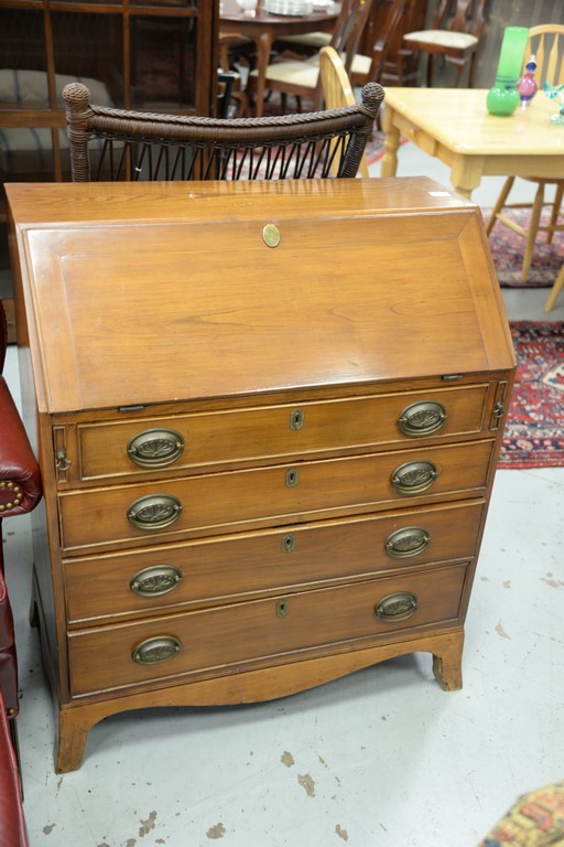 George II fruitwood and oak slant front desk. ht. 39 in. wd. 33 in.