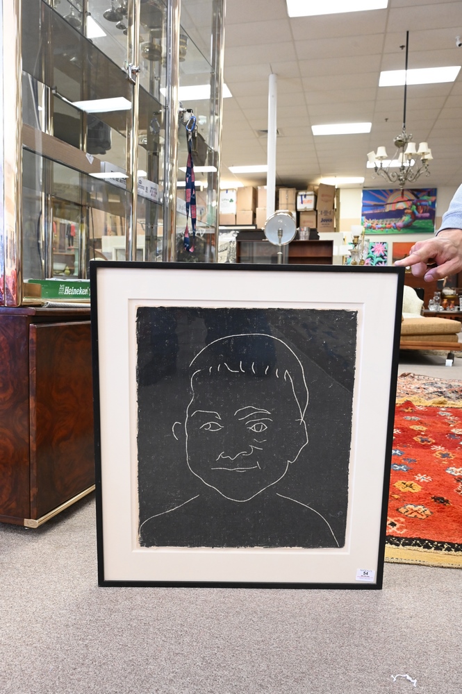 Lot 54: Iran do Espirito Santo (b. 1963), Blind Portraits (Boy), 1994, crayon on paper, Sean Kelly Gallery label on verso, 19 1/2″ x 16 7/8″. Provenance: Property from the Estate of Anita and Burton Reiner.