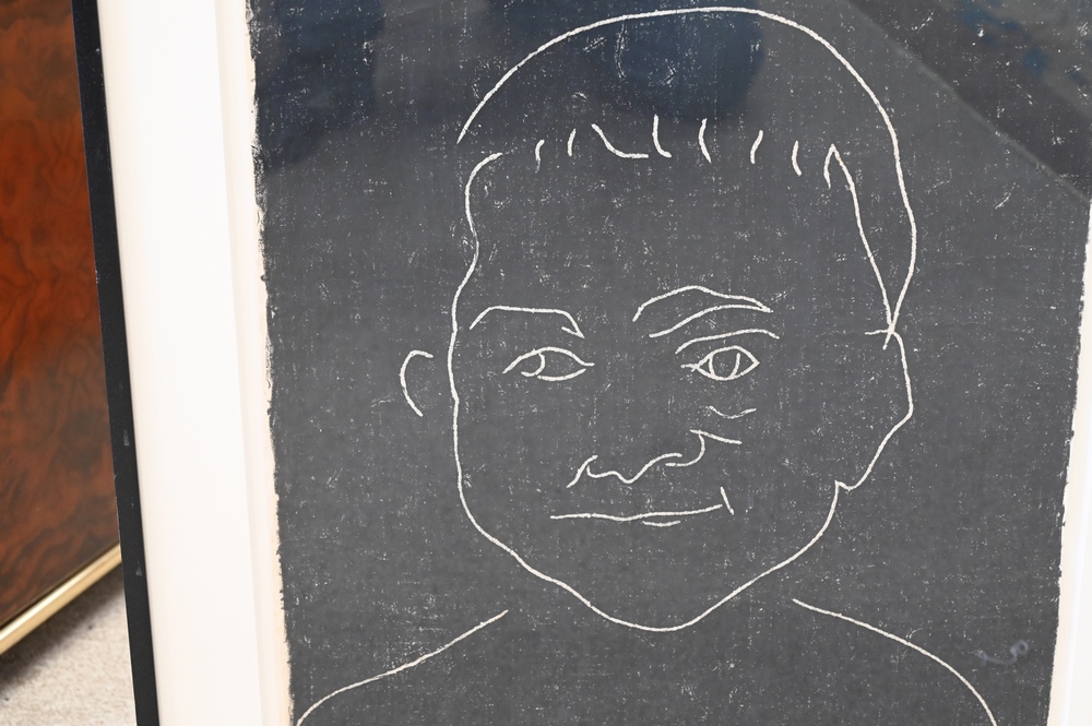 Iran do Espirito Santo (b. 1963), Blind Portraits (Boy), 1994, crayon on paper, Sean Kelly Gallery label on verso, 19 1/2″ x 16 7/8″. Provenance: Property from the Estate of Anita and Burton Reiner.