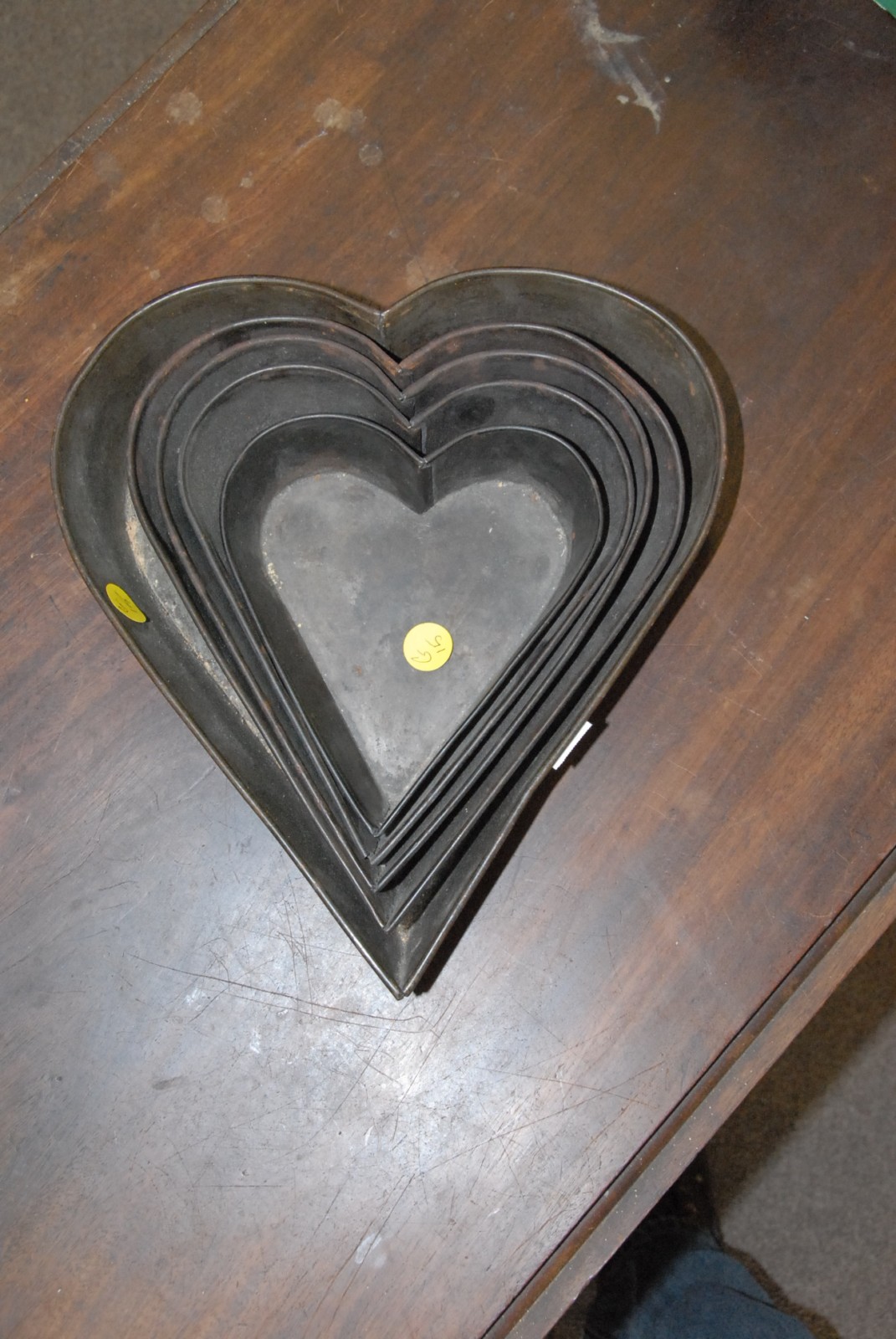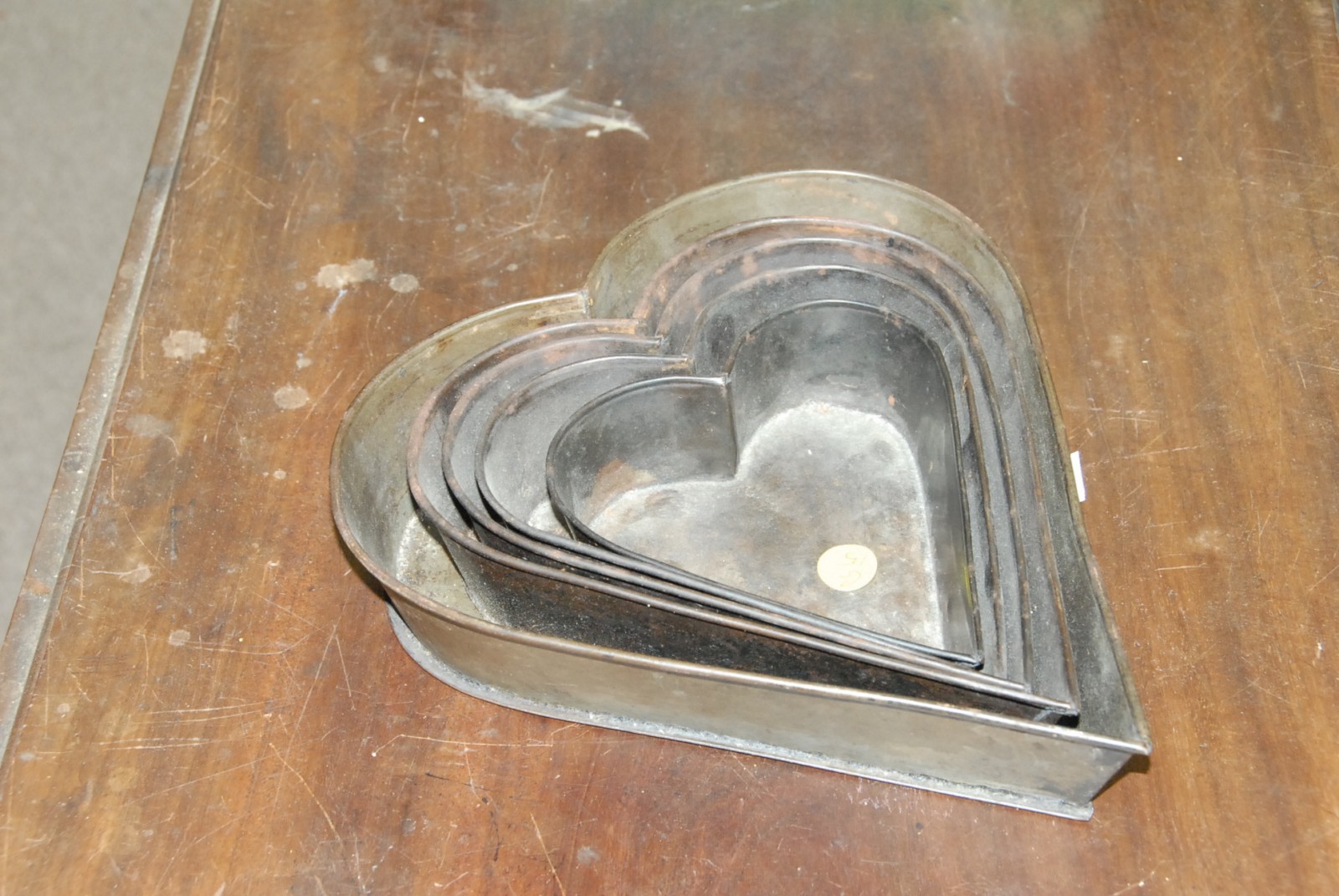 Nest of primitive tole heart shaped molds