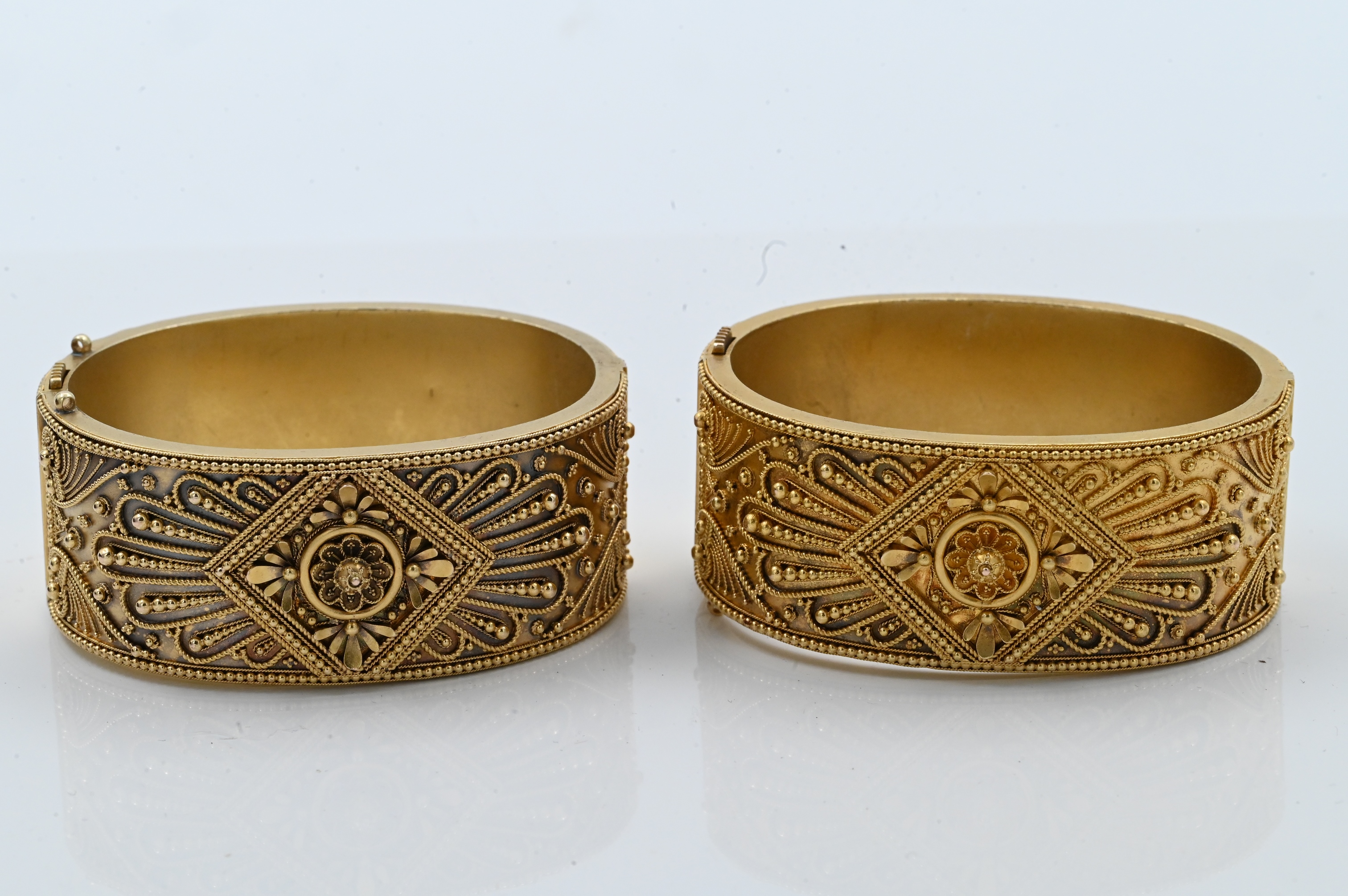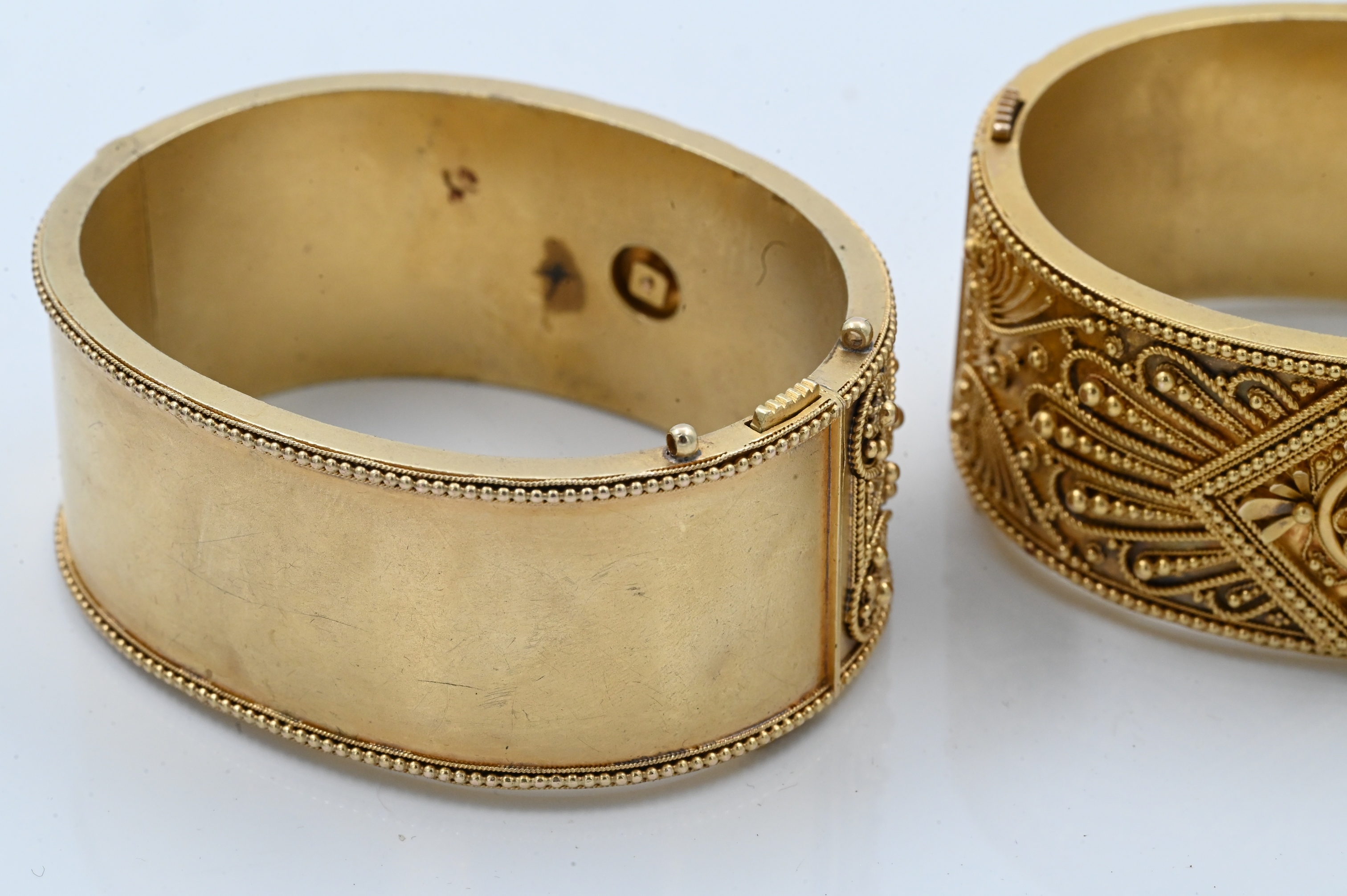 Lot 54: Pair of 14K Yellow Gold Hinged Bangle Bracelets