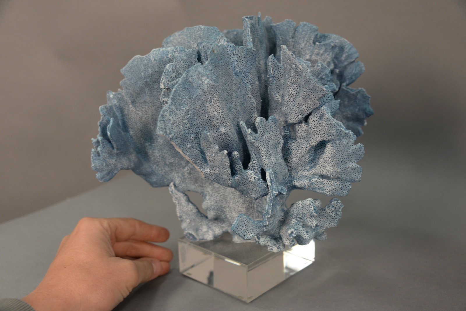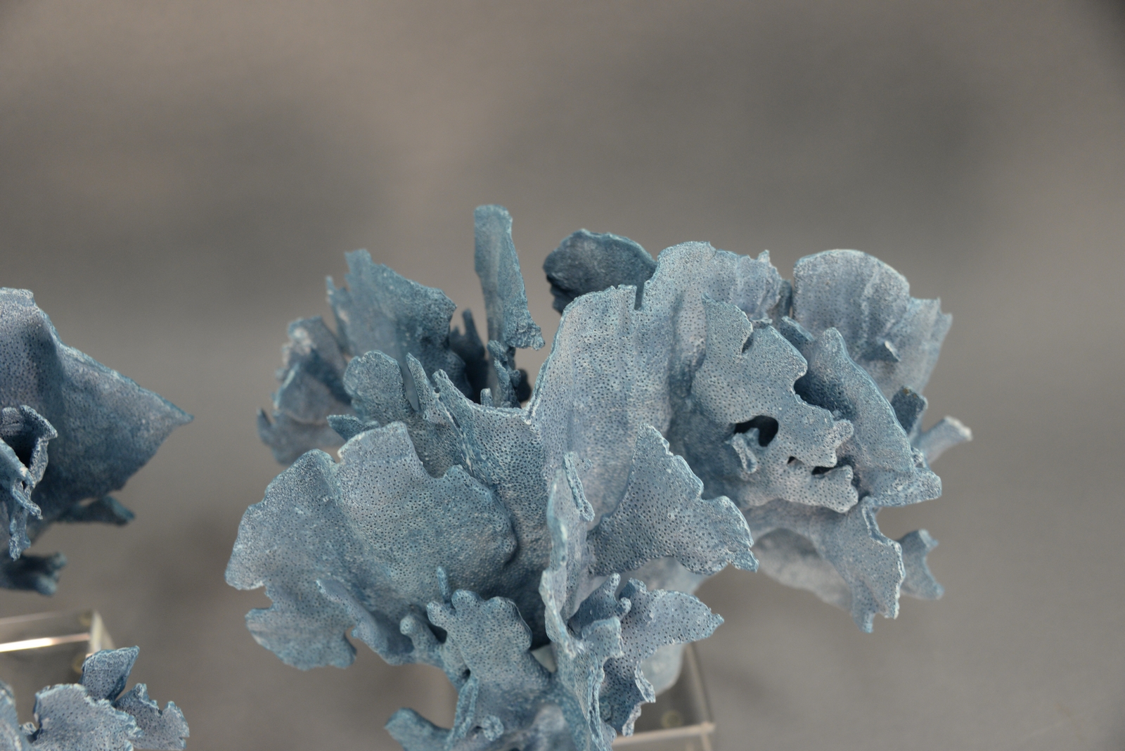 Pair of Blue Ridge natural sea coral specimen on Lucite bases. ht. 10in., wd. 12in.