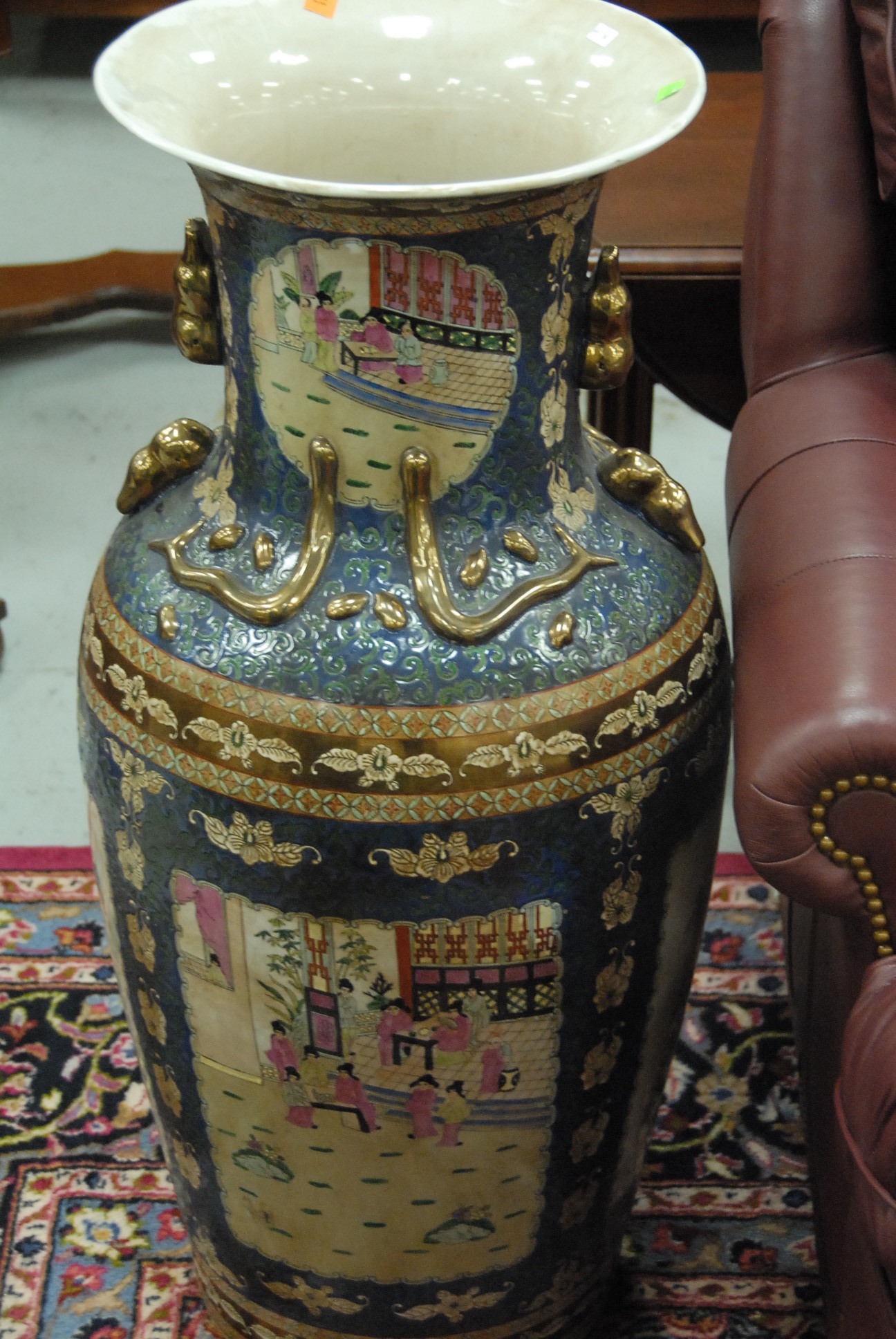 Pair of decorative Oriental style palace vases, ht. 36 in.