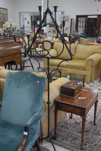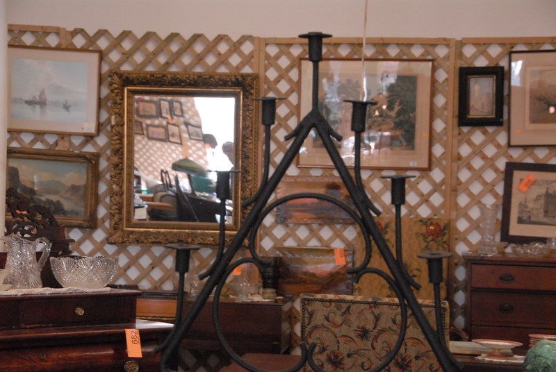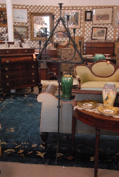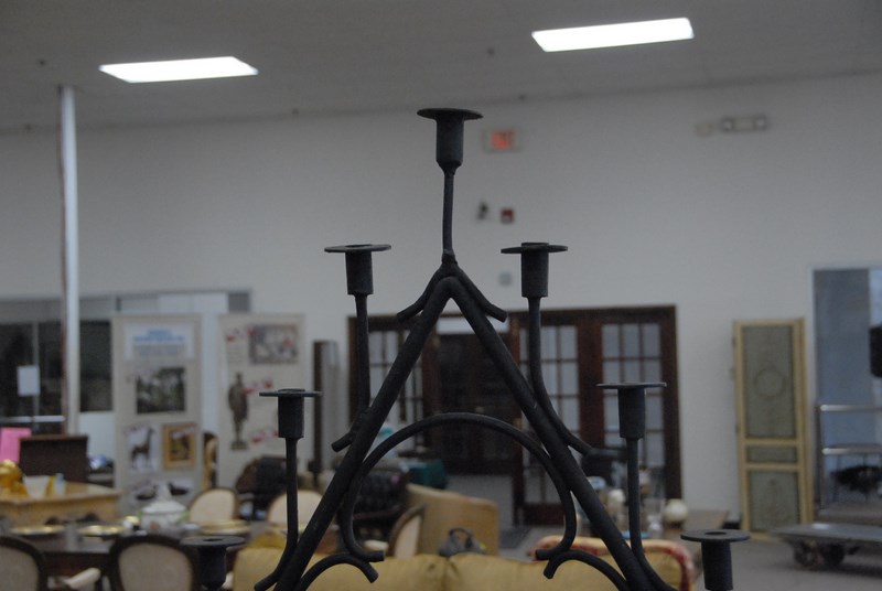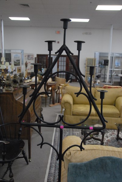 Pair of iron torchieres each with seven candle holders, ht. 73in.