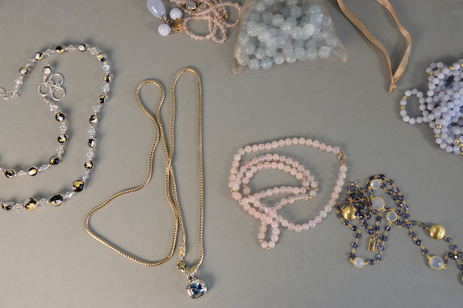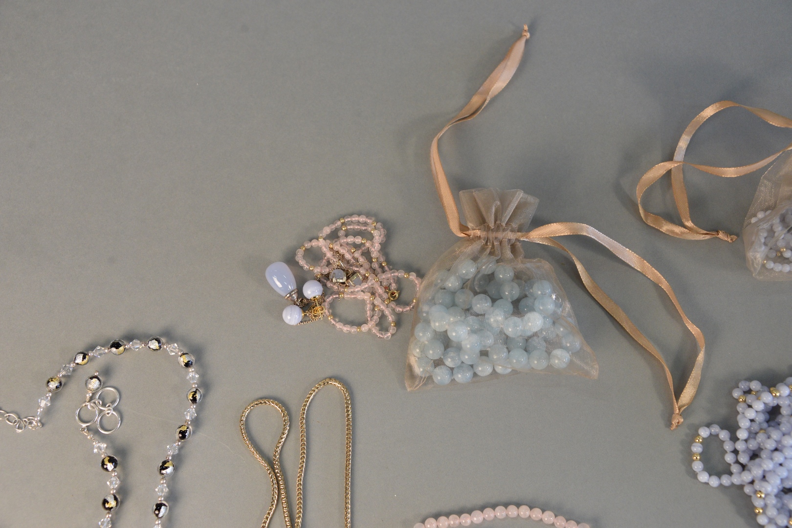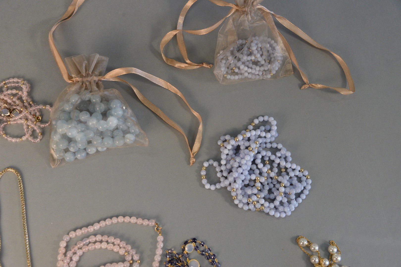 Lot 54: Ten Various Necklaces to include Chalcedony beaded necklace and earrings, hardstone and silver, two pink quartz, spheres and silver