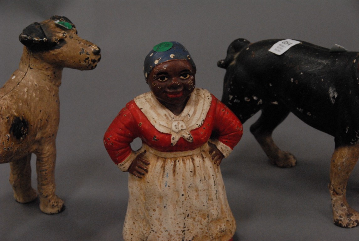 Three piece iron door stop lot, two dogs and an Aunt Jemima