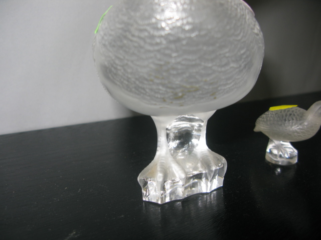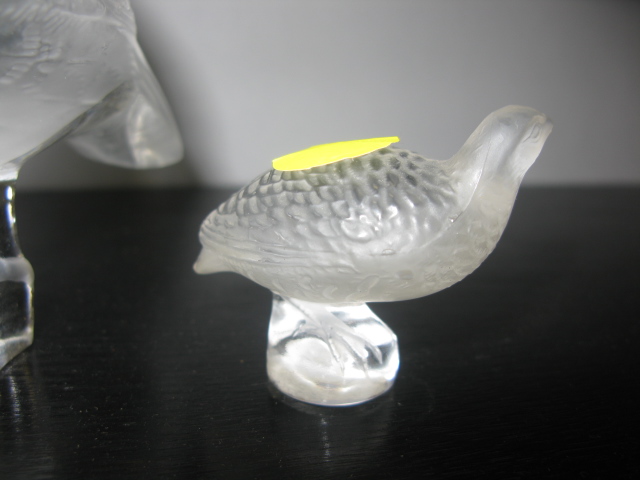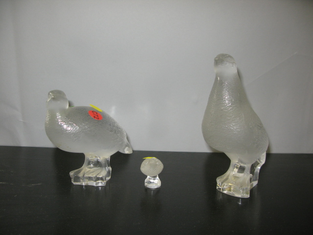 Three piece lot of Lalique, two large grouse and one small, signed on bottom