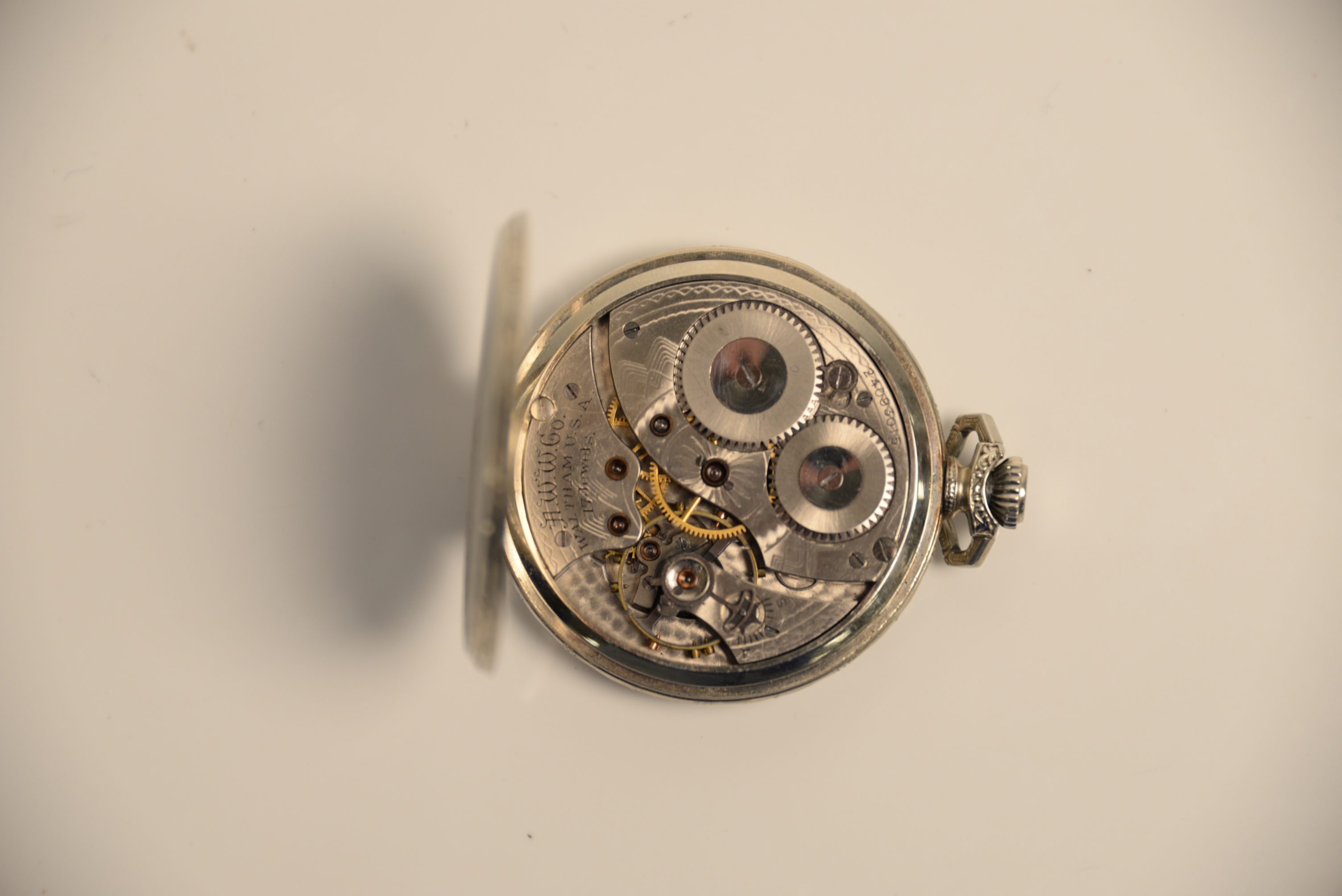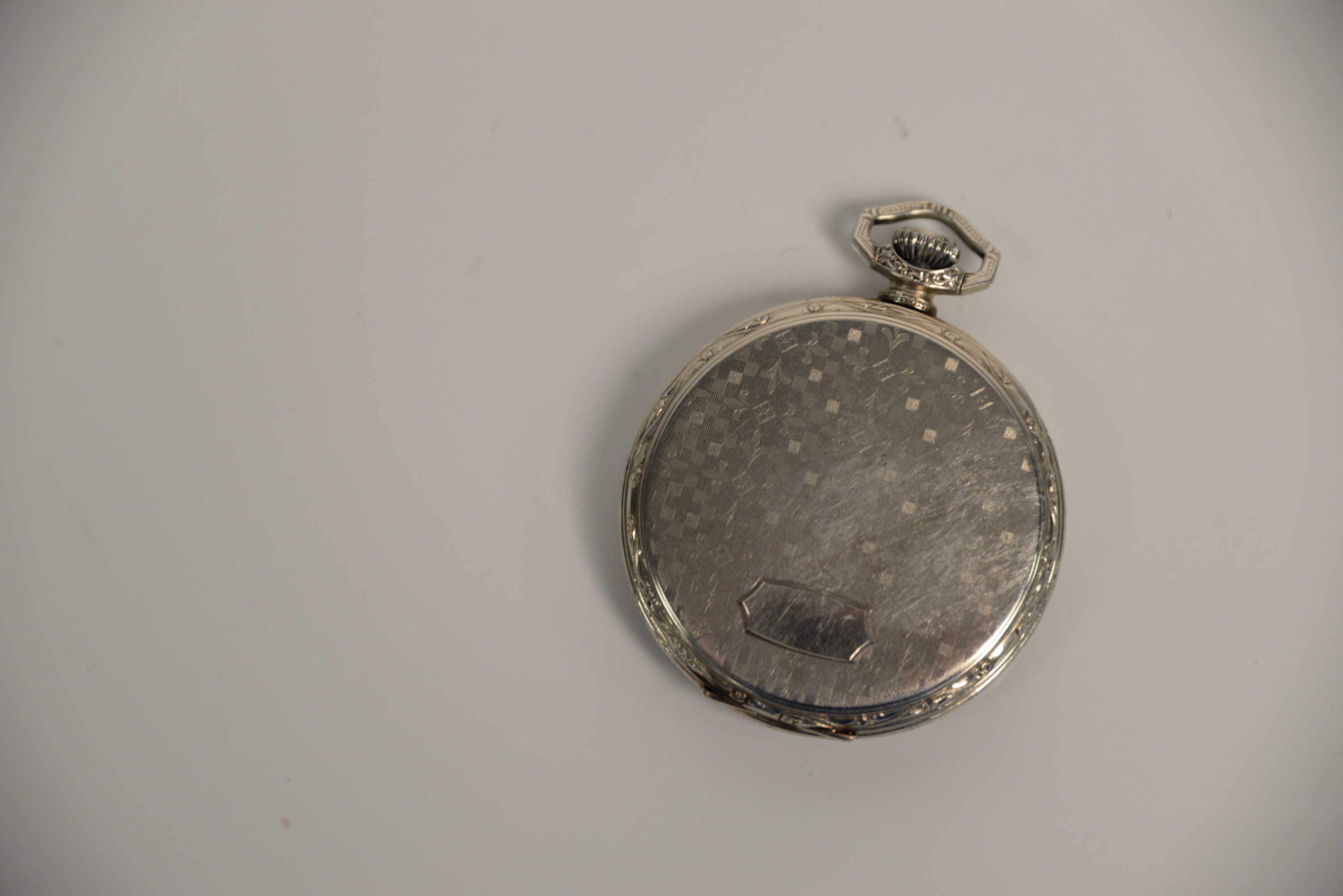 Waltham 14 Karat White Gold Open Face Pocket Watch 43.5 millimeters, 55 grams total weight.