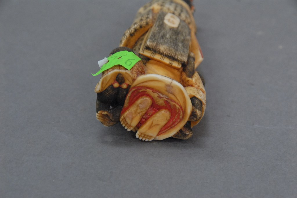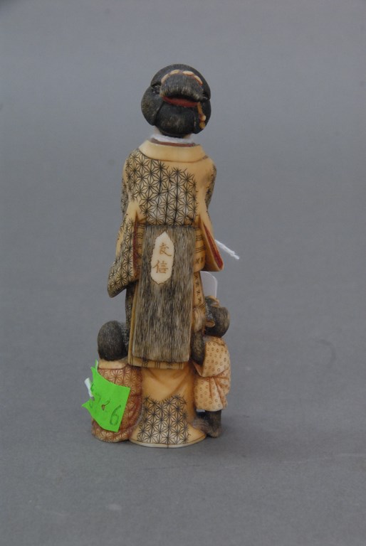 Lot 540: Carved ivory Guanyin figure standing with two carved monkeys, signed on back. Provenance: Estate of Nancy Sachse, Hamden, Connect…
