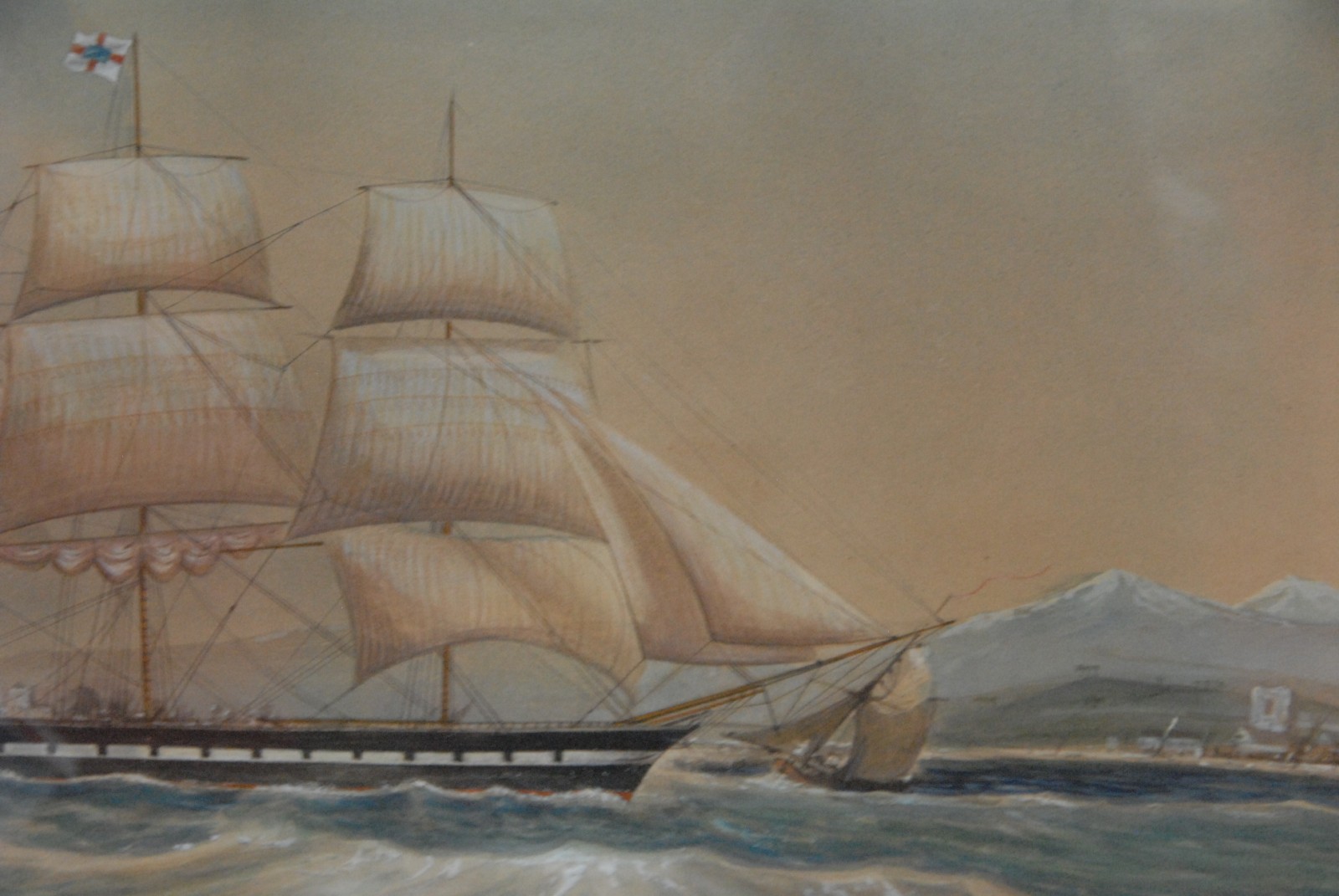 George Washington Stevens 1866 – 1926 BRITISH BARQUE watercolor signed lower left E.W. Stevens.