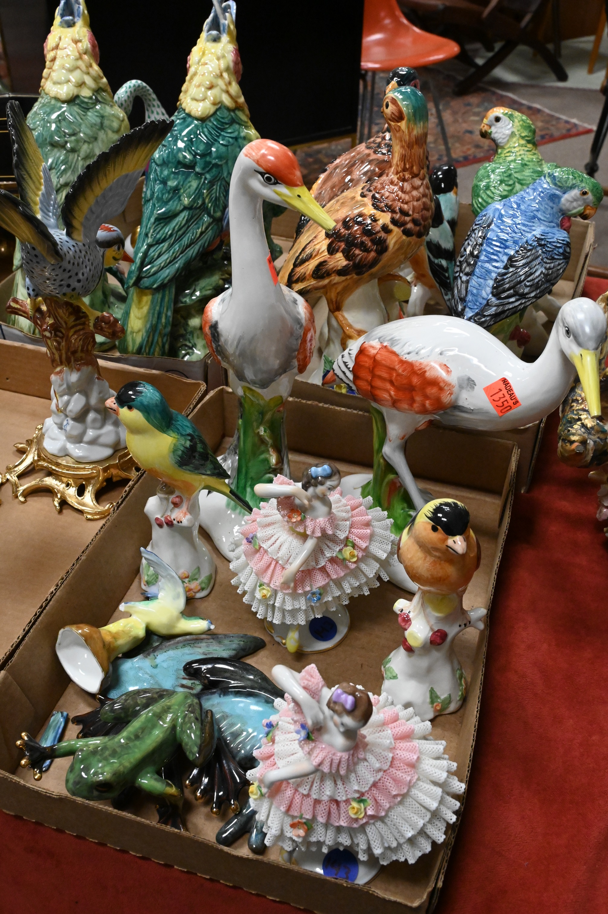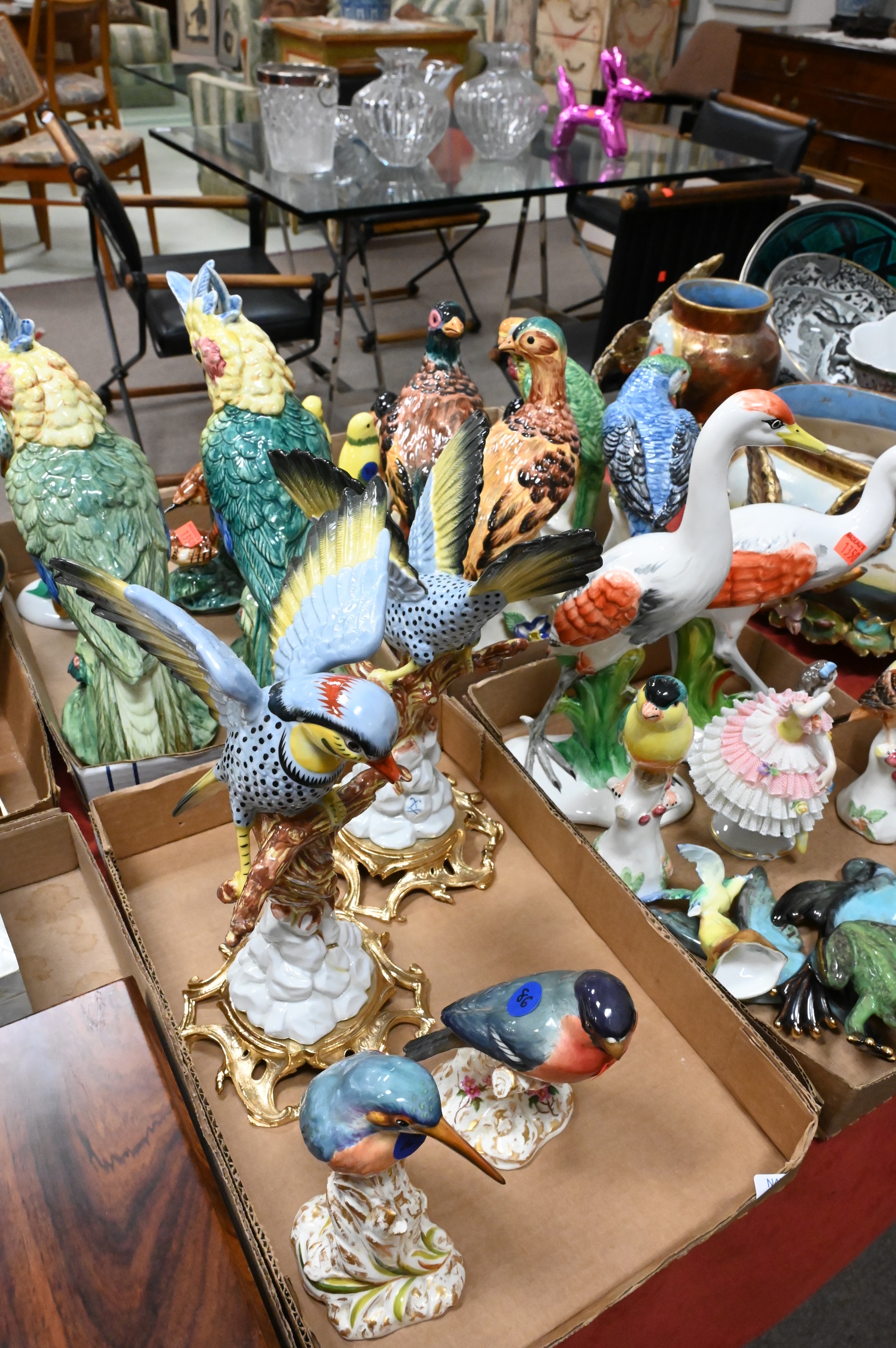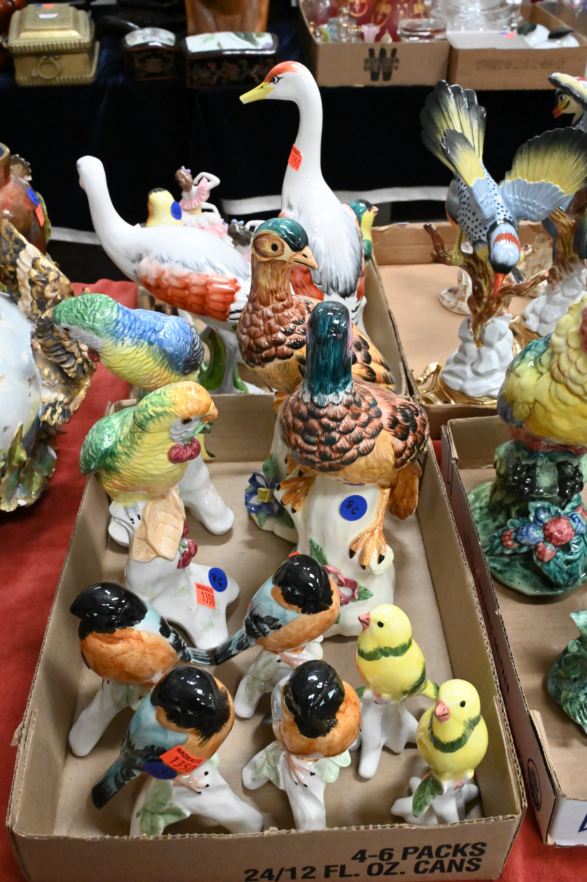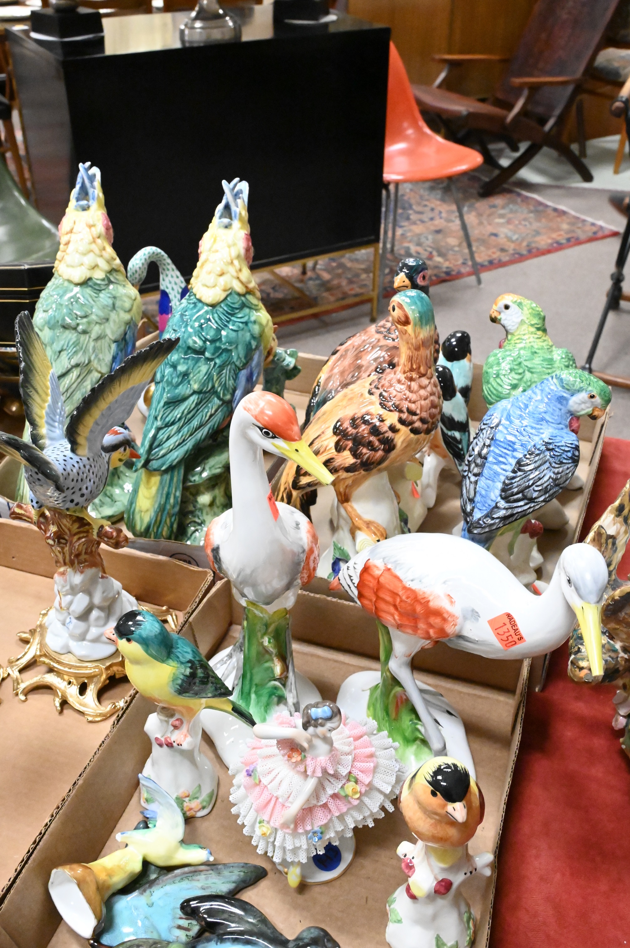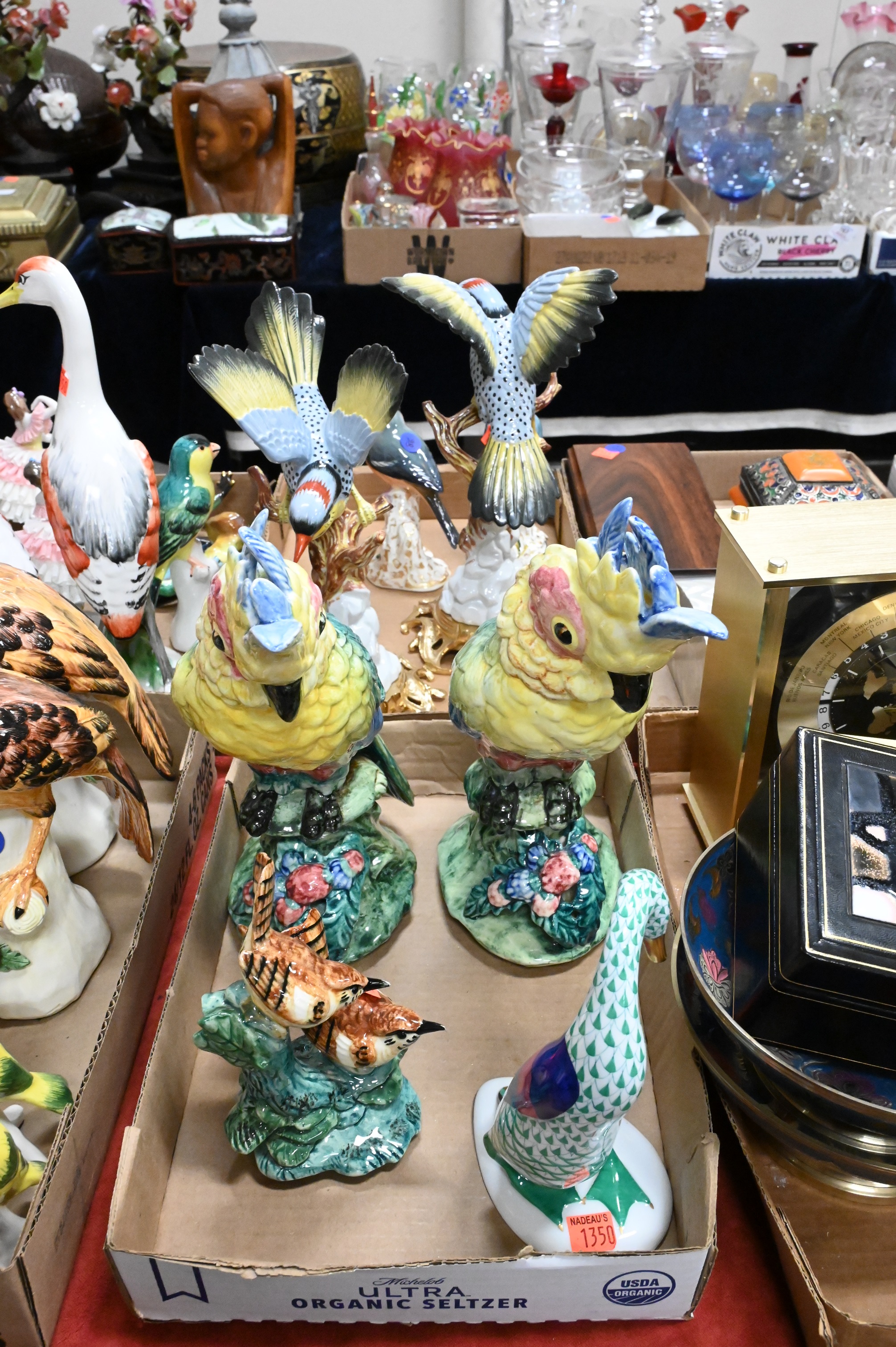 Lot of Ceramic Birds, to include two large Stangl pottery birds, Chelsea House, a small Stangl pottery bird, Herend, a pair of birds on gilt metal bases, along with a pair of Royal Worcester birds. Provenance: Property from a private New York collection sold to benefit charitable foundations.