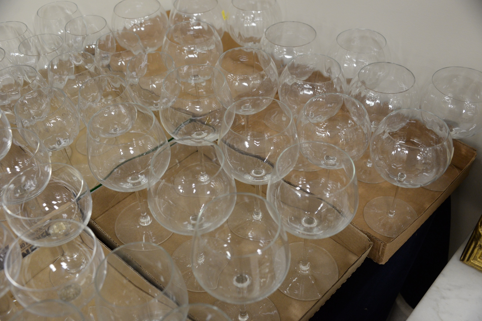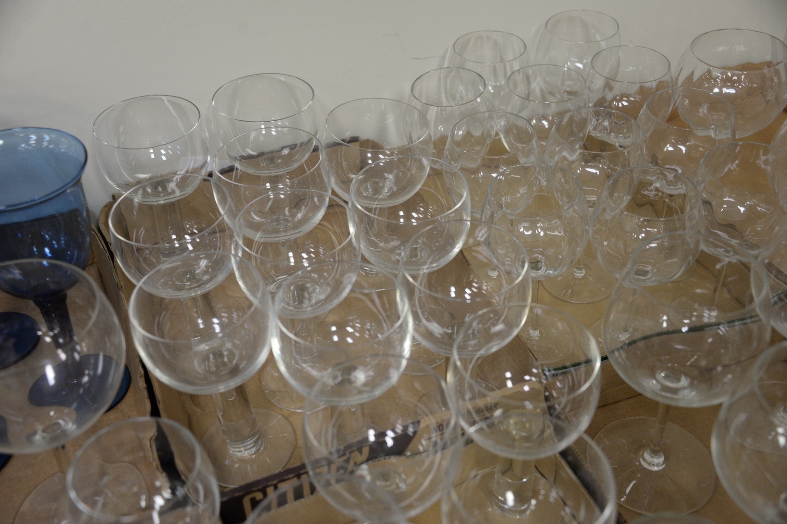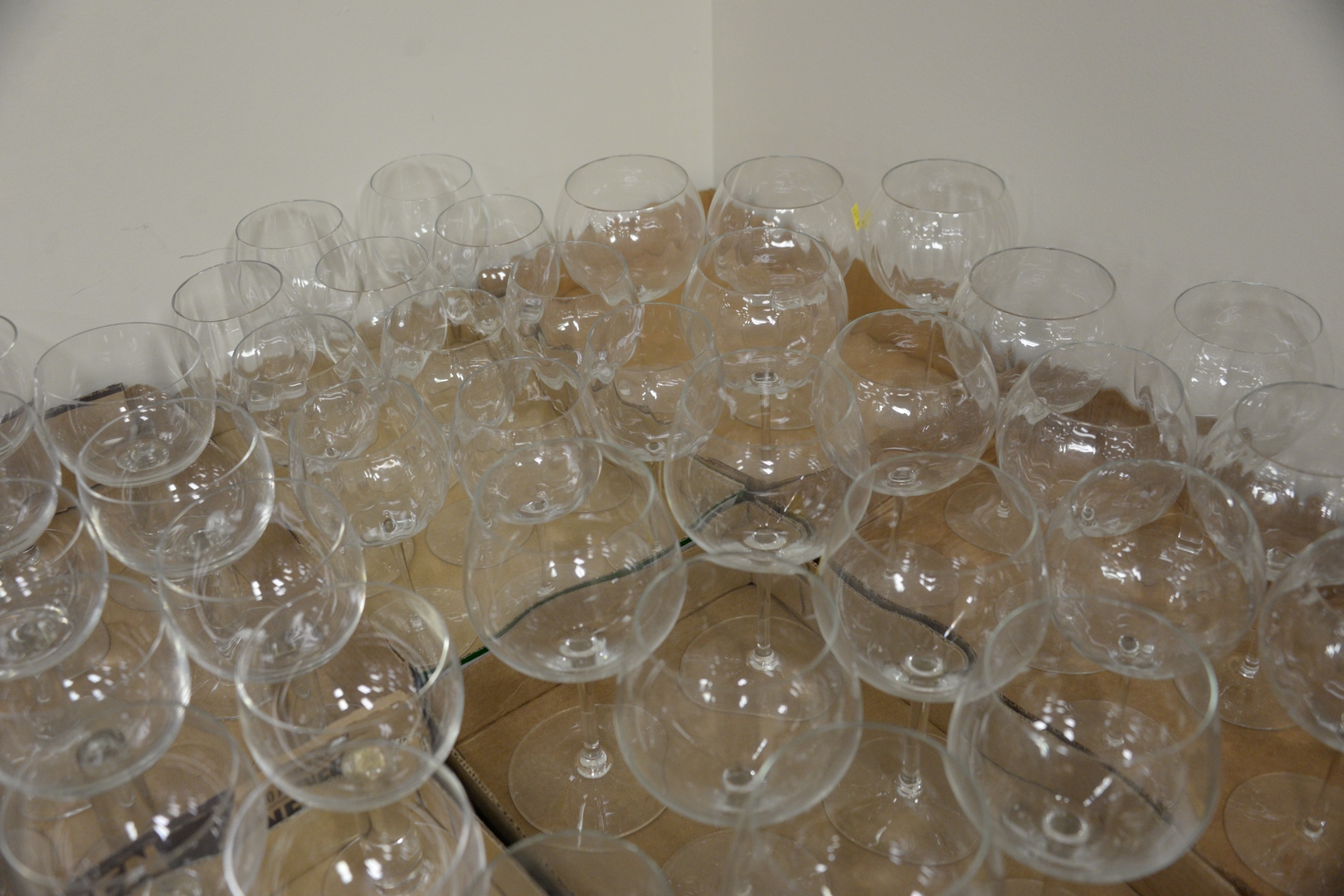 Lot 540: Six Tray Lots of Crystal, to include 6 oversized red wine glasses 12 red wine 11 white wine, in the same pattern 4 goblets along…