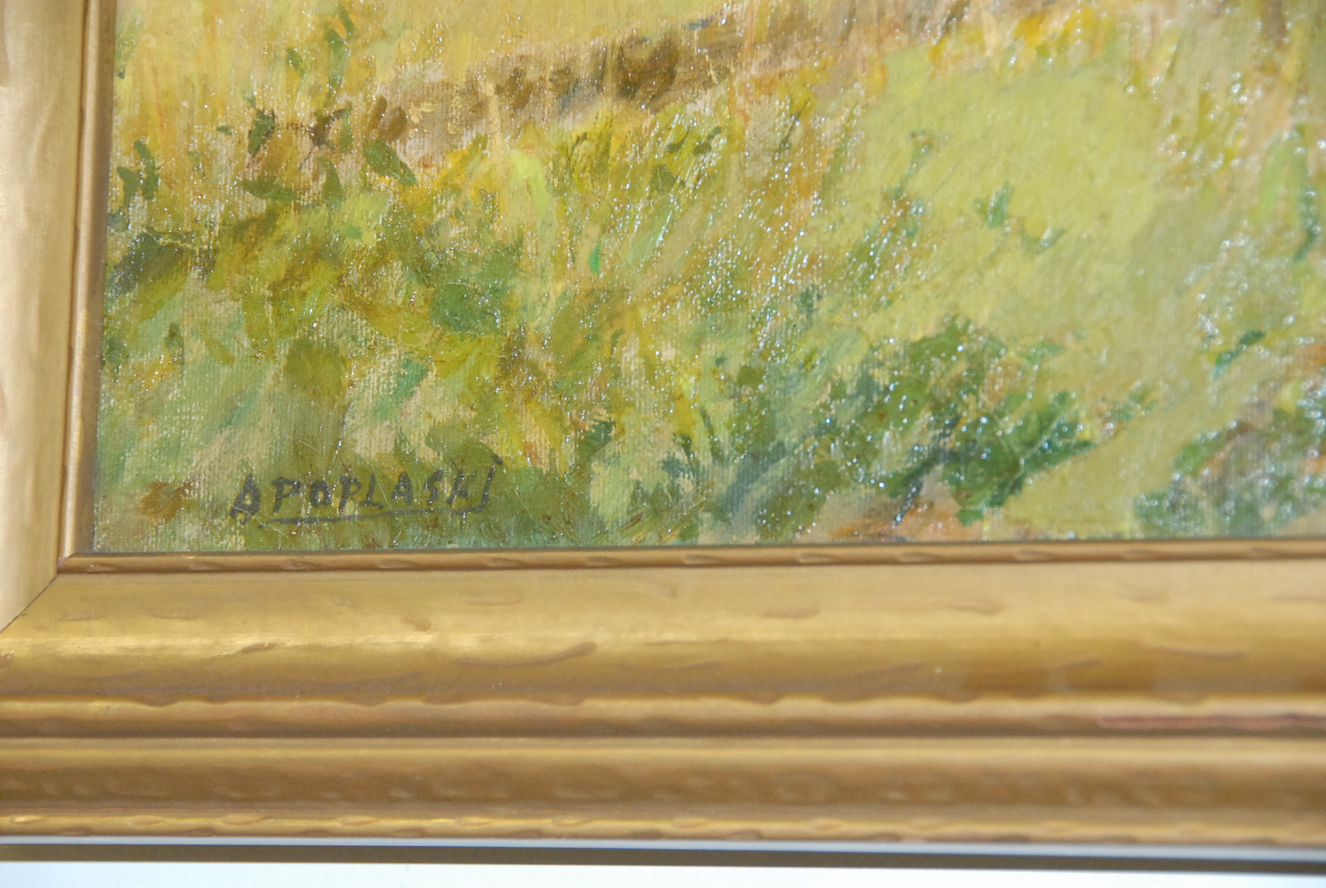 Alex Poplaski 1906-1988 FALL LANDSCAPE WITH A BARN oil on canvas signed lower left A. Poplaski