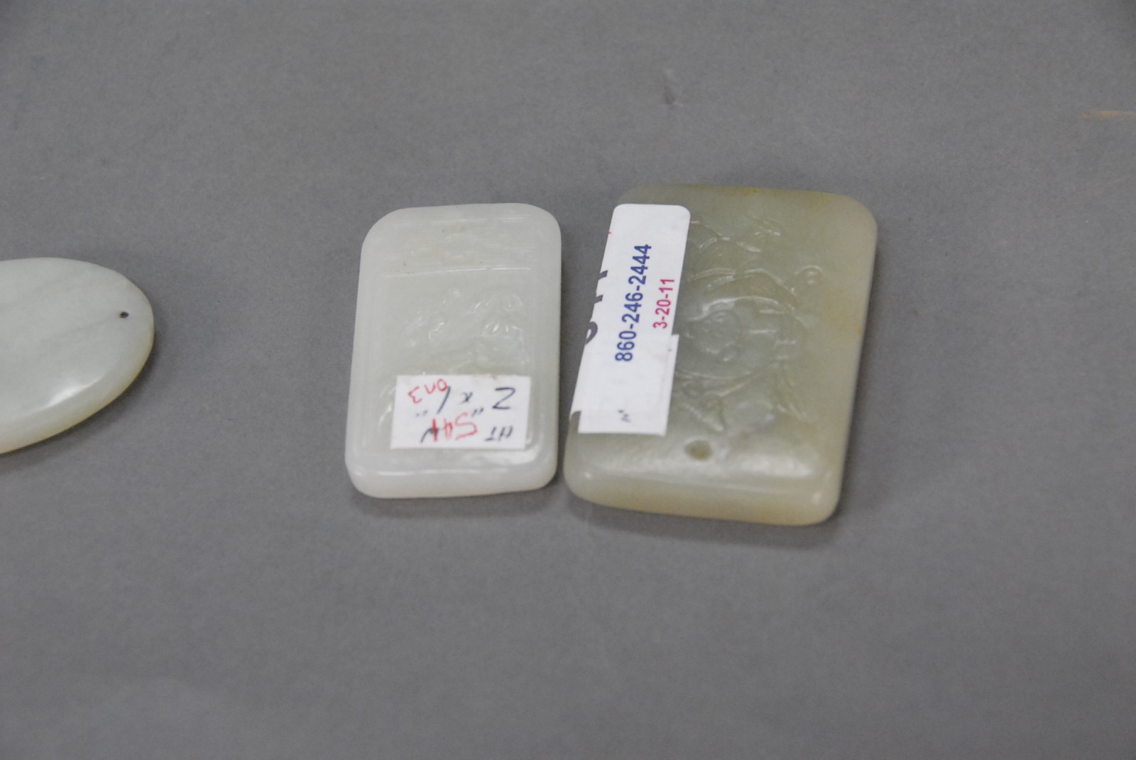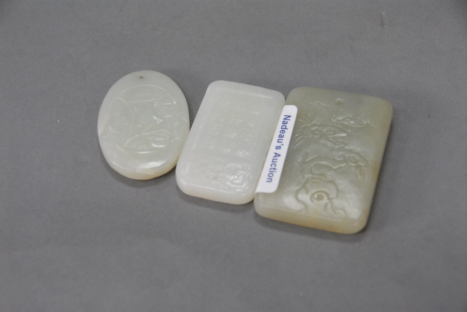 Lot 541: Three Chinese celadon jade pendants, 20th