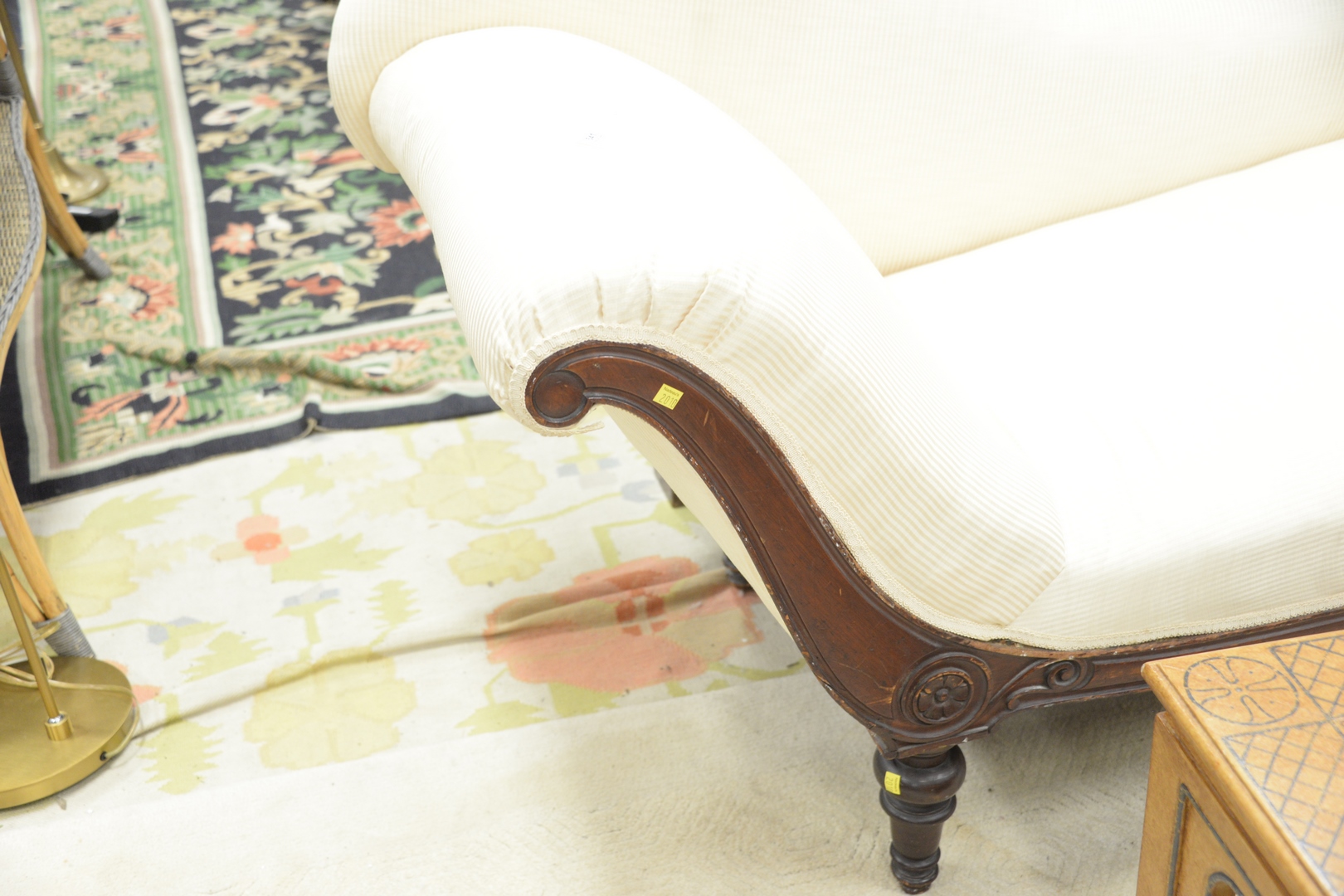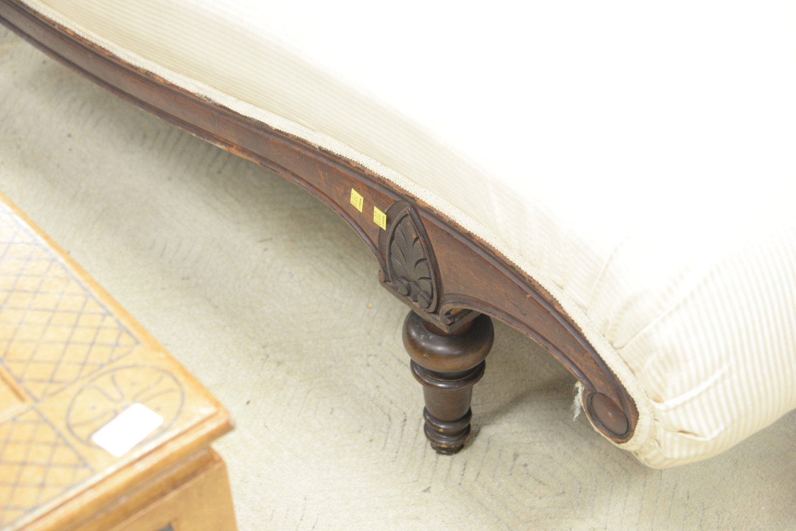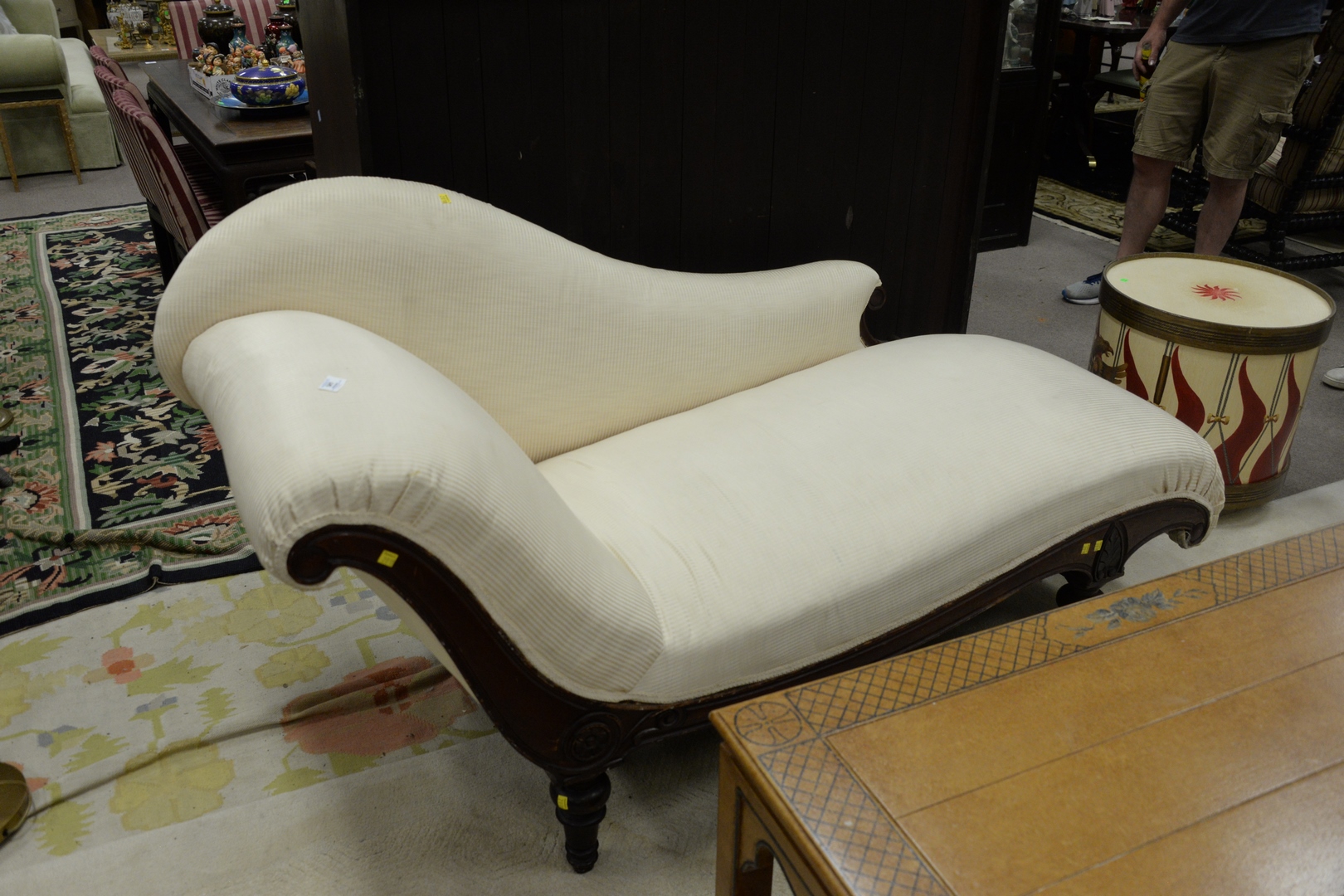 Victorian Chaise Lounge, in white upholstery, length 67 1/2 inches.