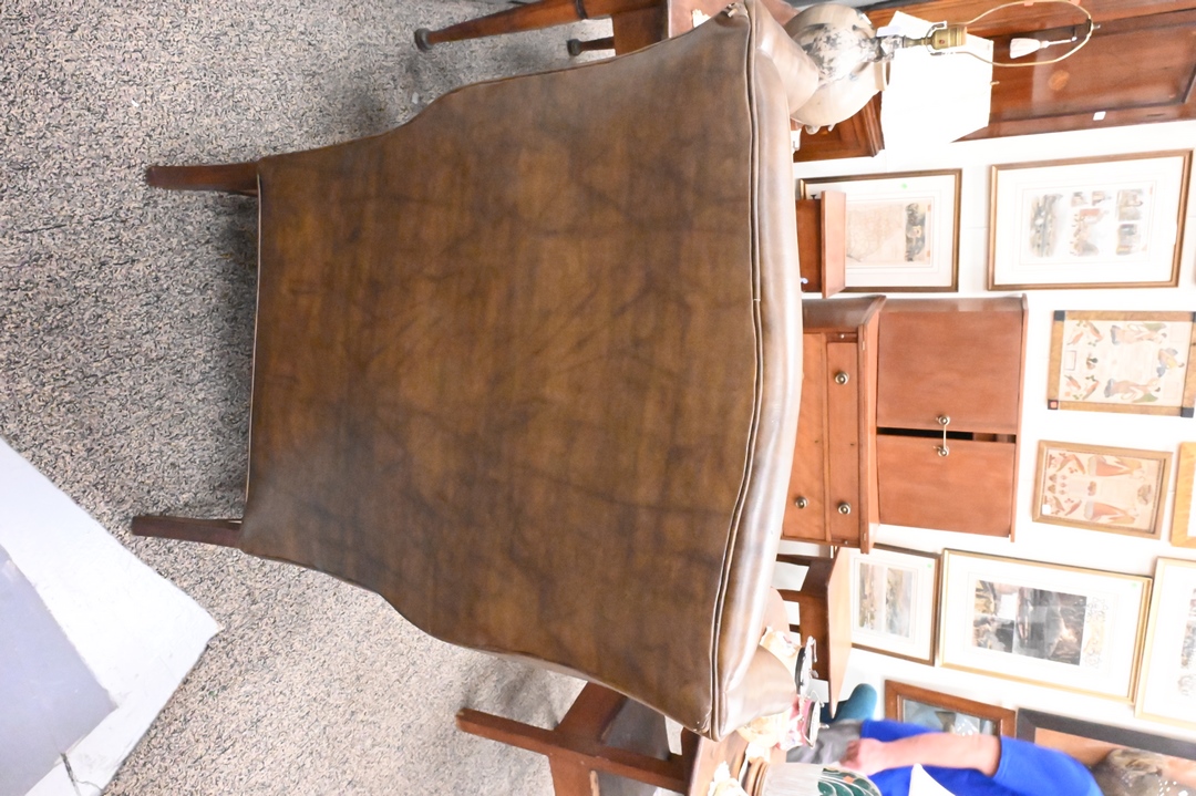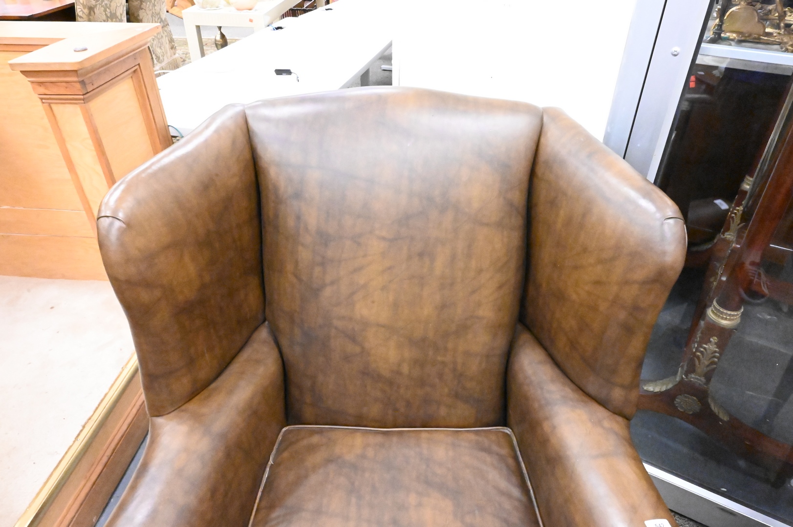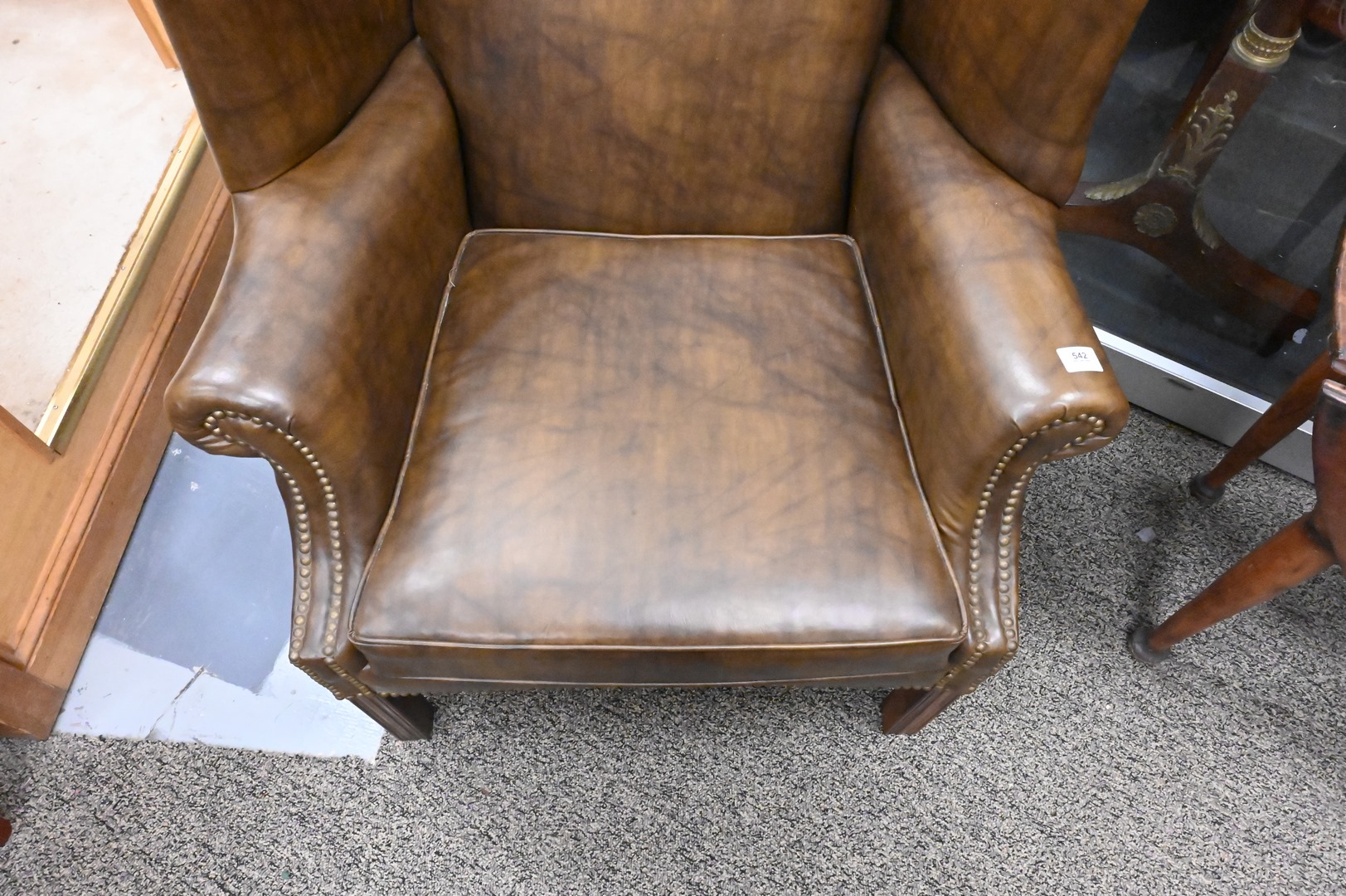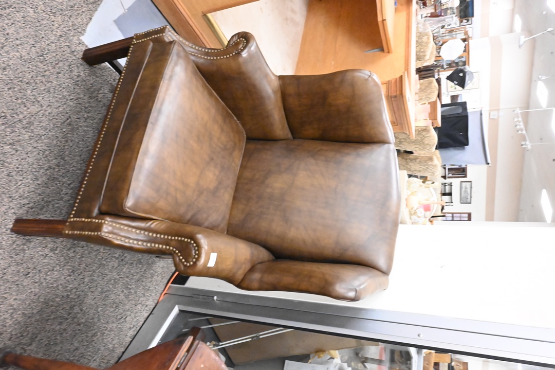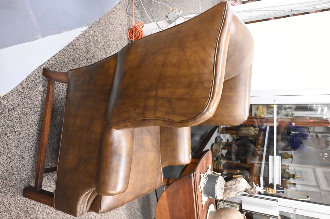 Brown Vinyl Leather Wing Chair, having rip in corner.