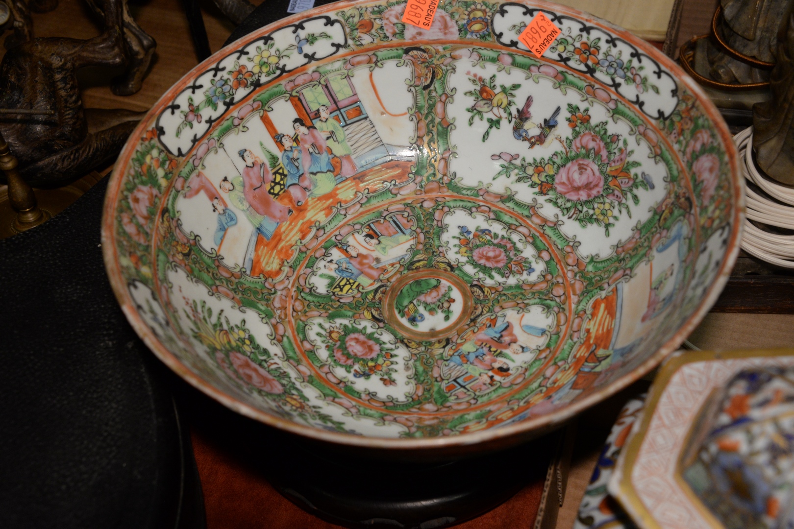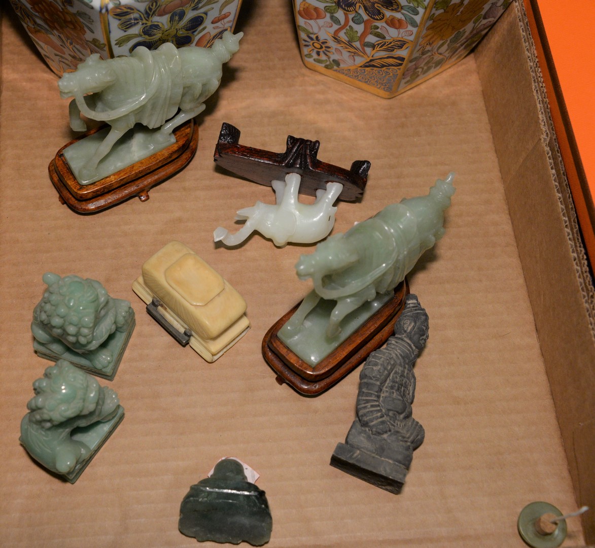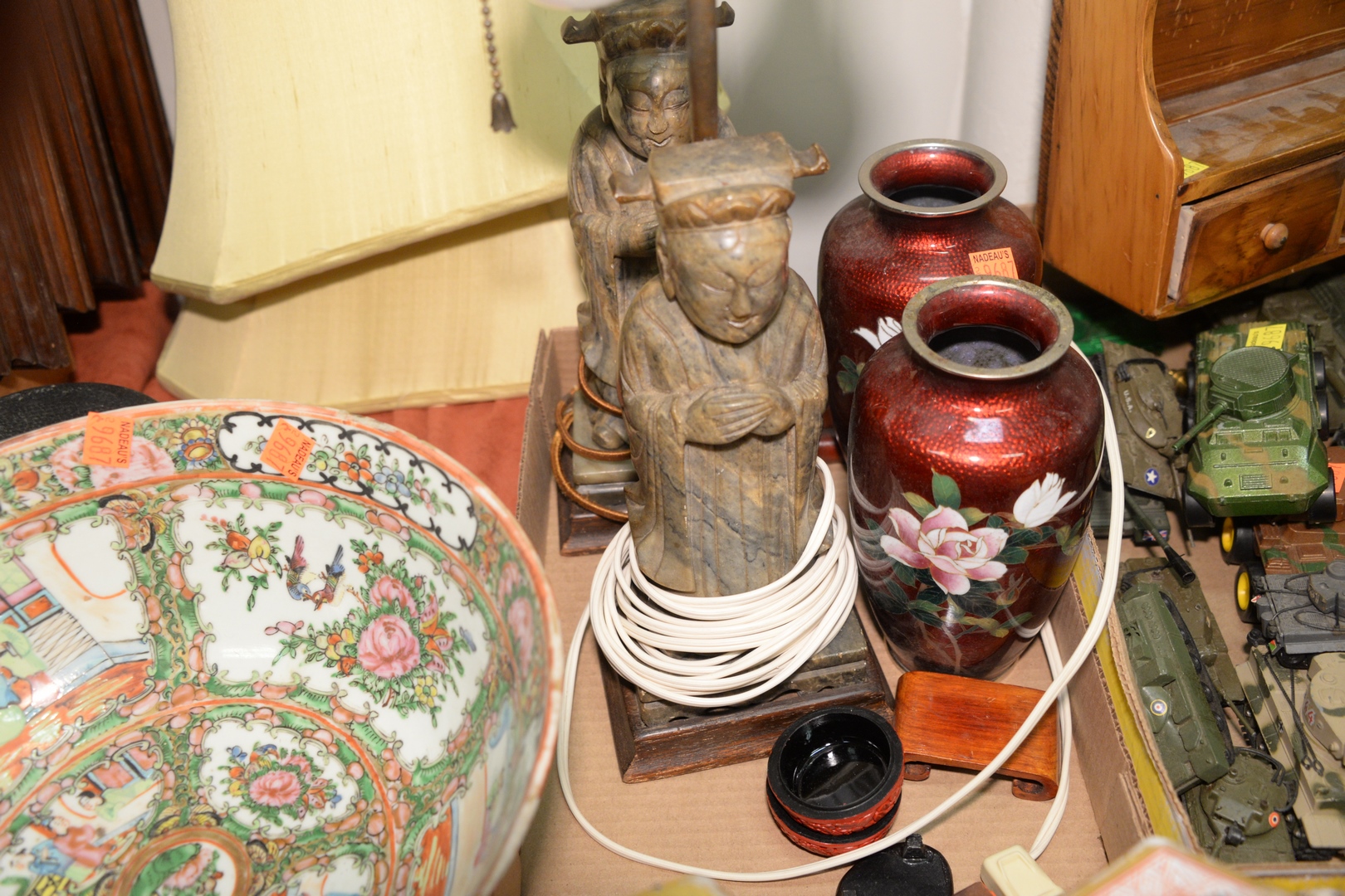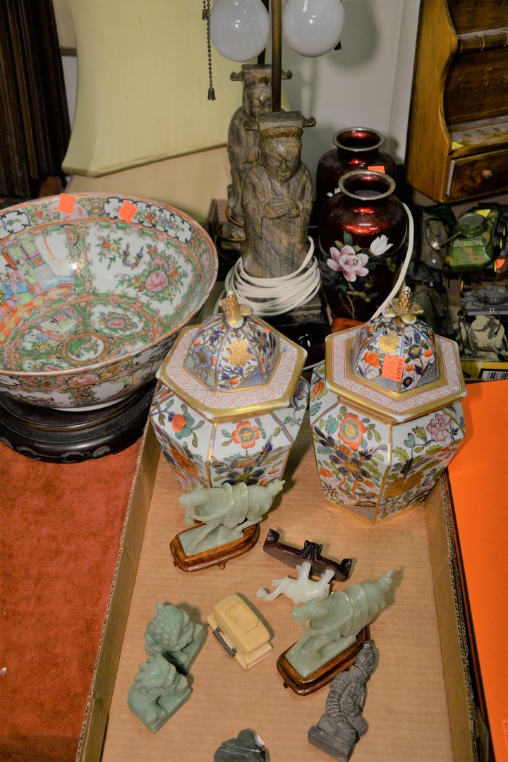 to include pair of ironstone jars stone figures Rose Medallion bowl pair of Chinese stone figures pair of enameled vases, etc.