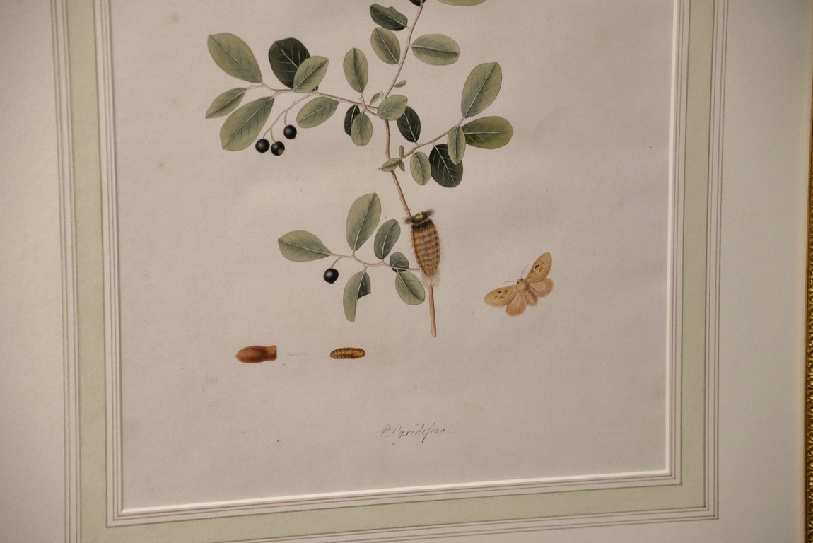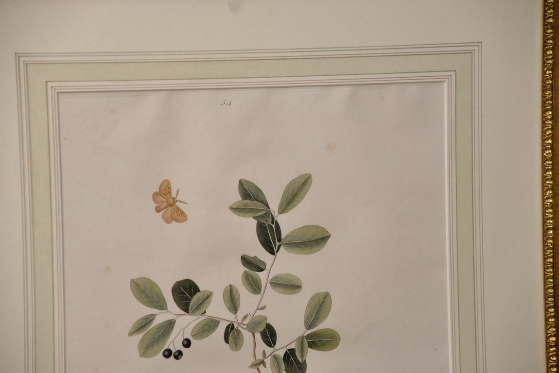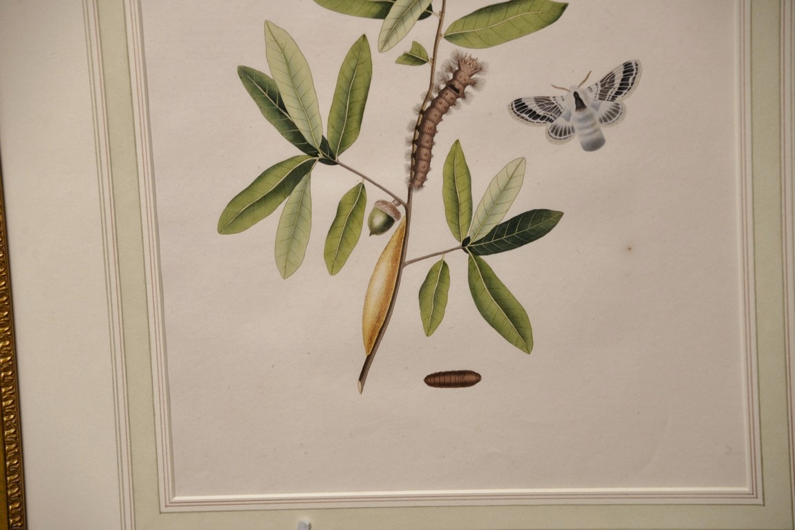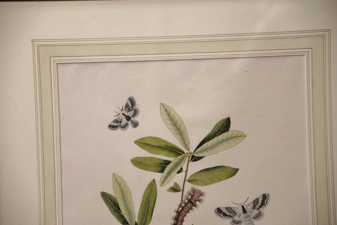 John Abbot 1751-1839 pair of hand colored aquatint engravings Phalaena Pyxidifera, Spotted Yellow Egger Moth Plate #54 and Phalaena Velleda, Great Black & White Tussock Moth Plate #52 From The Natural History of the Rarer Lepidoterous Insects of Georgia Published by James Edward Smith 1759-1828 framed and matted by W. Graham Arader III sight size: 14 x 11 Provenance: Property from Credit Suisse’s Americana Collection