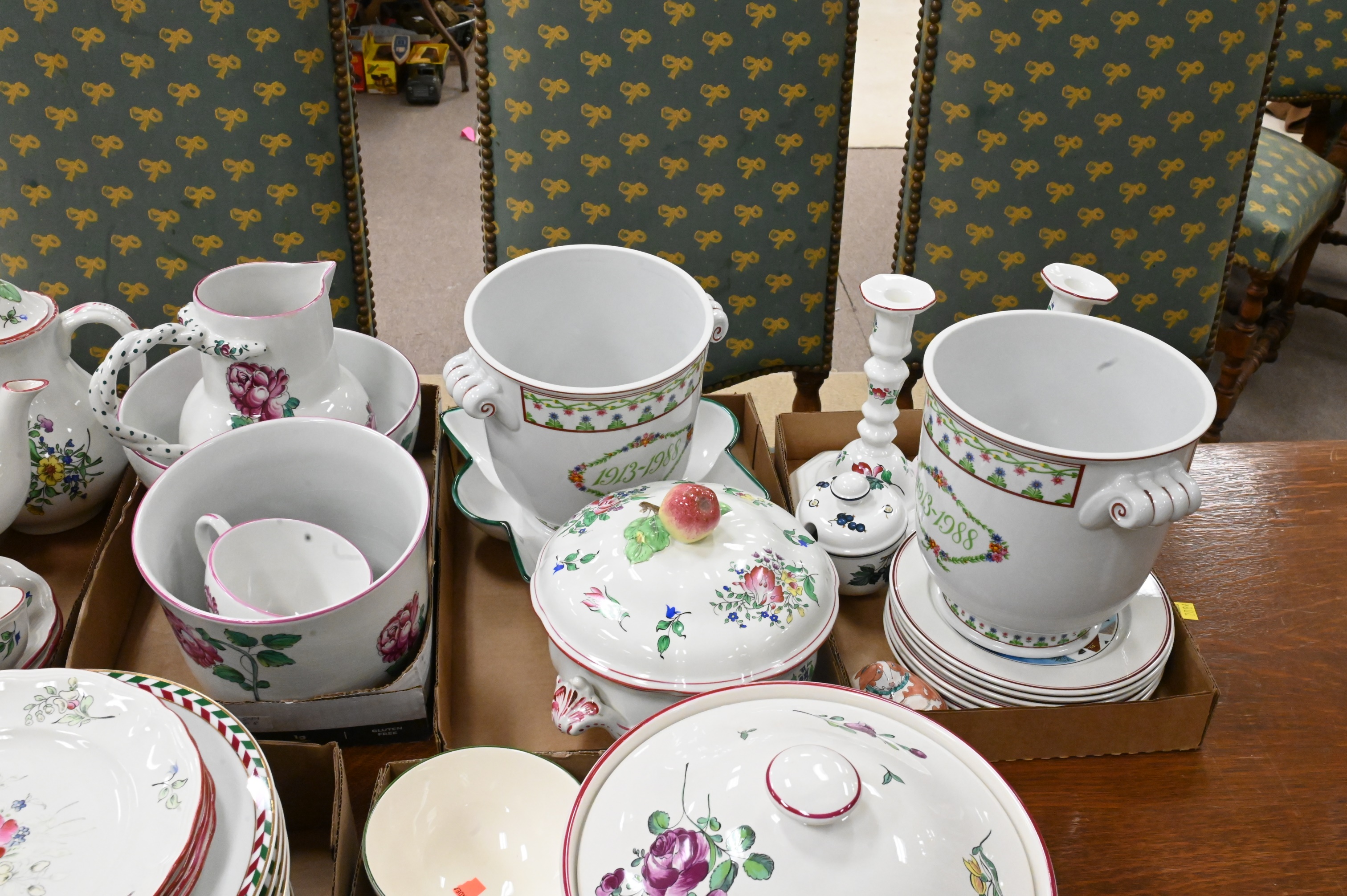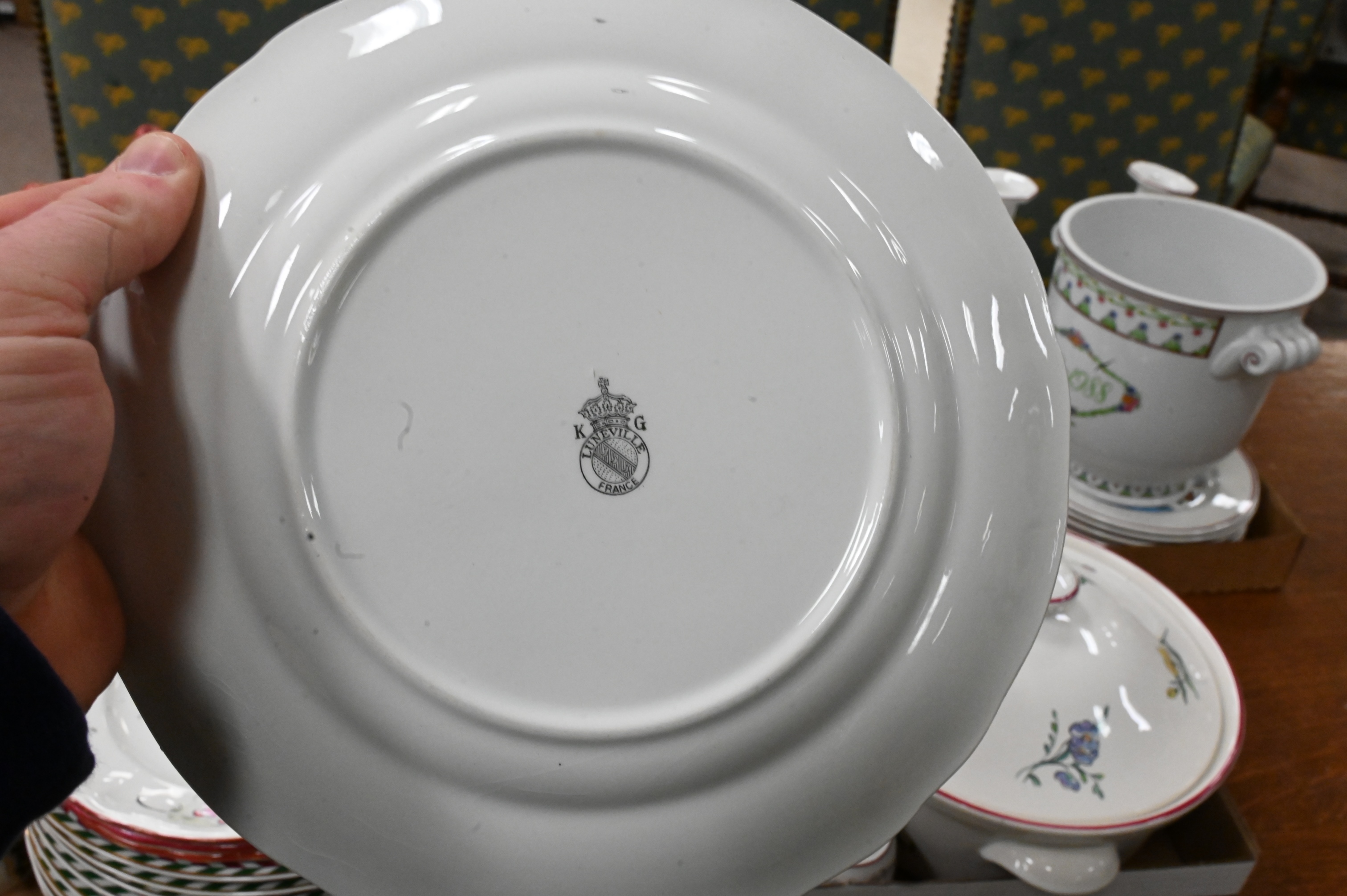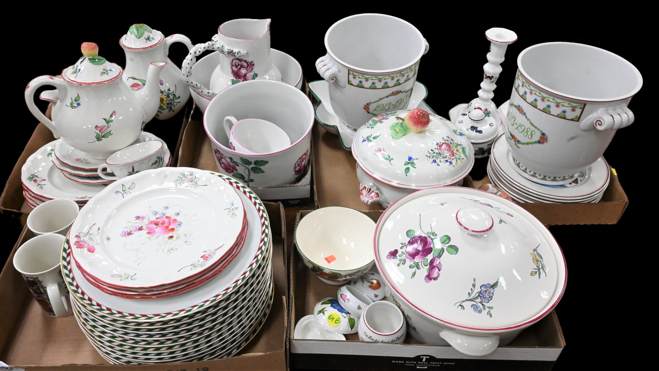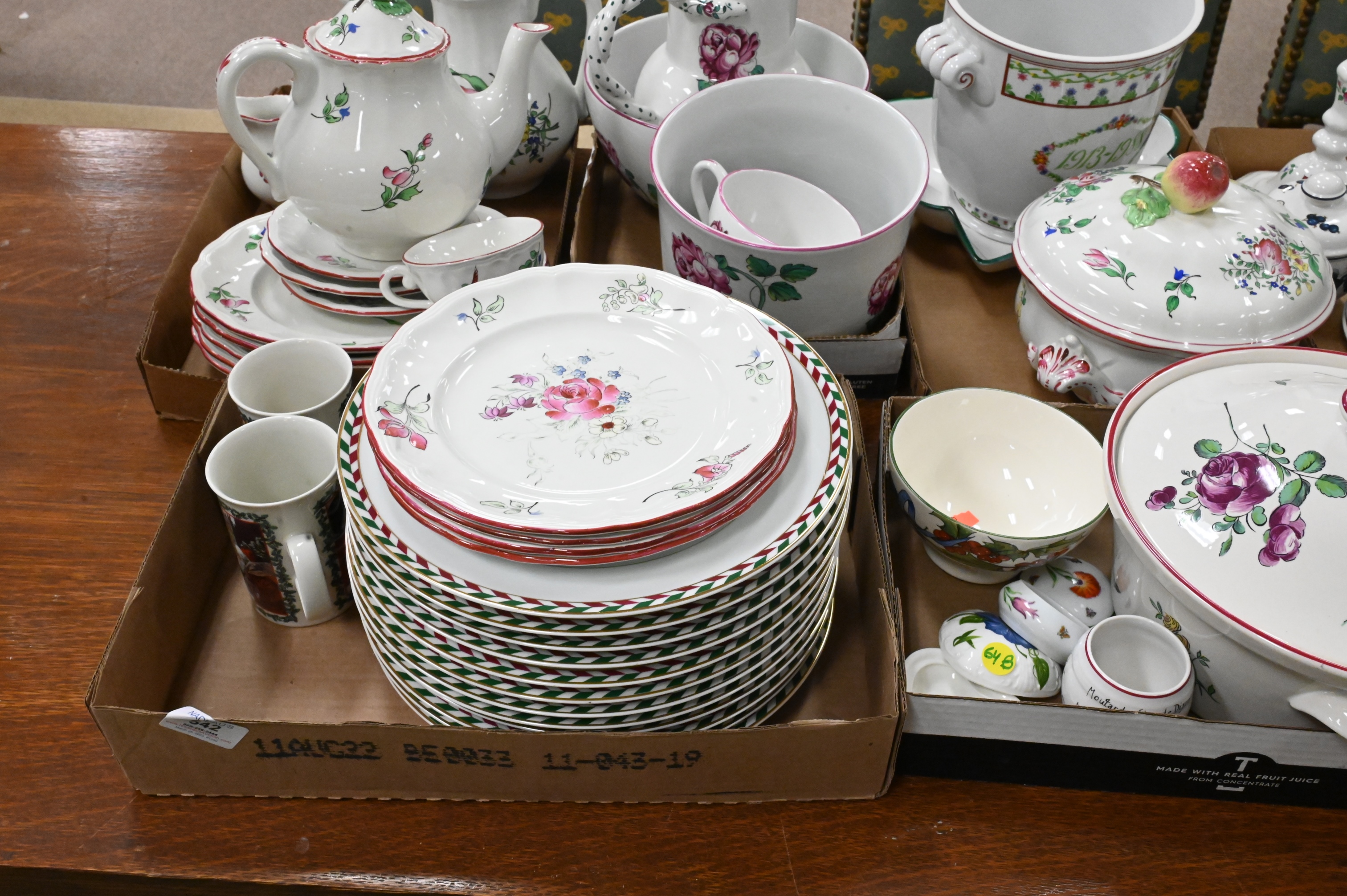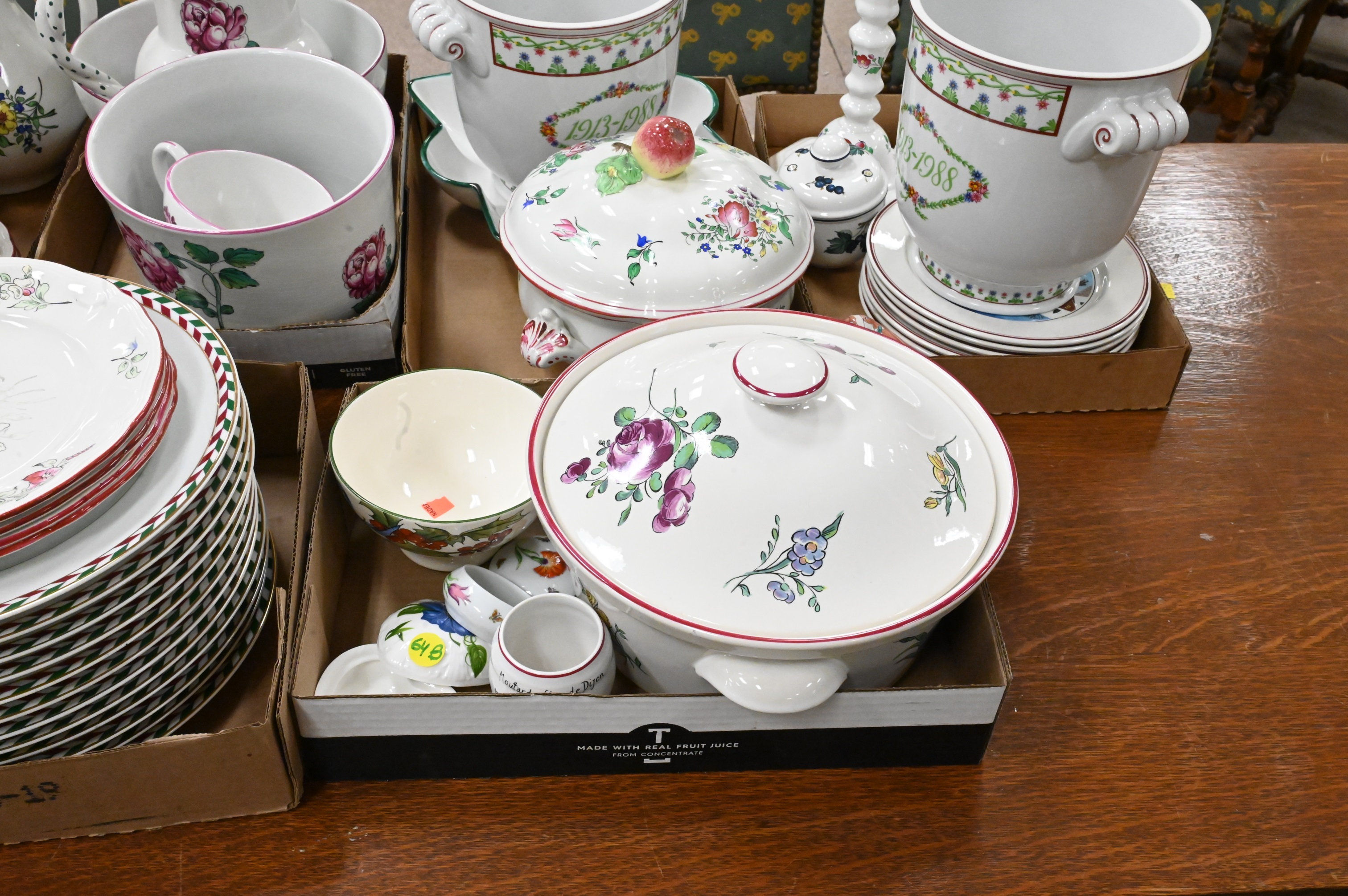 Six Box Lots of Porcelain Dishware, mostly French Faience, to include Tiffany & Company “Strasburg Flowers”, KG Luneville, Villeroy & Boch, etc.; tallest 9 inches.