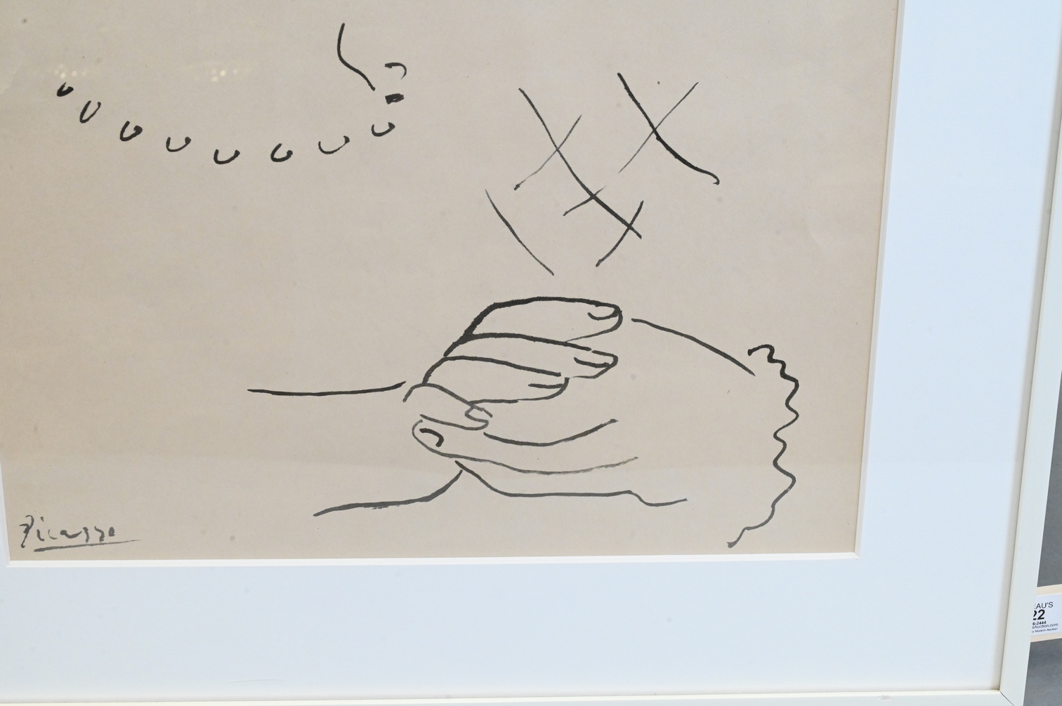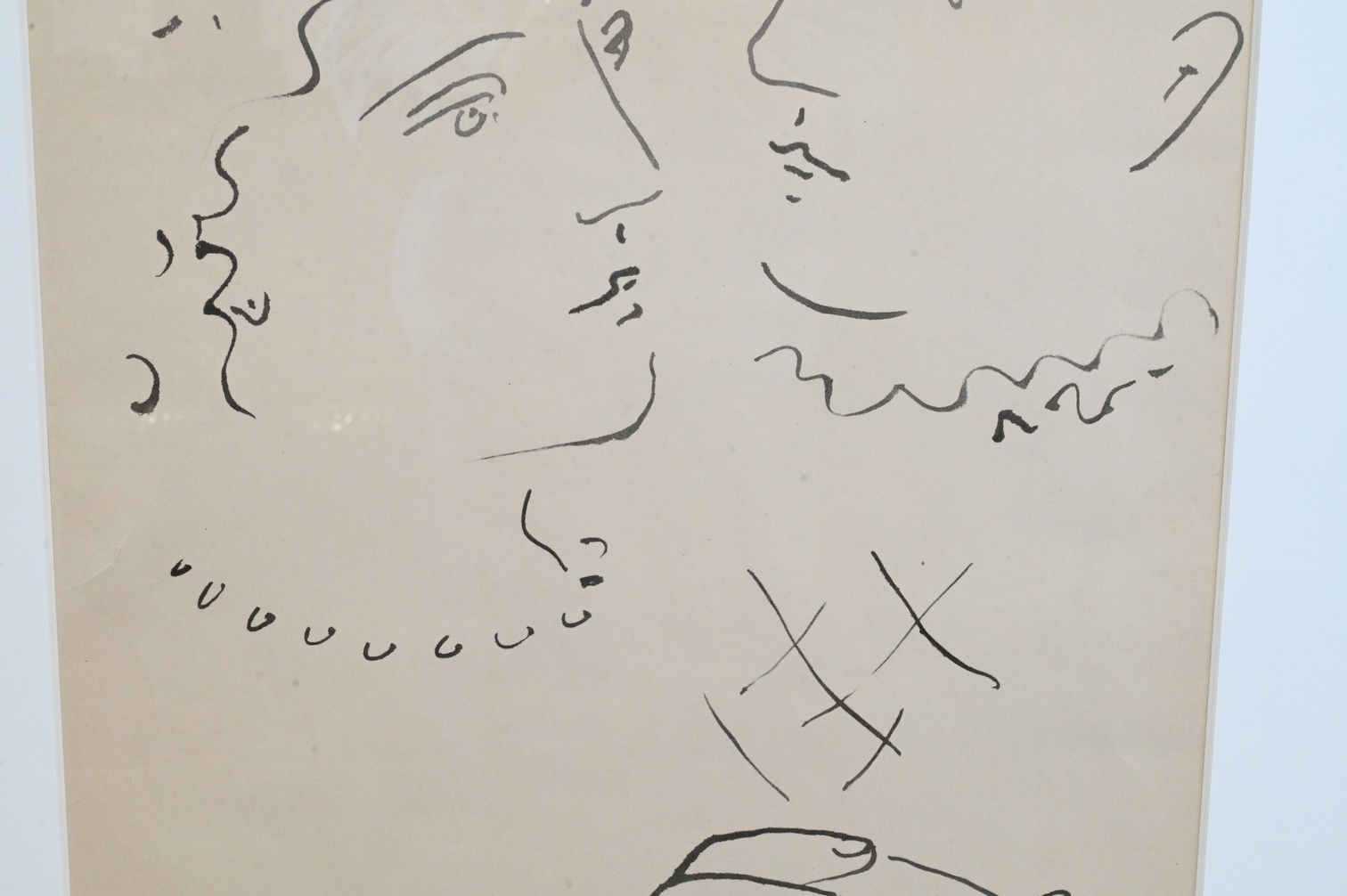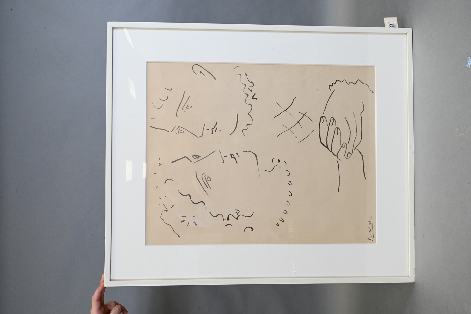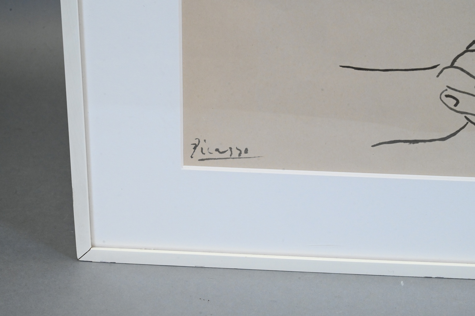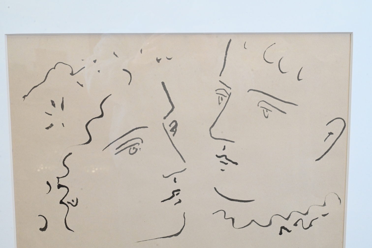 Reproduction of a Picasso drawing, matted framed, and glazed