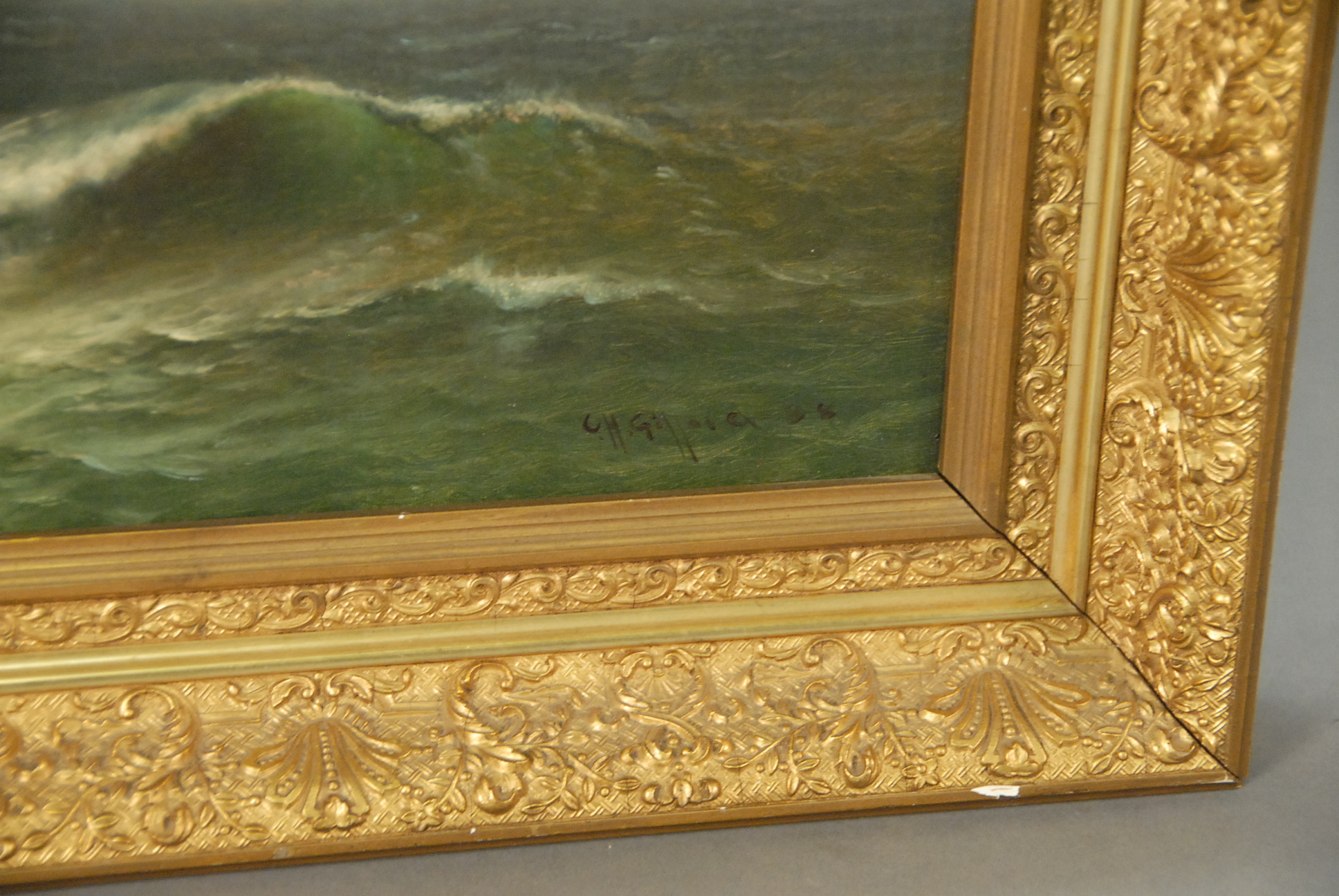 Lot 543: Charles Henry Gifford 1839-1904 SAILING VESSEL OFF COAST oil on canvas signed lower right C.H. Gifford 85 7 x 17 1/2
