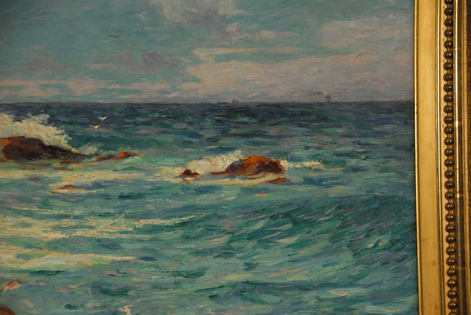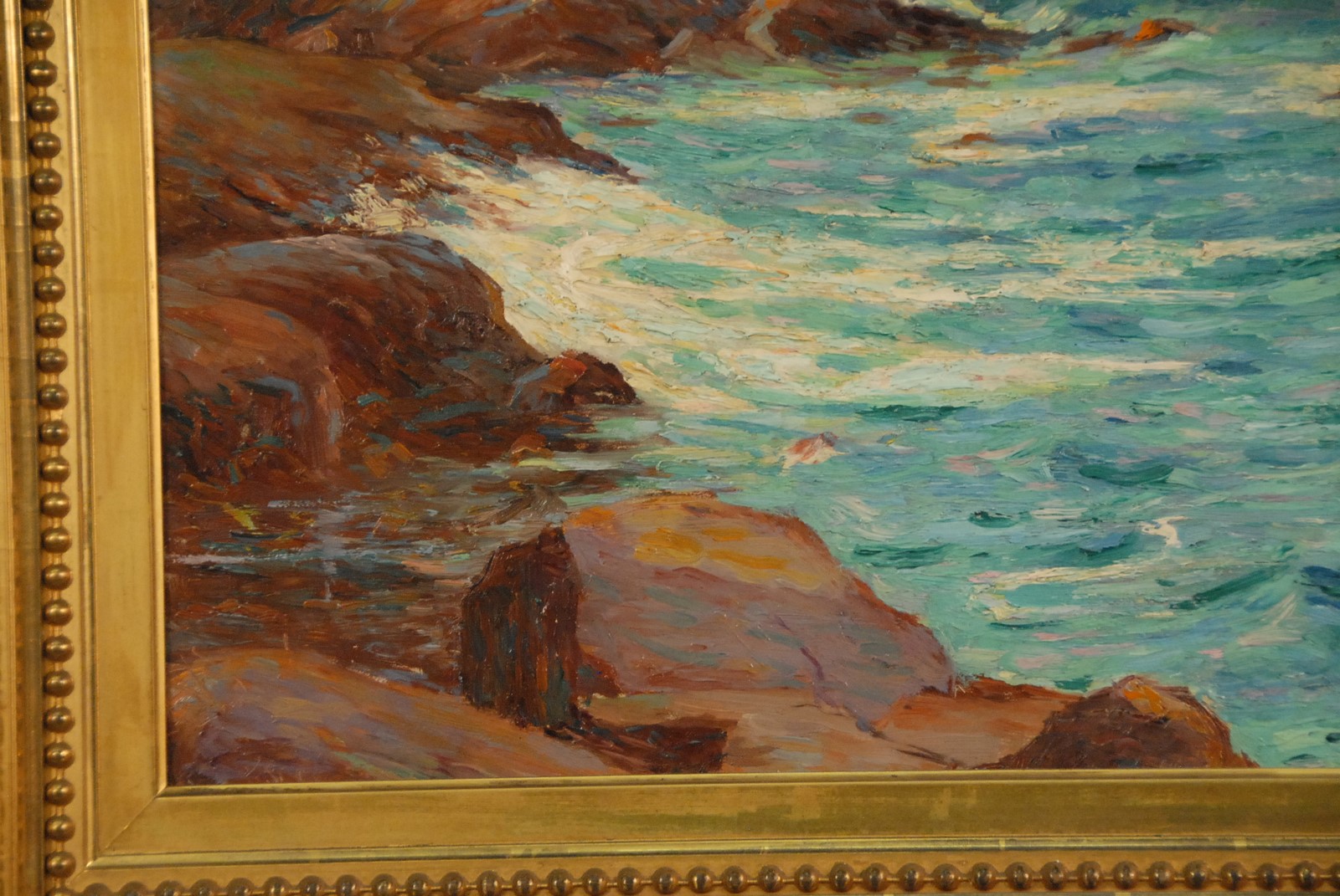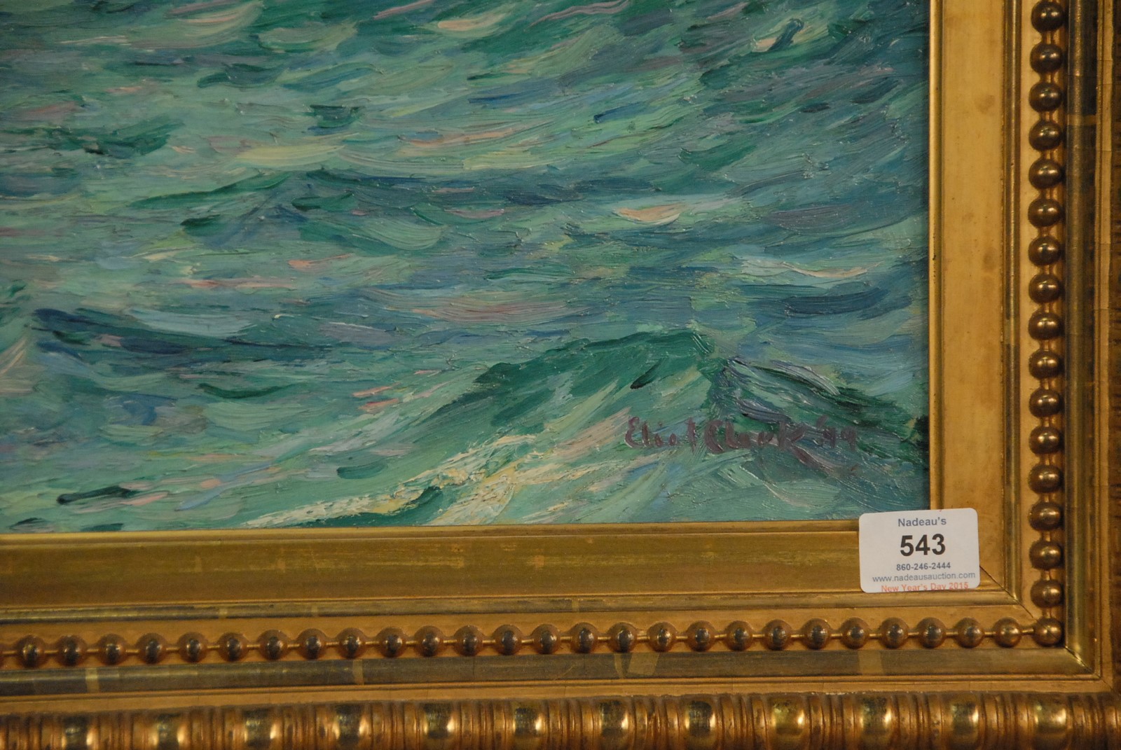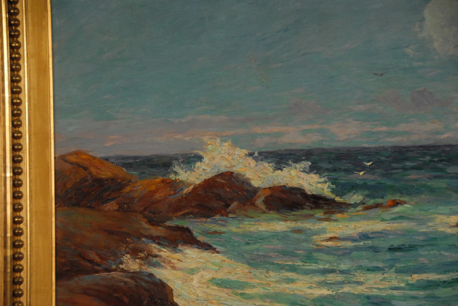 Lot 543: Eliot Candee Clark 1883-1980 CRASHING WAVES ON ROCKY COAST oil on canvas signed lower right Eliot Clark 19 3/4 x 27