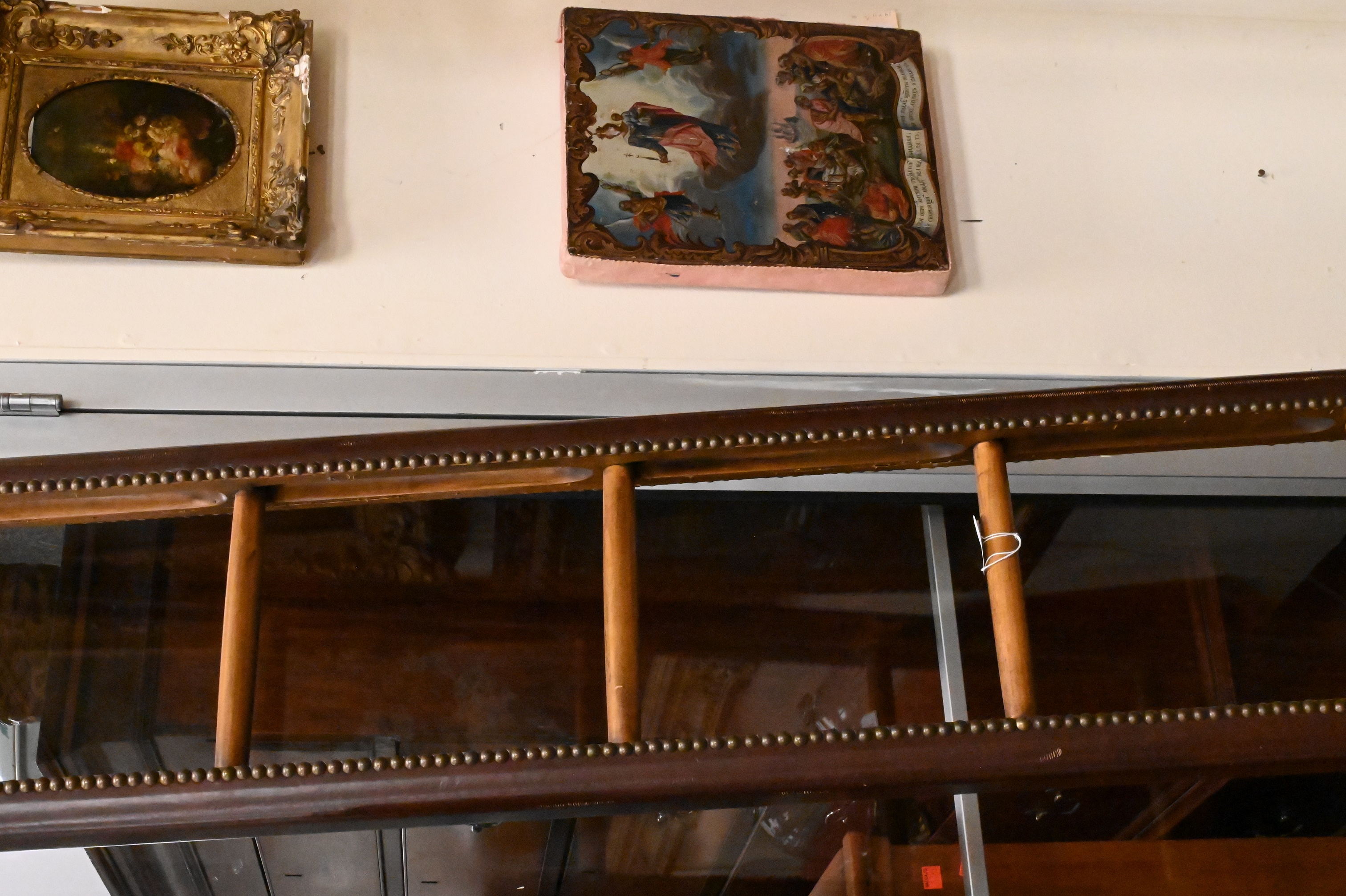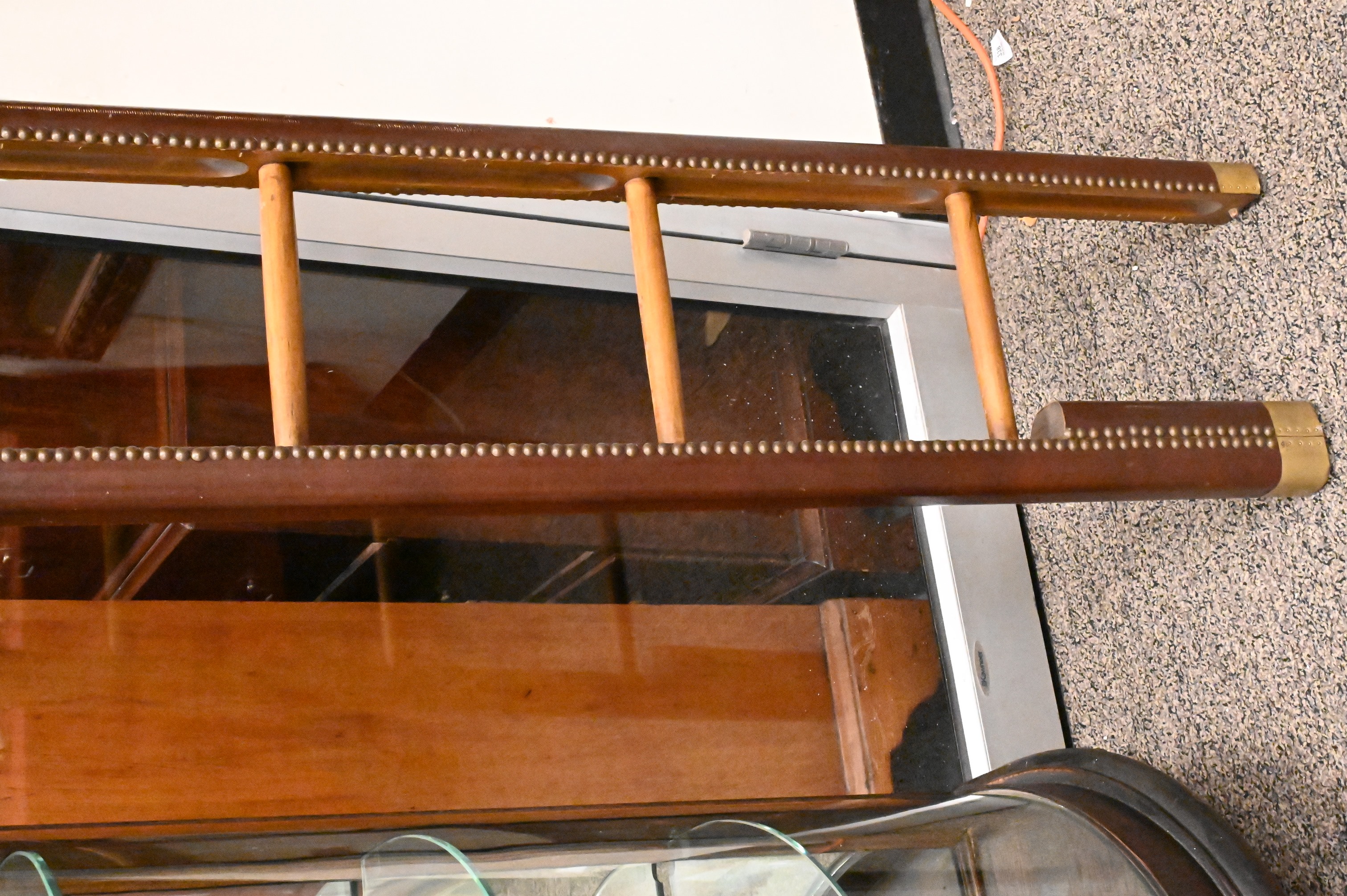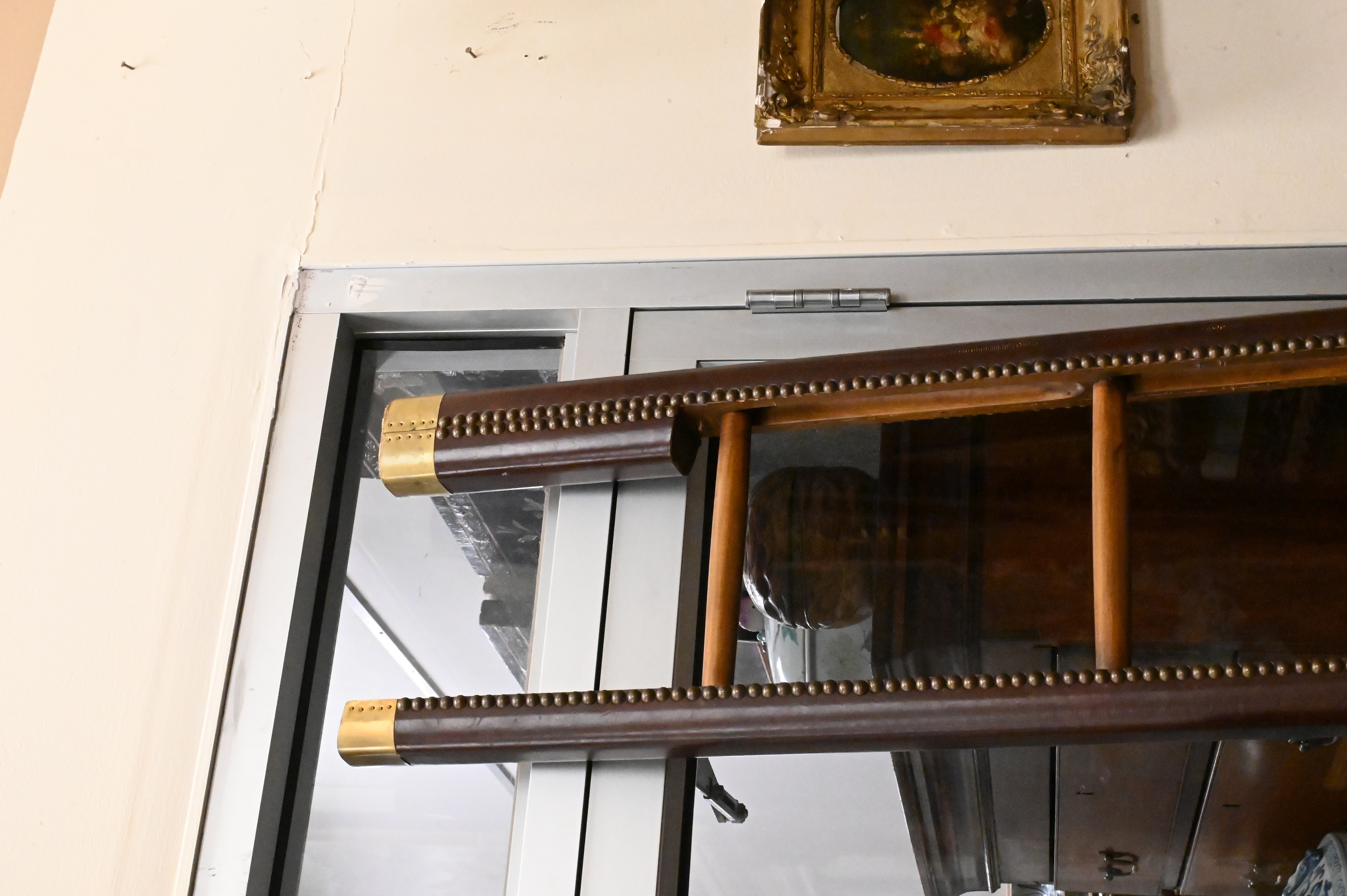 Condition: presents well, wear to exterior leather, interior vertical wood splitting throughout, wear to rungs