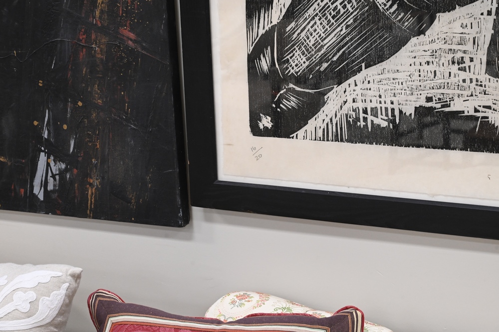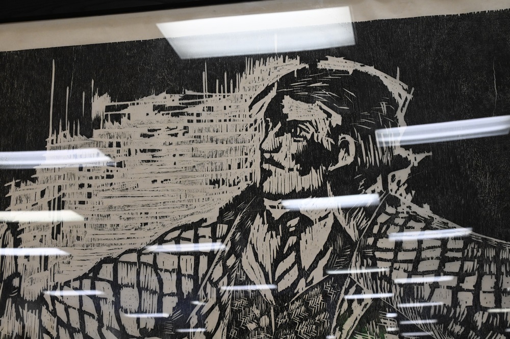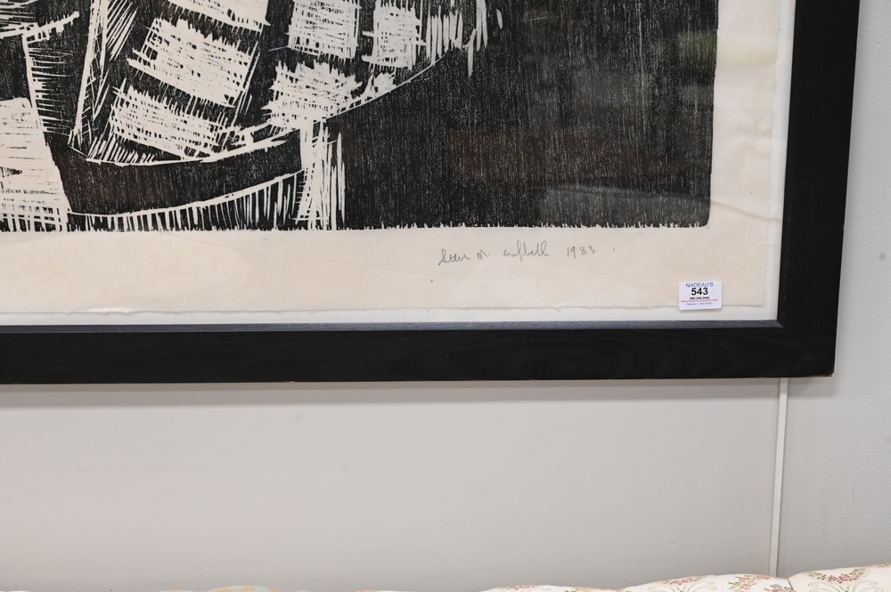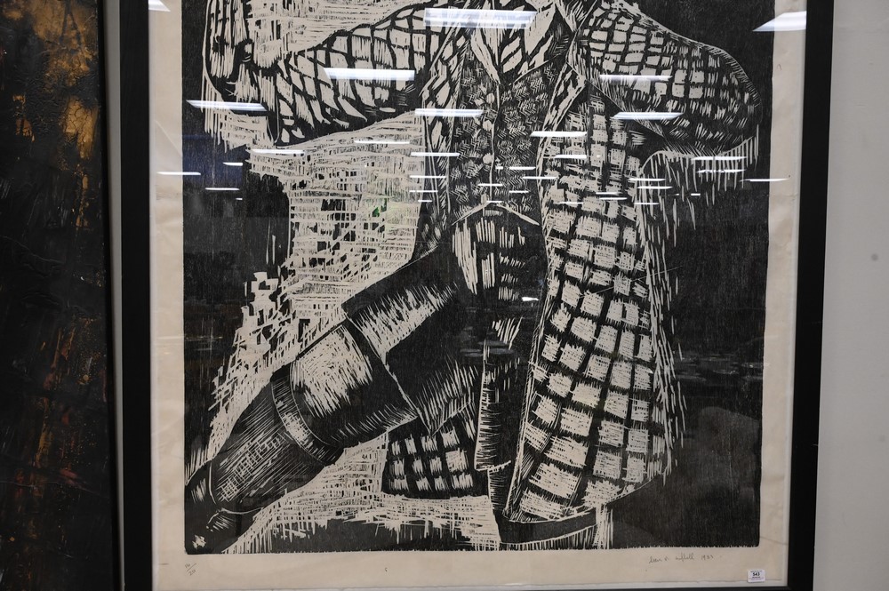 Lot 543: Steven Campbell (b. 1953), Gesturing Hoker 1983, woodcut, signed in pencil lower right Steven Campbell 1983, numbered in pencil lower left 16/20, 66″ x 53″.
