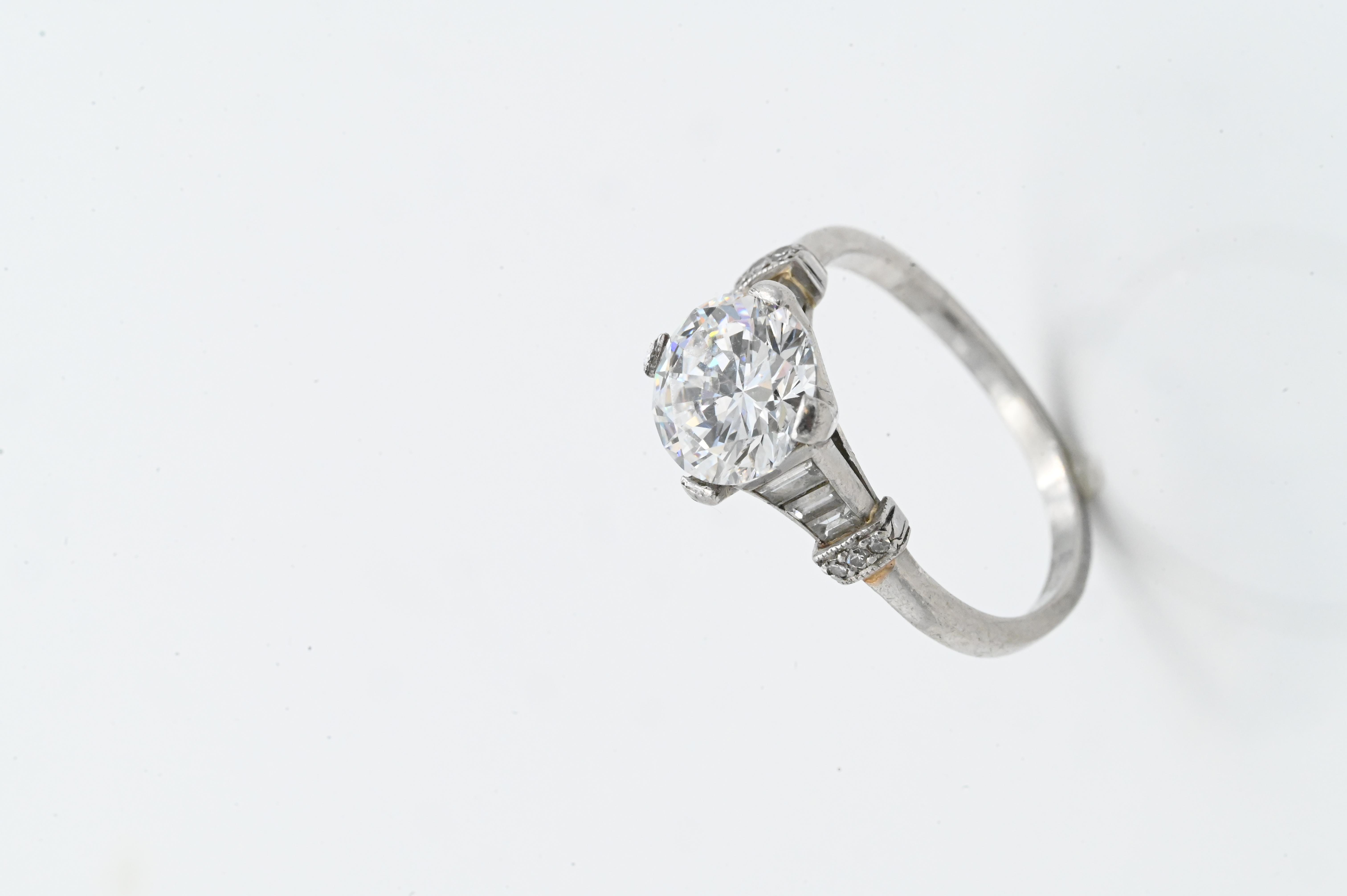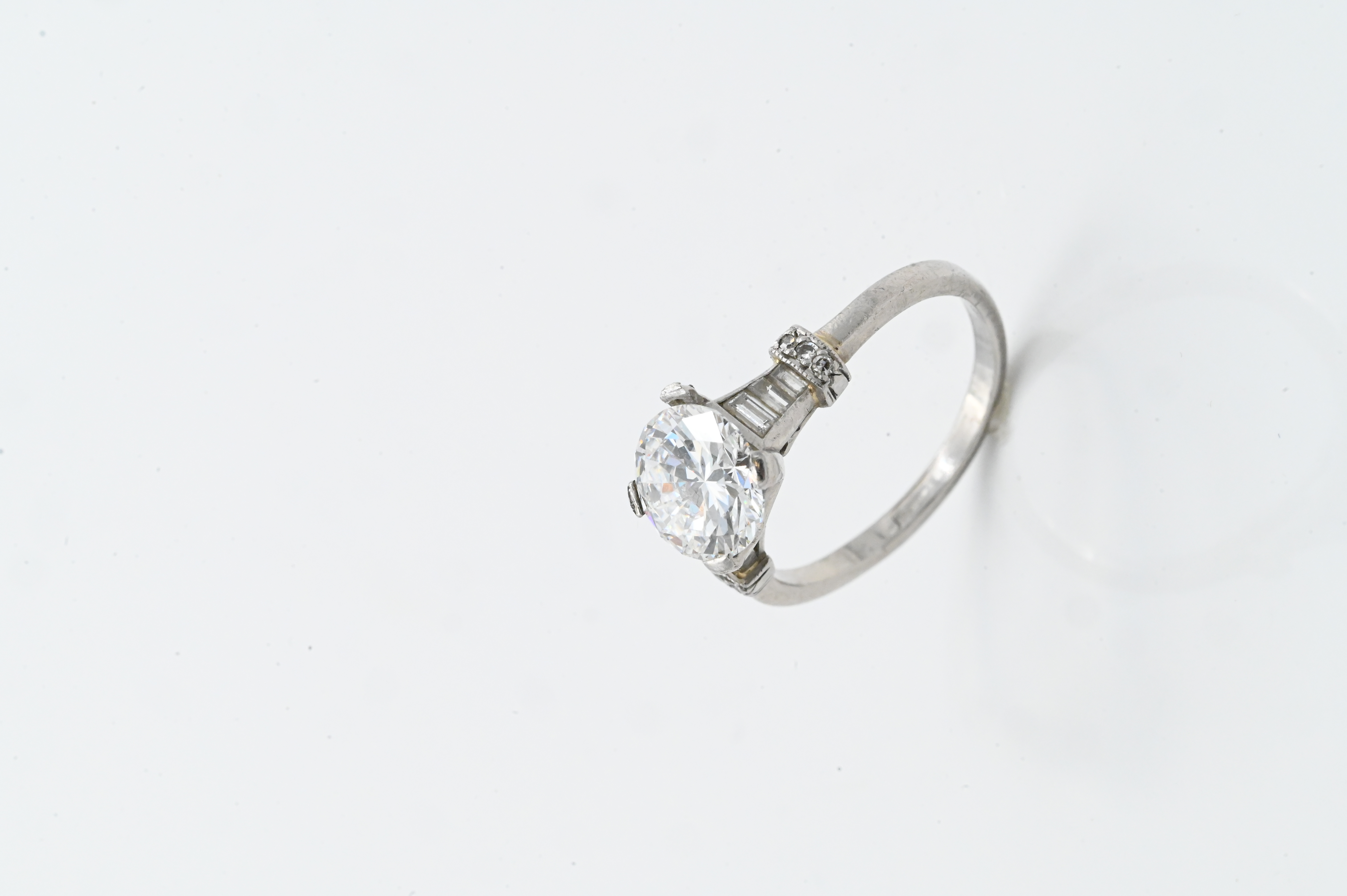 Lot 543: Vintage Platinum Ring with 2.10 ct Center Diamond