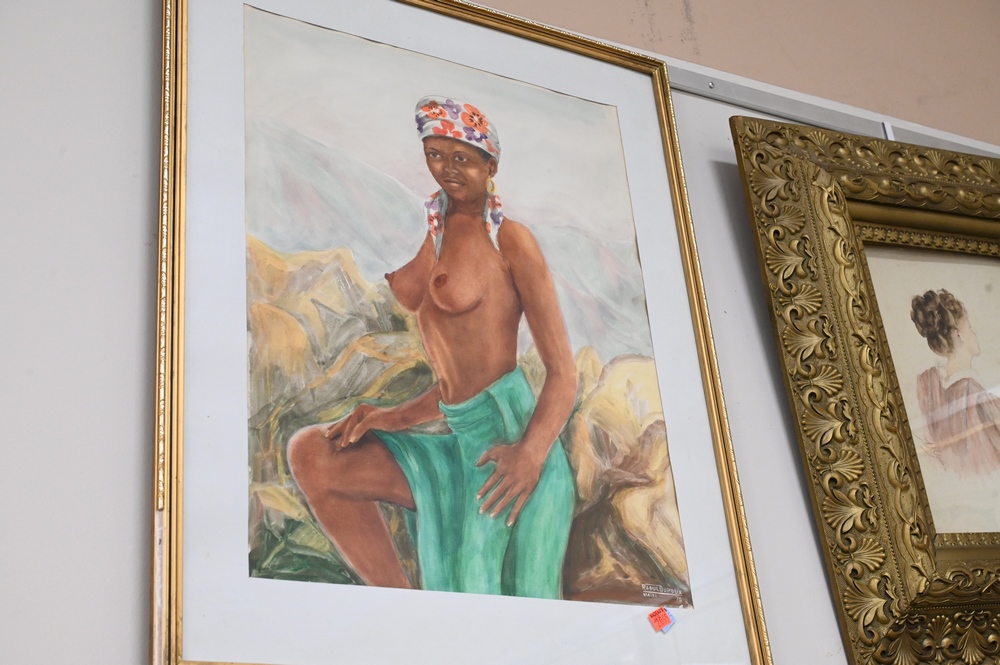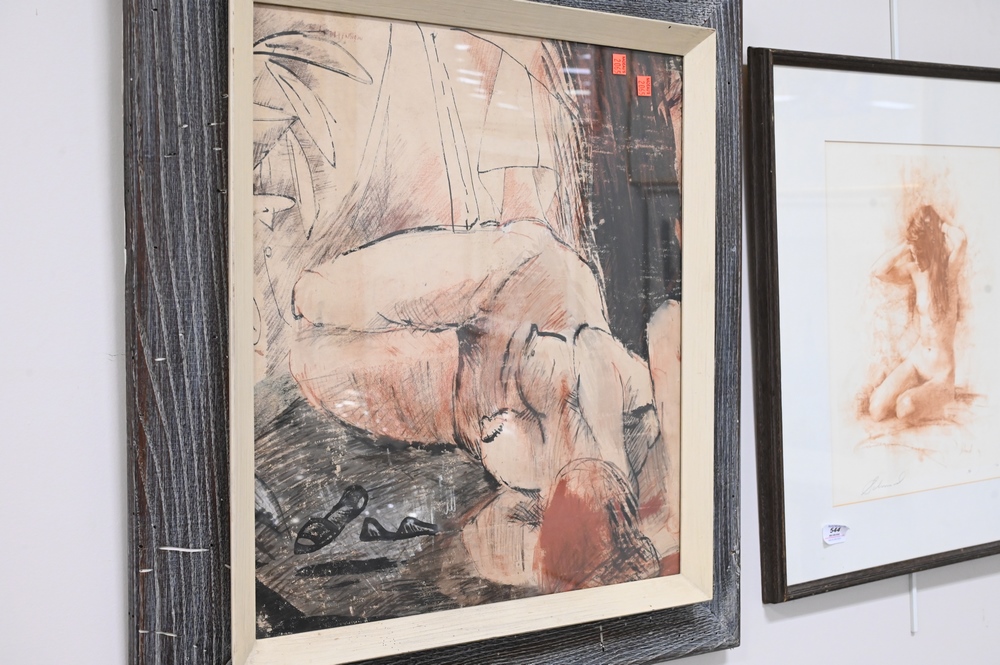 Lot 544: Group of Four Framed Pieces, to include Raoul Dupoux (1906 – 1988), nude woman, watercolor, 22″ x 17″; watercolor of nude woman, sig…