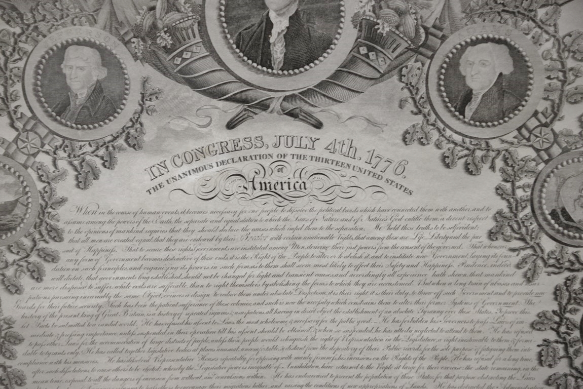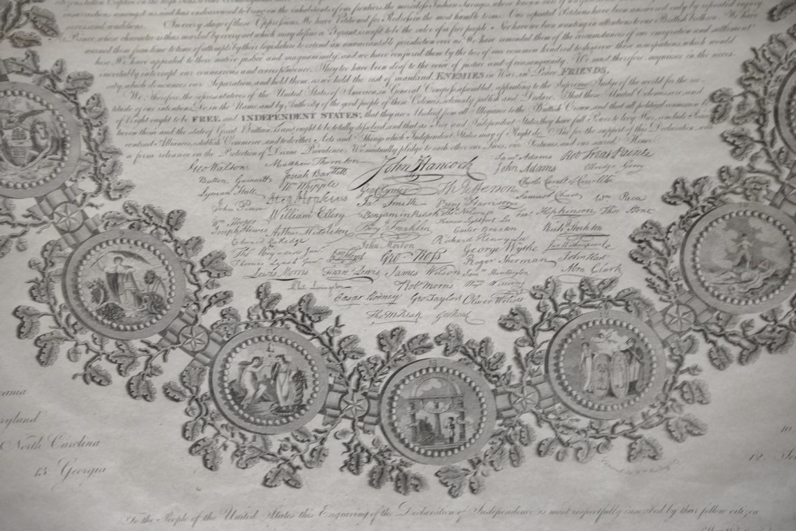 Lot 544: William Woodruff In Congress, July 4th, 1776, the Unanimous Declaration of the Thirteen United States of America engraving publis…