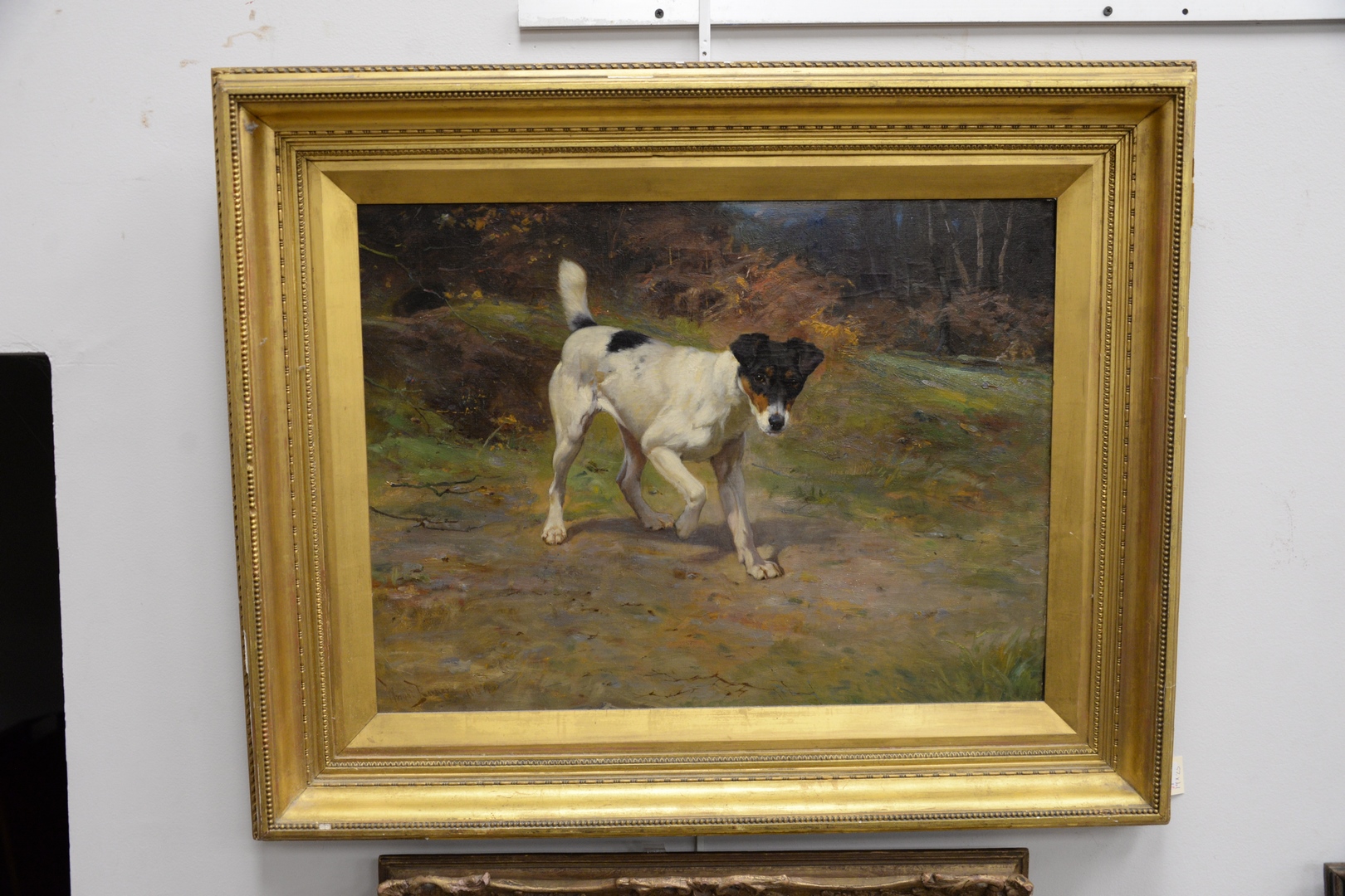 Lot 544: Wright Barker 1864 – 1941 Jack Russell Terrier oil on canvas signed lower left Wright Barker relined 19 x 23 Provenance: receip…