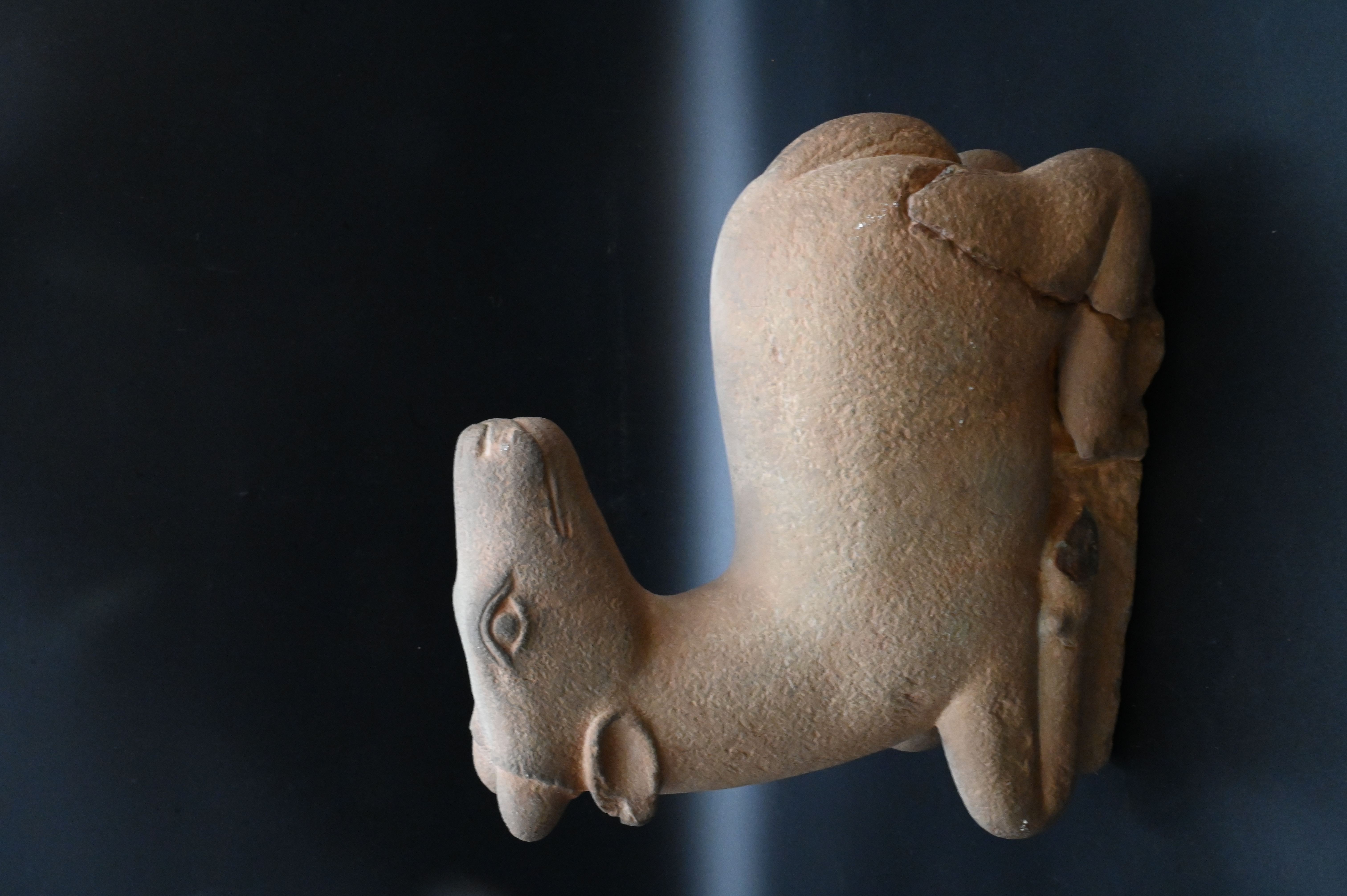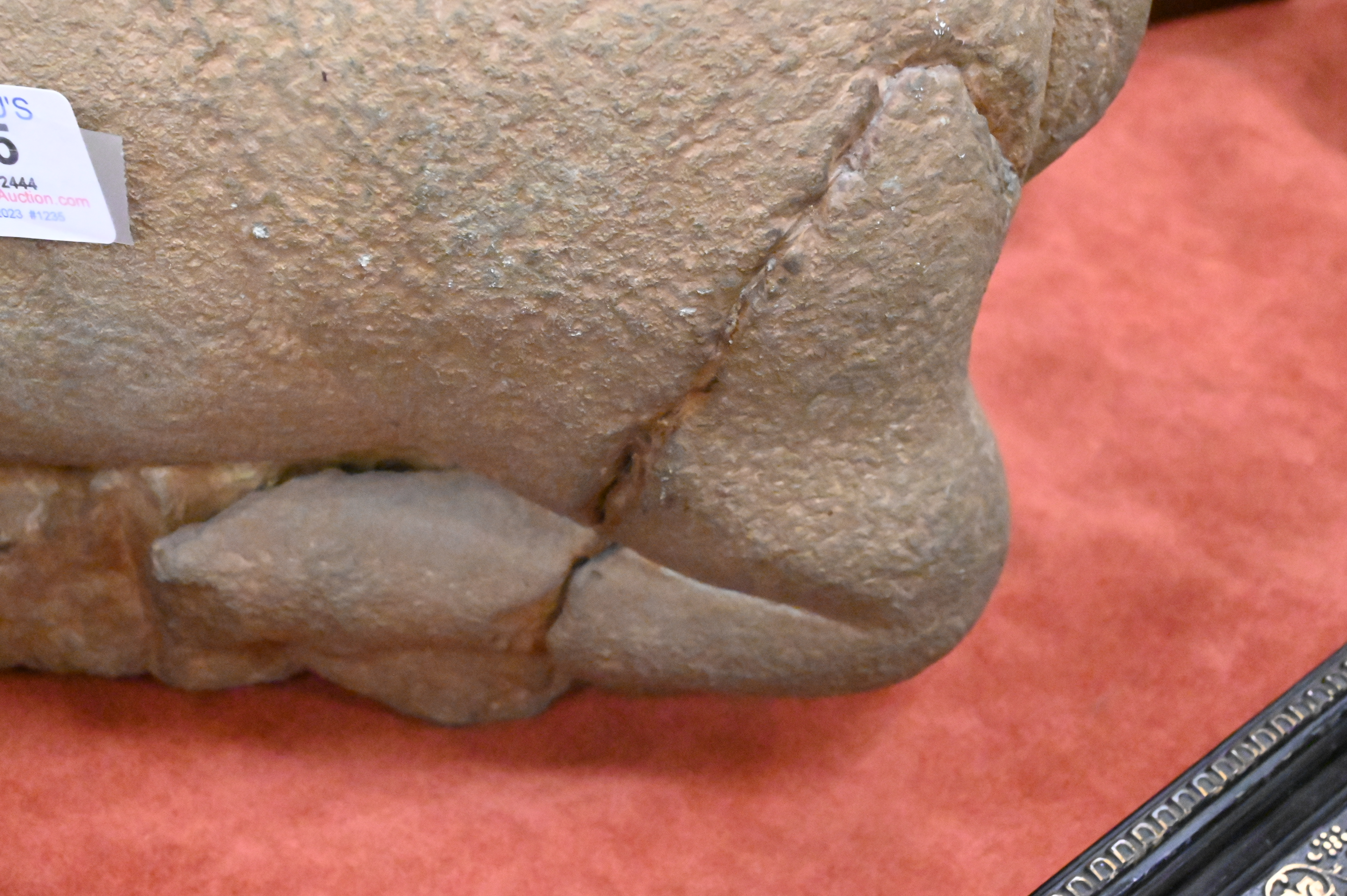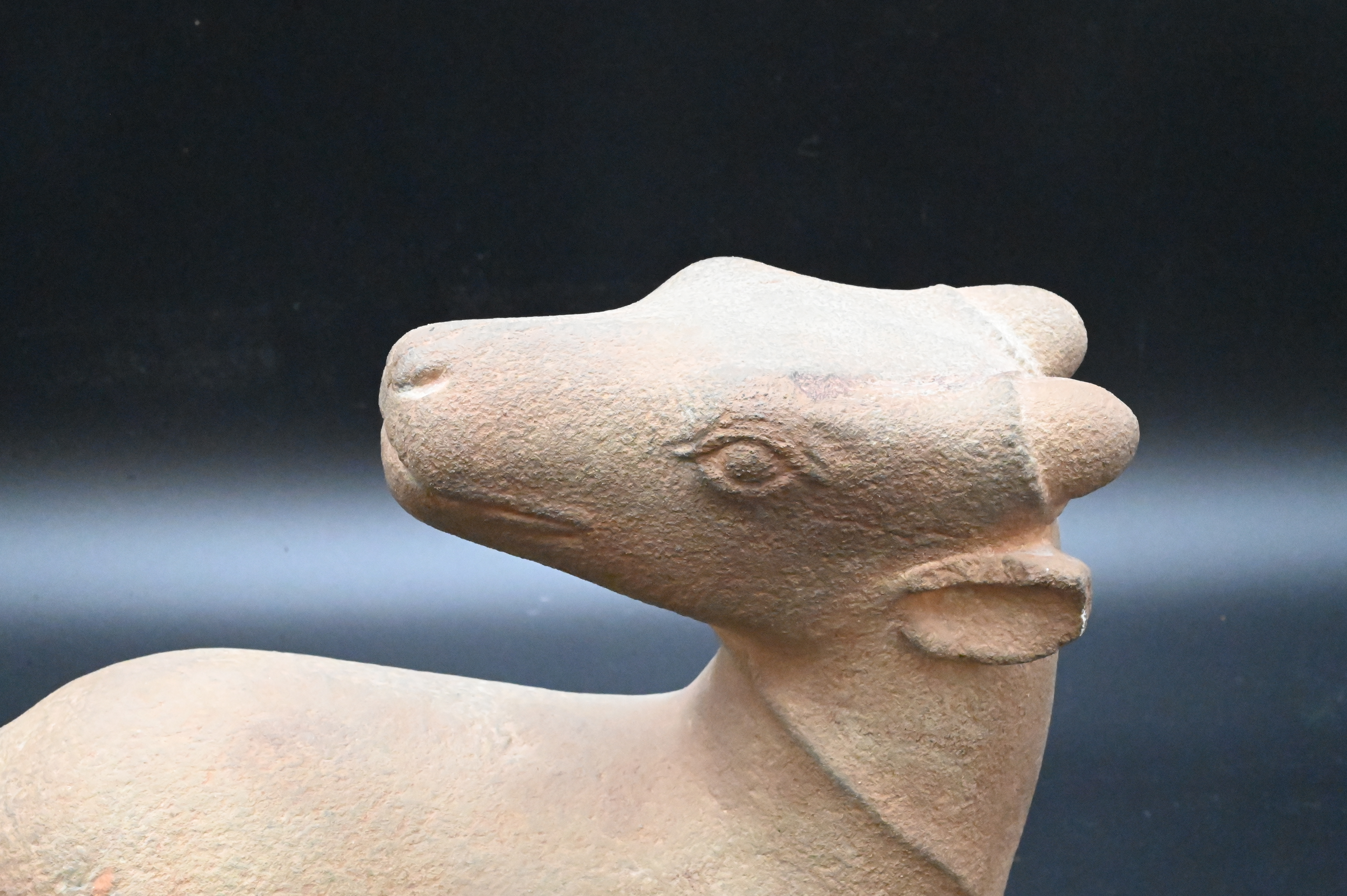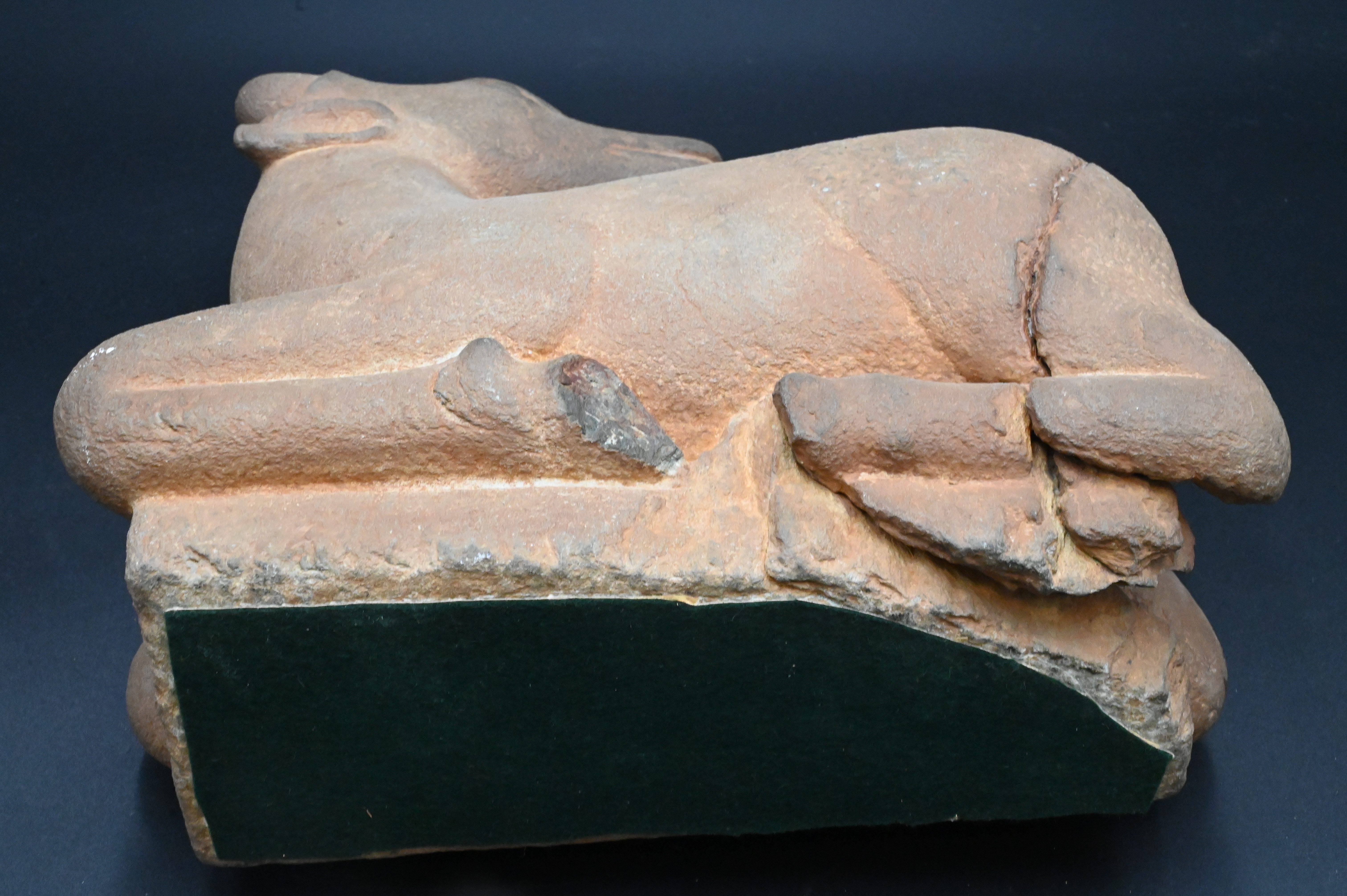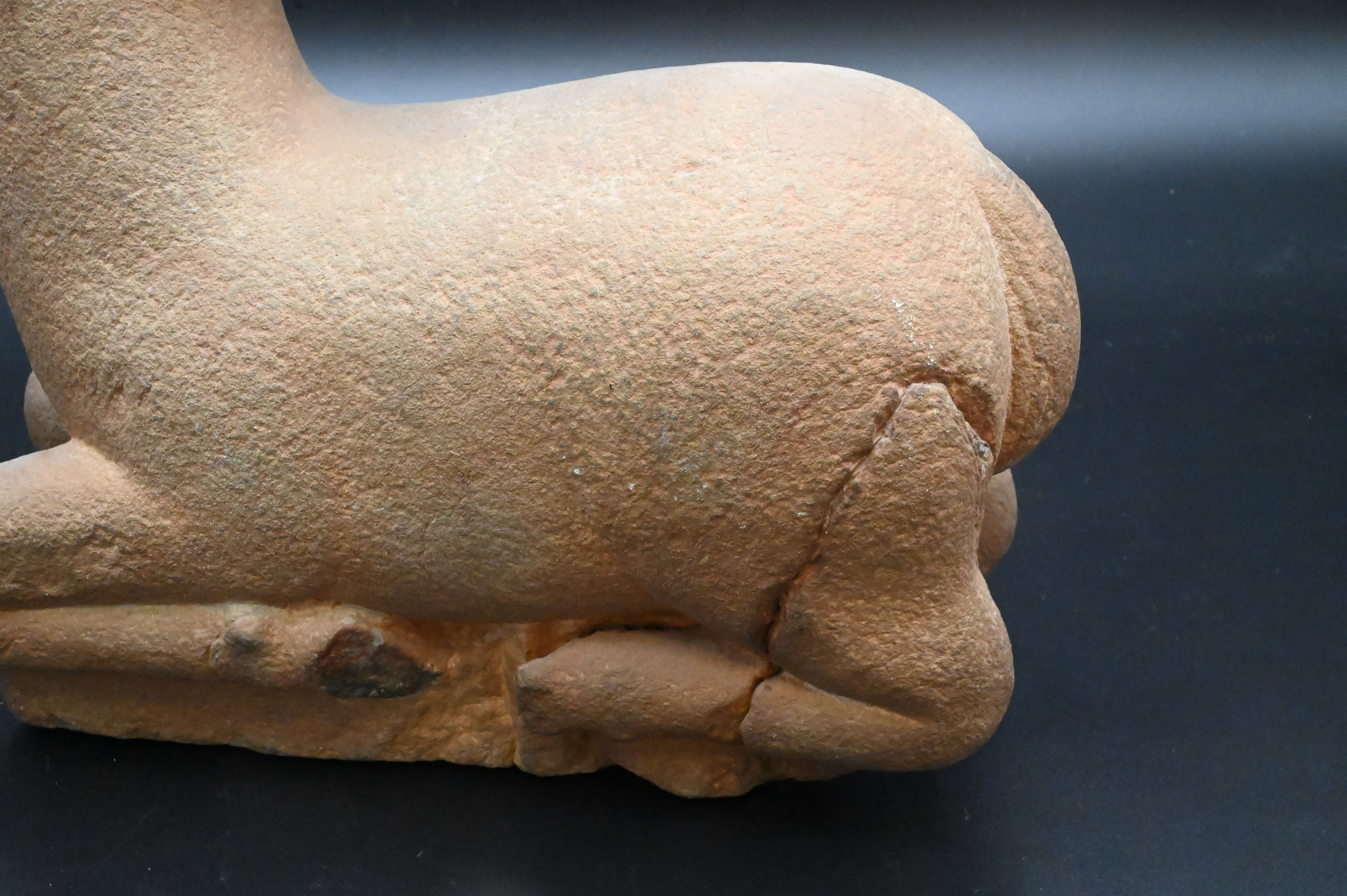 Lot 545: Carved Brownstone or Limestone Recumbent Deer Figure
