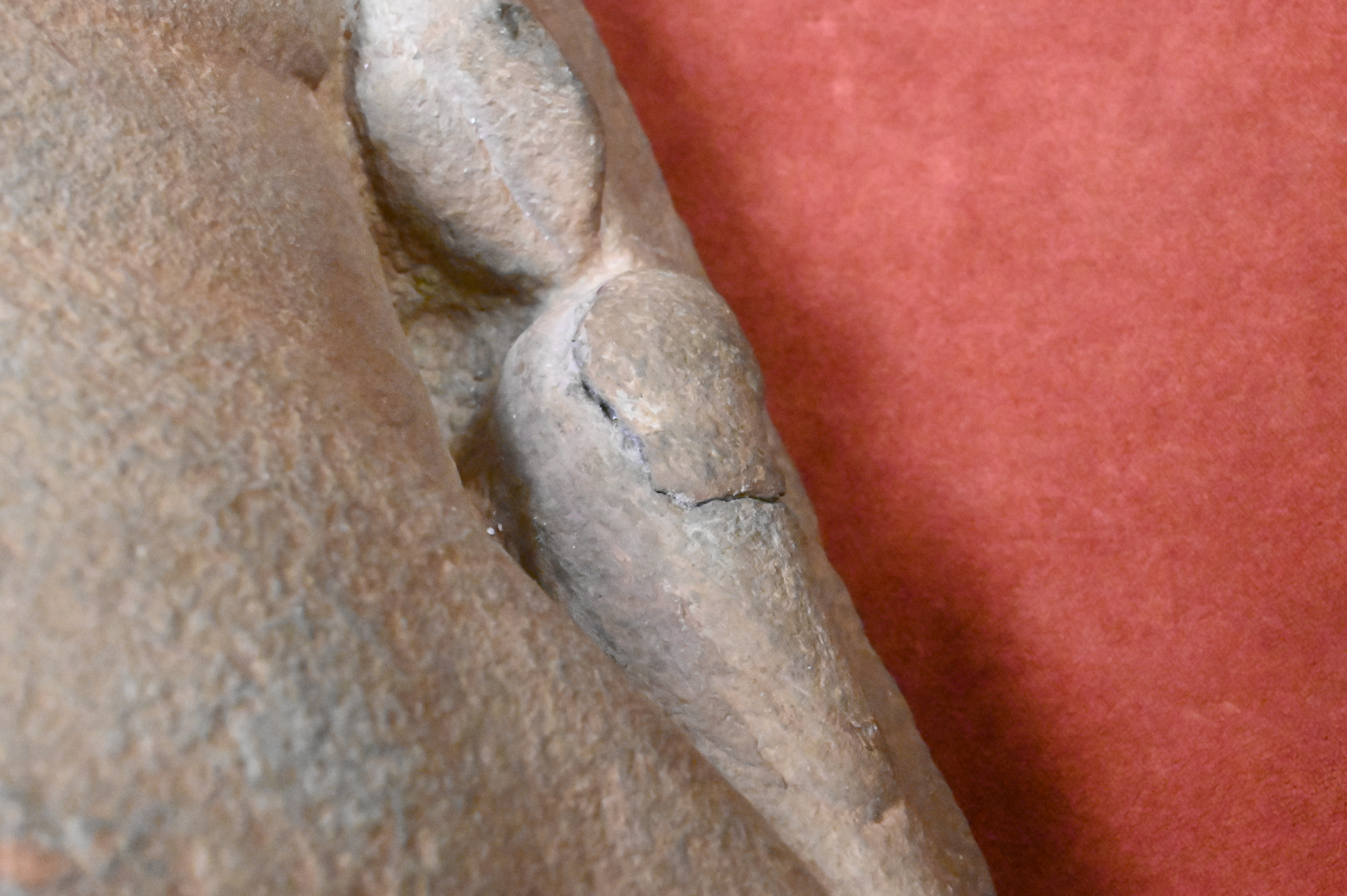 Carved Brownstone or Limestone Recumbent Deer Figure