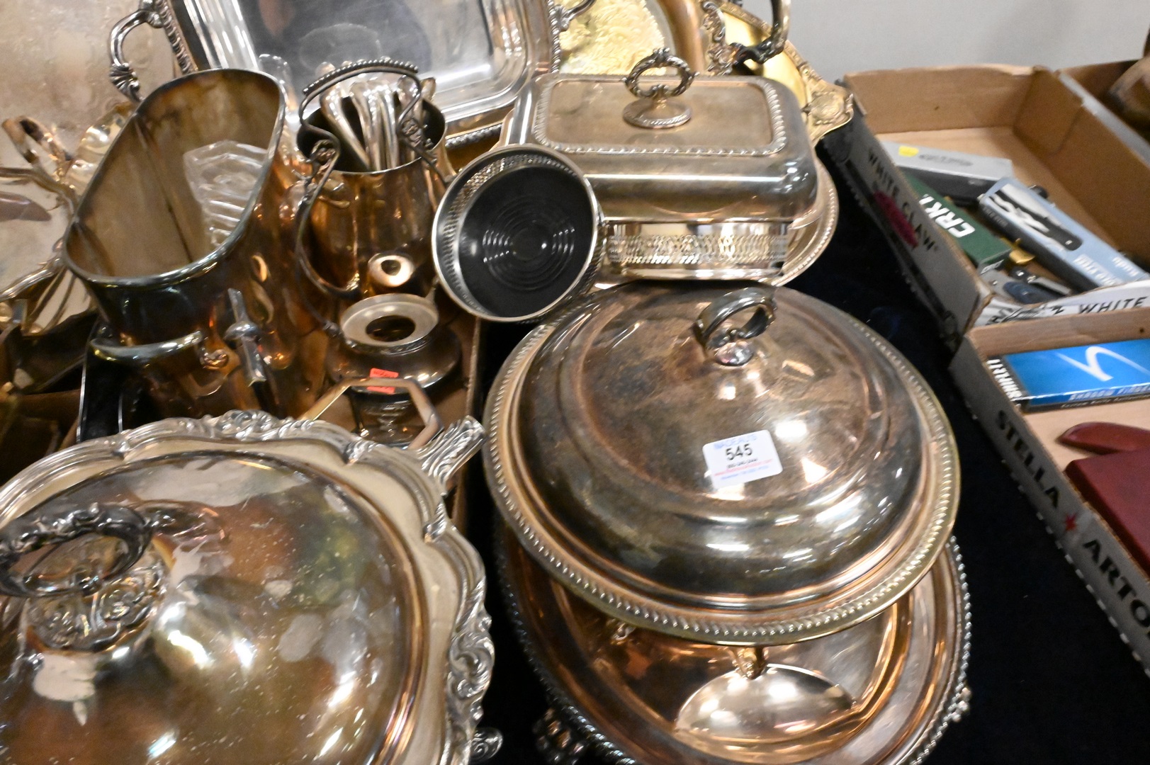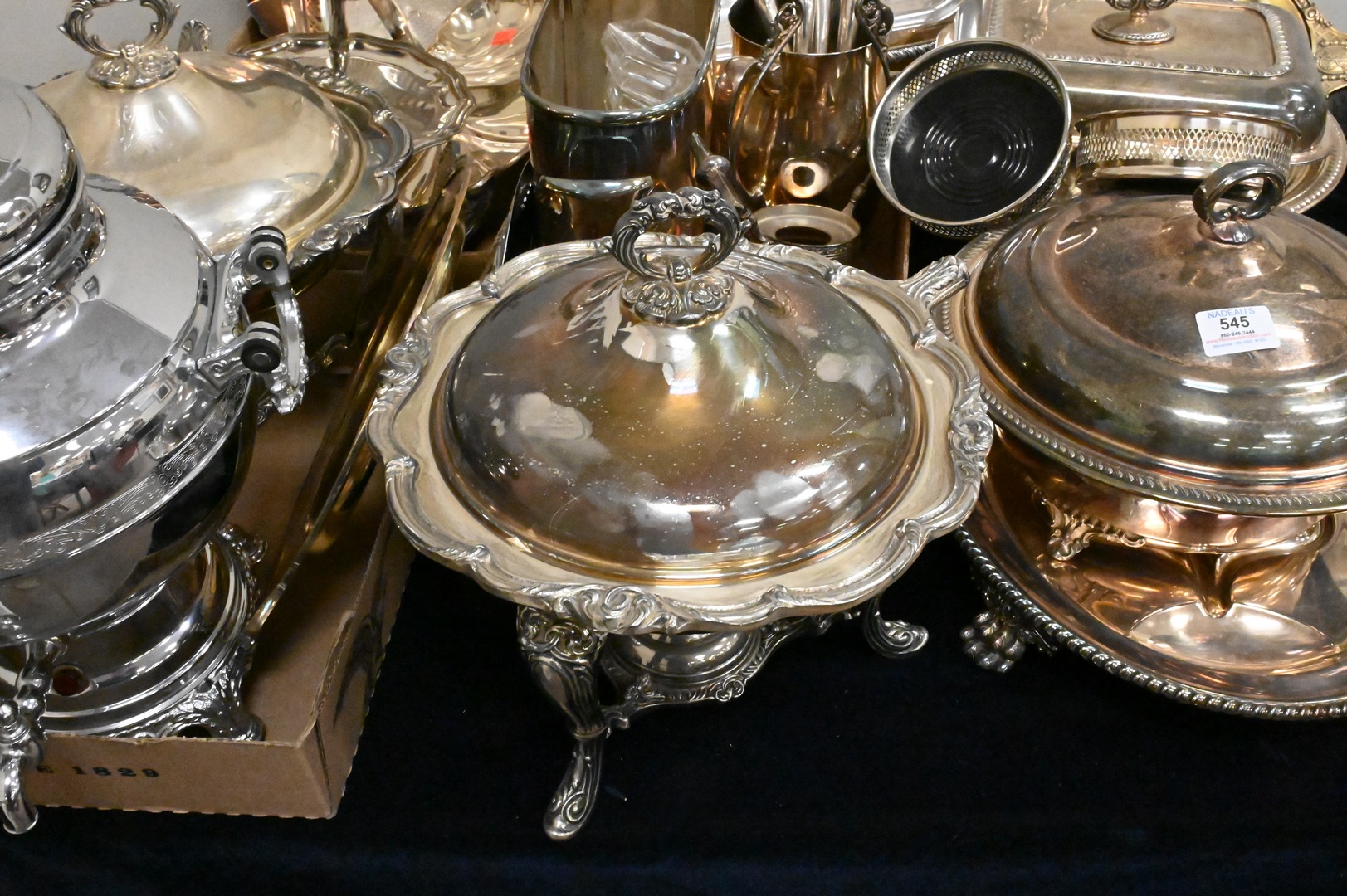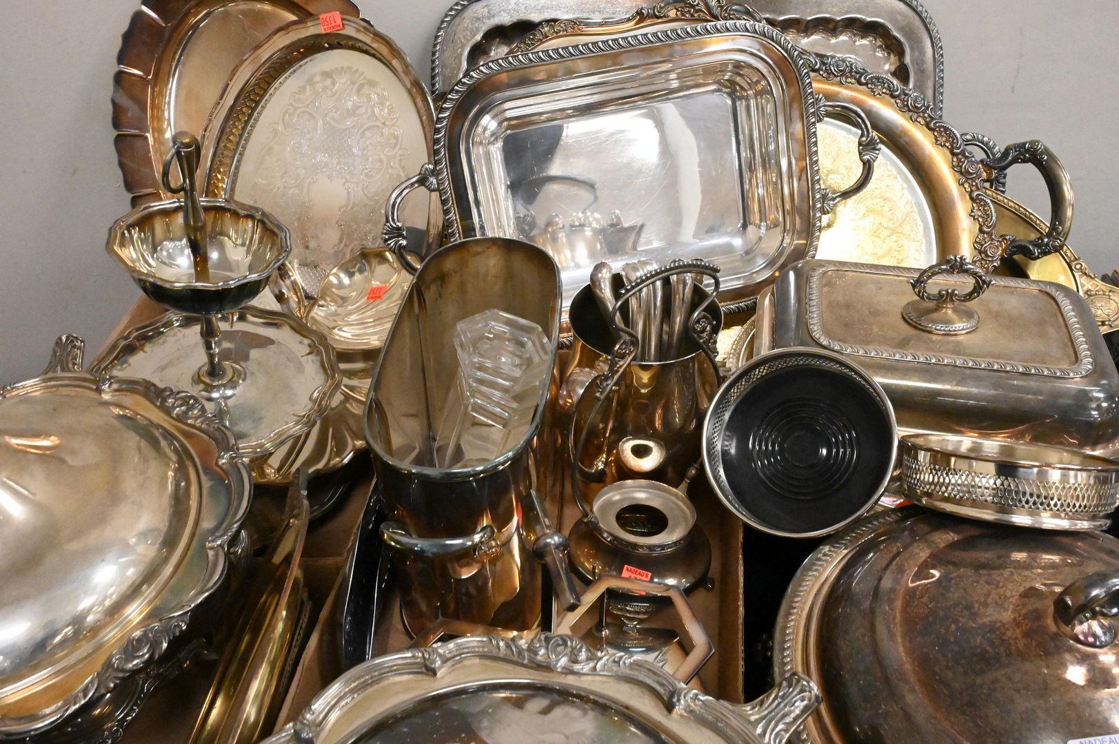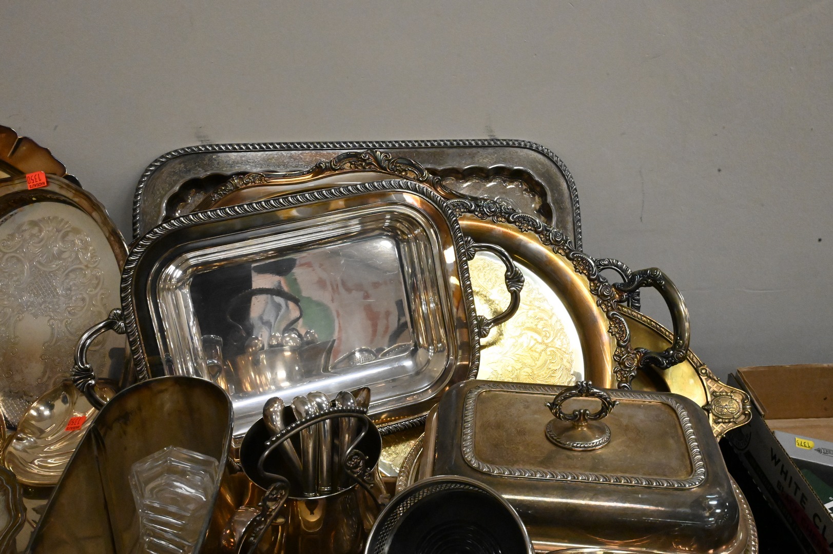 Large Group of Silverplate, to include trays, serving pieces, pitcher, tureens, etc.