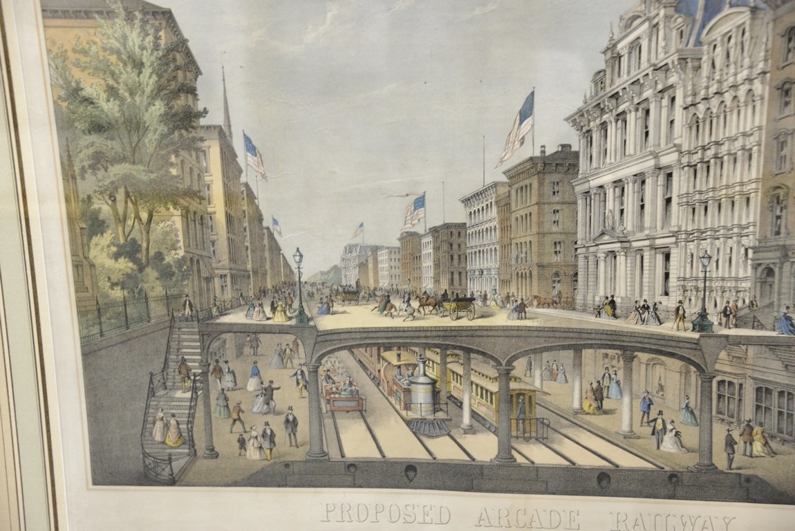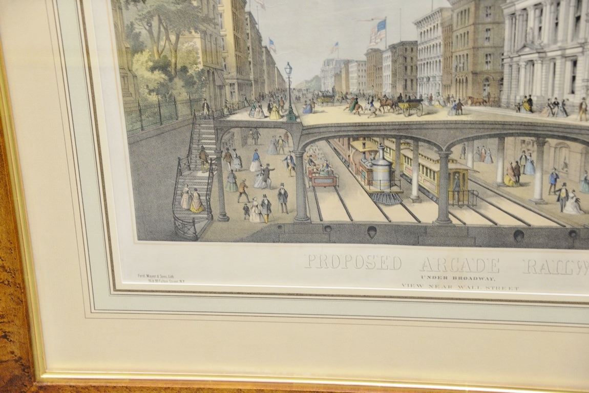 New York Proposed Arcade Railway Under Broadway: View Near Wall Street hand colored lithograph marked lower left: Fred Mayer & Sons Lithographer marked lower right: Melville C. Smith Projector sight size: 19 1/2 x 25 Provenance: Property from Credit Suisse’s Americana Collection