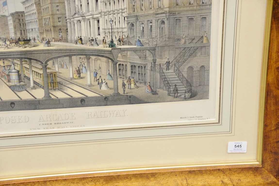 Lot 545: New York Proposed Arcade Railway Under Broadway: View Near Wall Street hand colored lithograph marked lower left: Fred Maye…