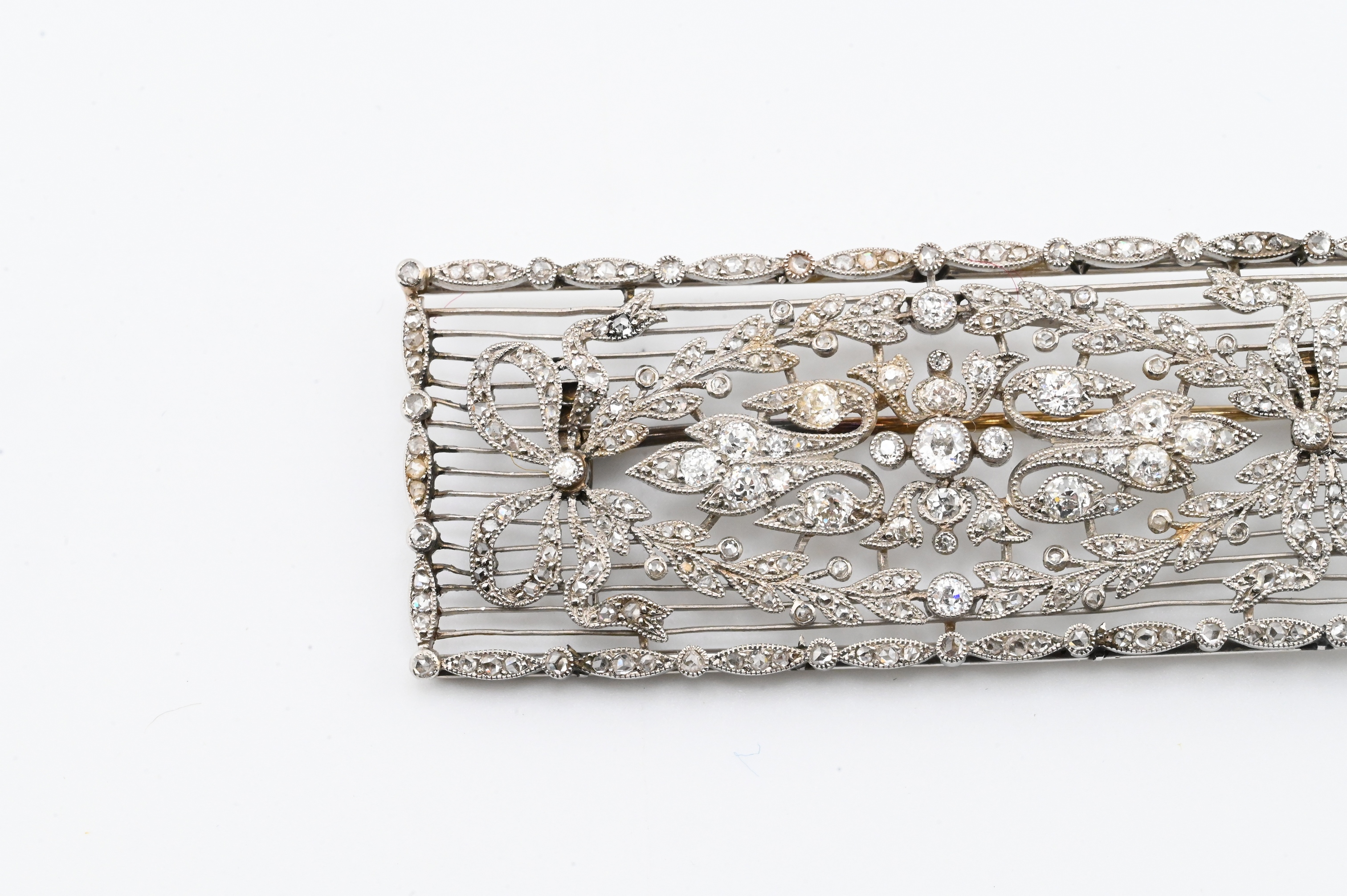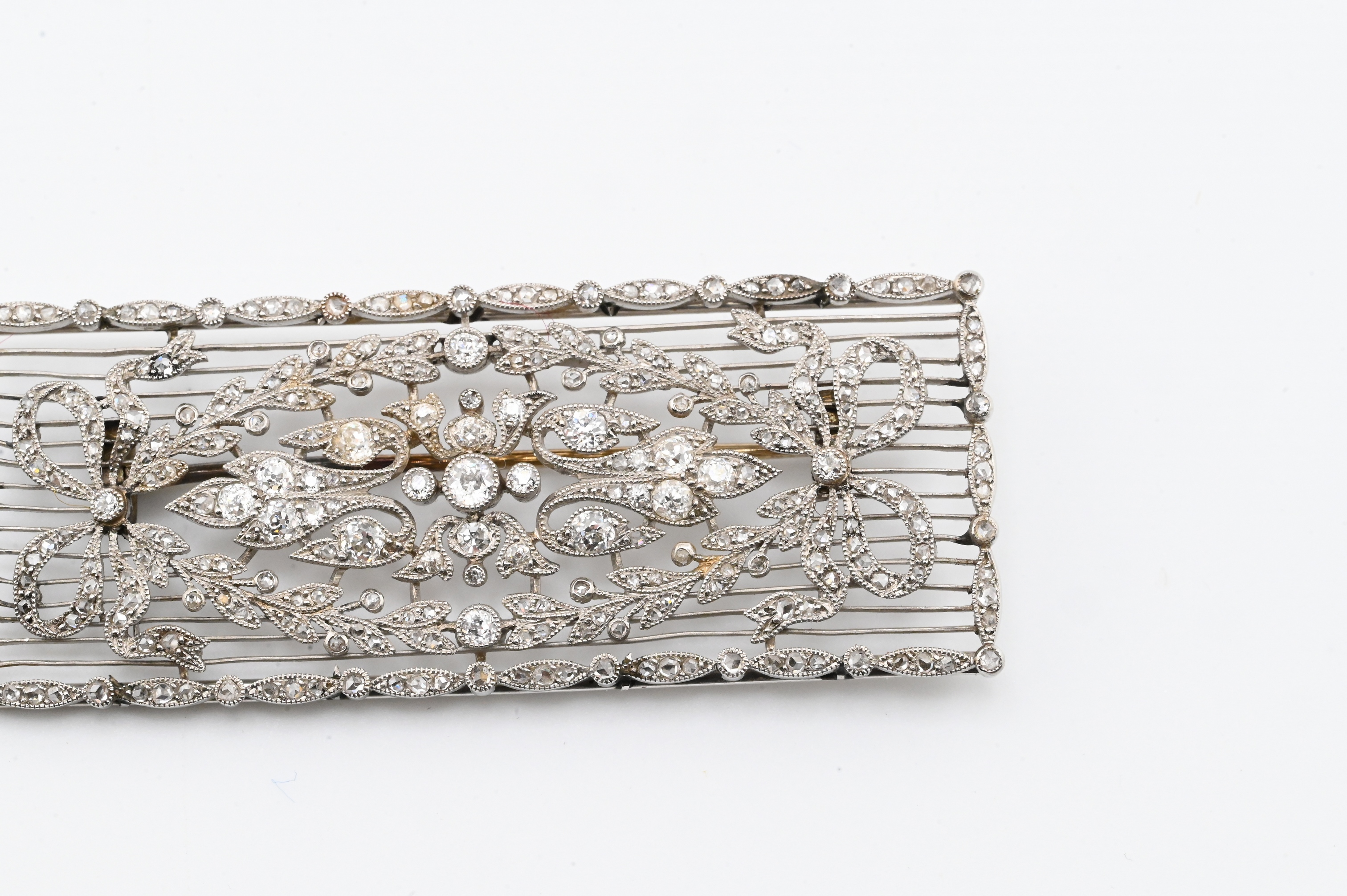 Belle Epoque Platinum and Diamond Plaque Brooch