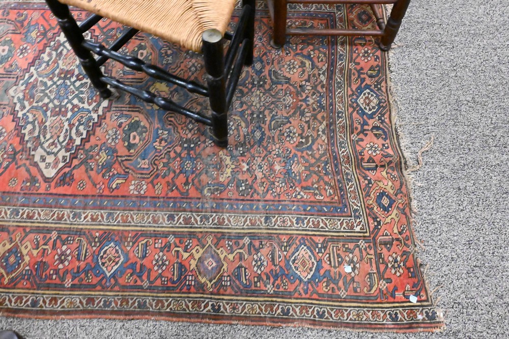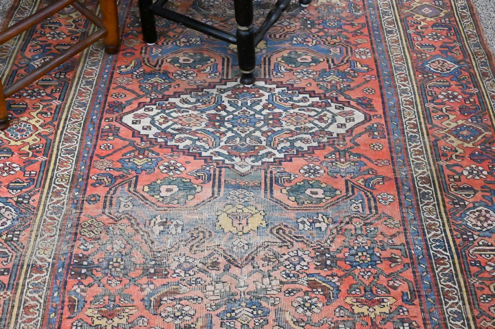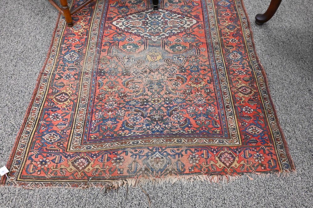 Bidjar Oriental Scatter Rug, 4′ 10″ x 7′ 7″, (worn and end fraying).