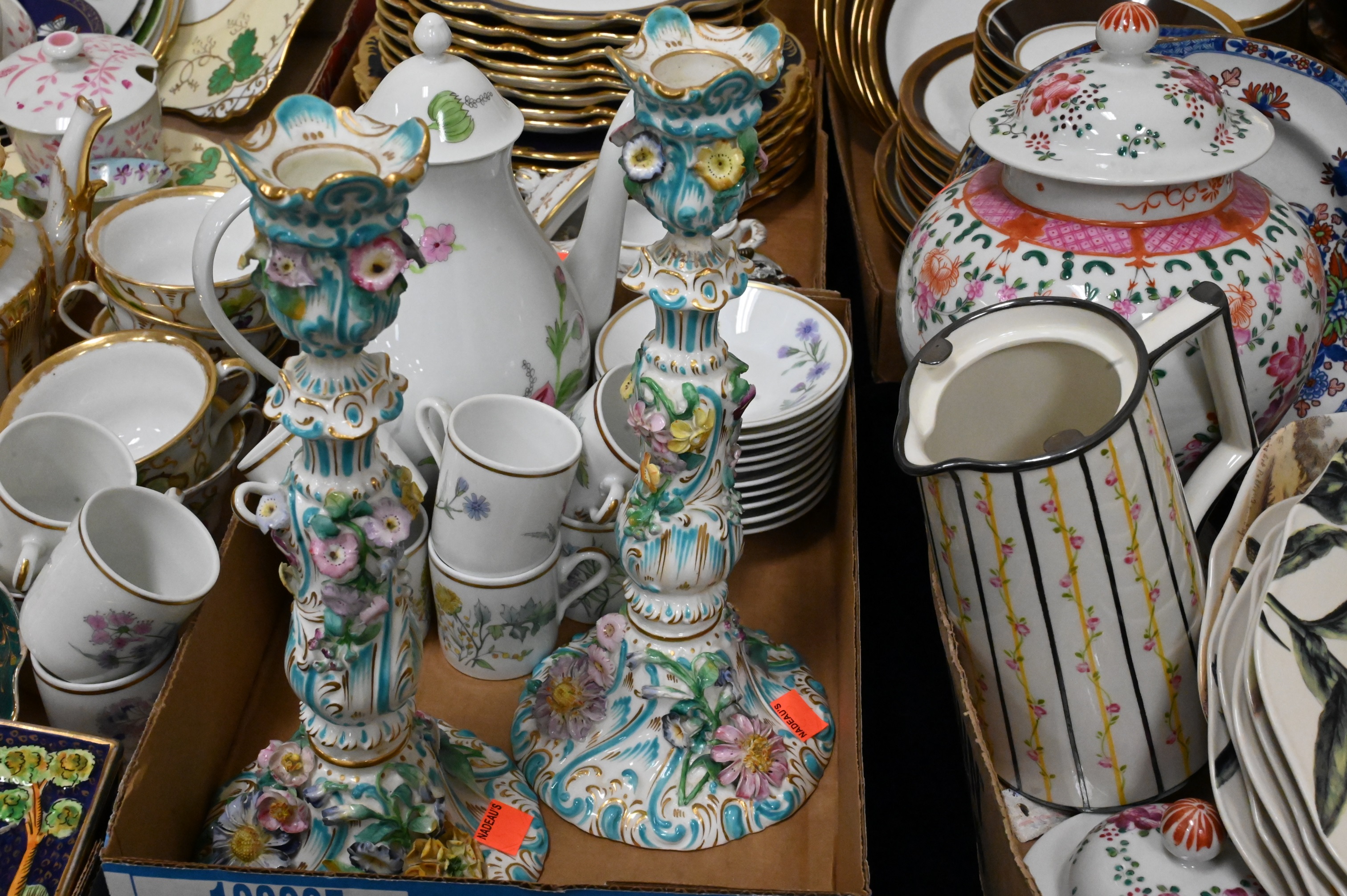 Four Box Lots of Porcelain, dishware, to include Richard Ginori, Coalport “Cellini”, Tiffany & Company “Alison”, Williamsburg, etc.; tallest 11 inches.