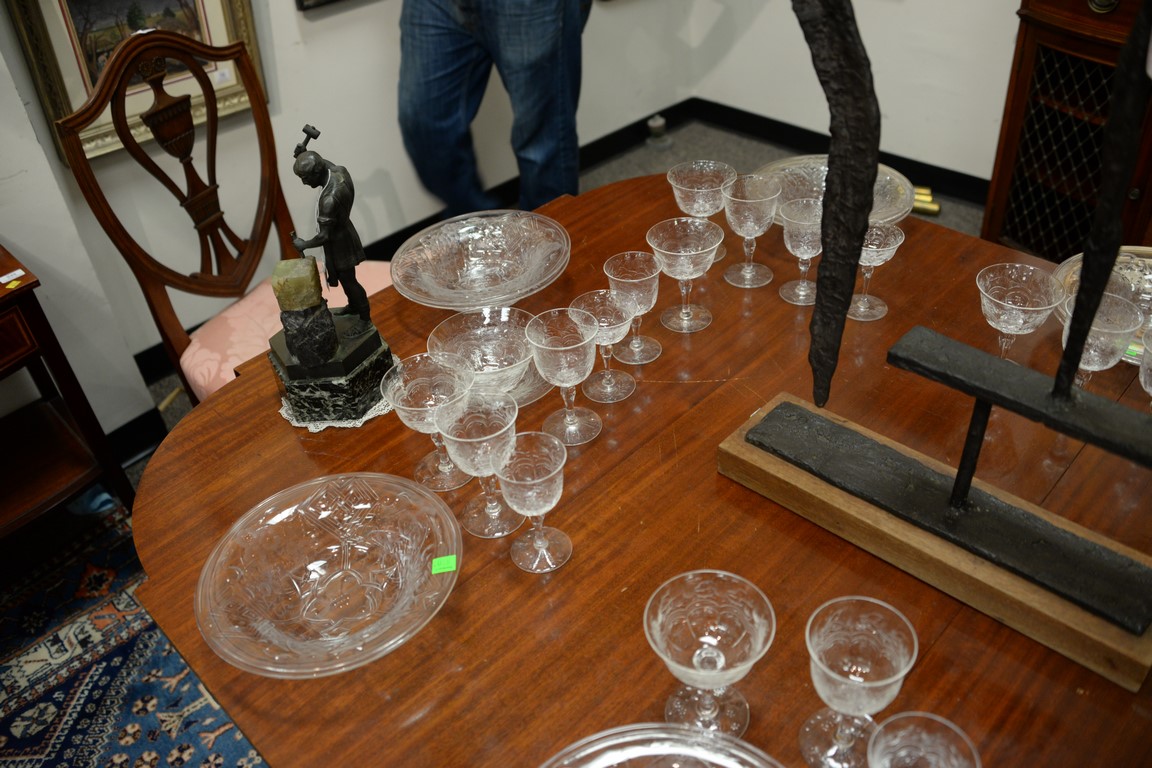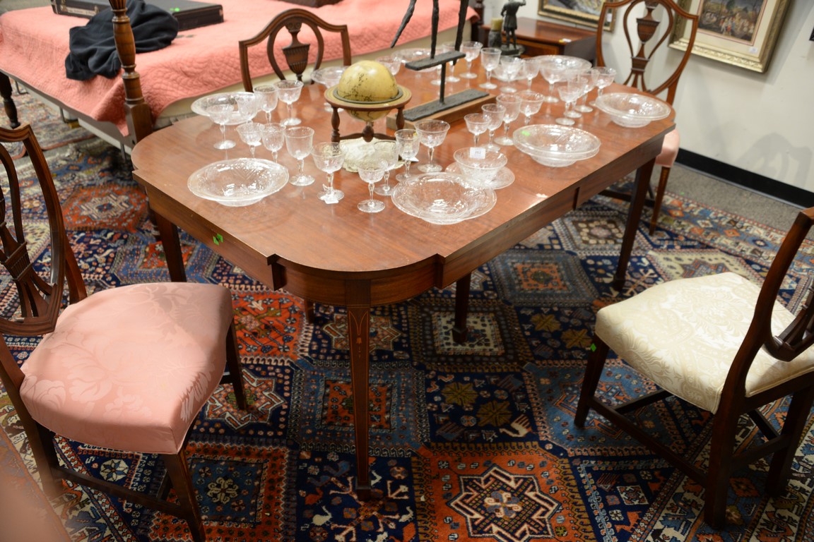 Margolis Federal style dining table with D shaped ends on square tapered legs with two 12inch leaves.