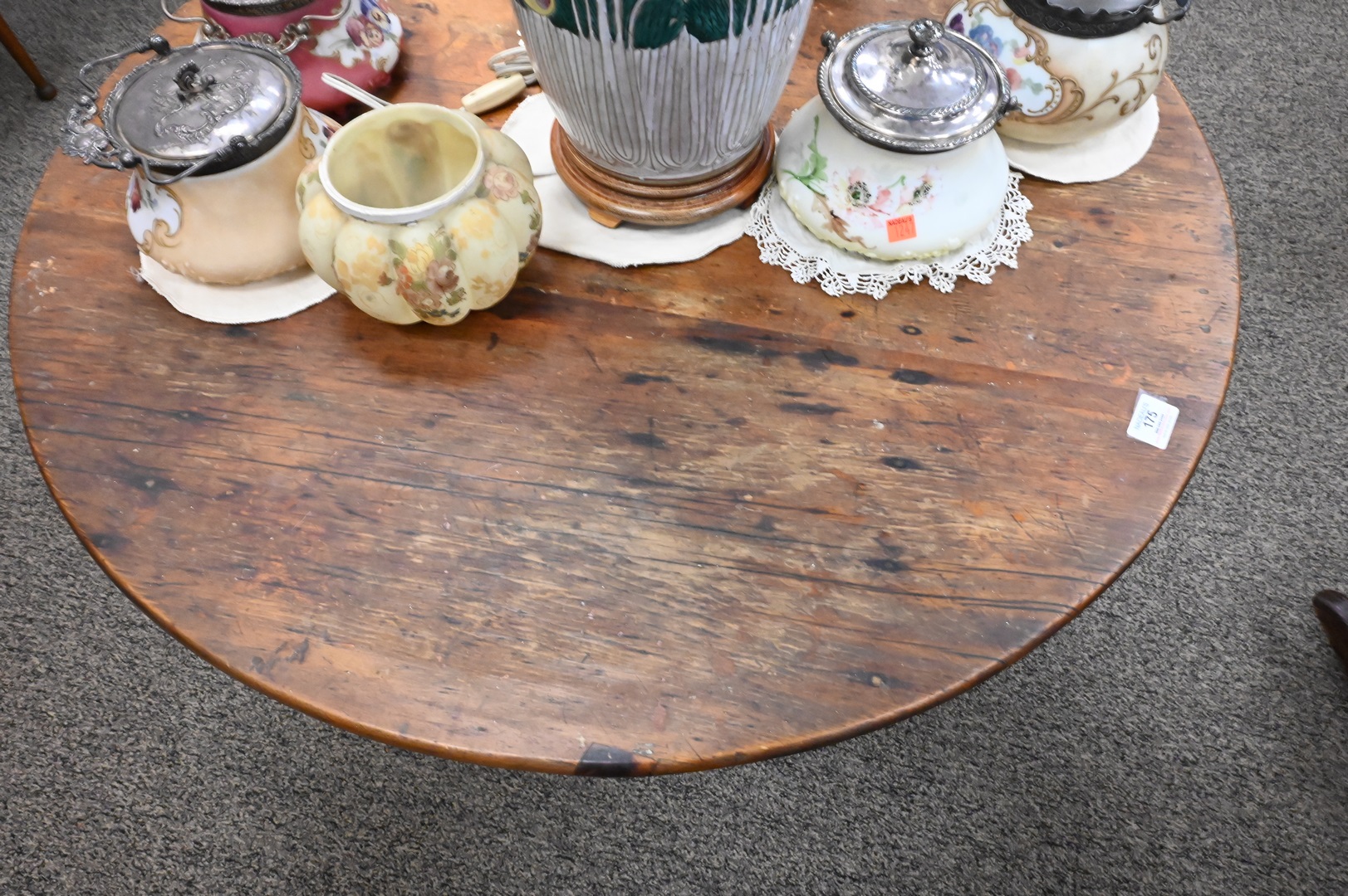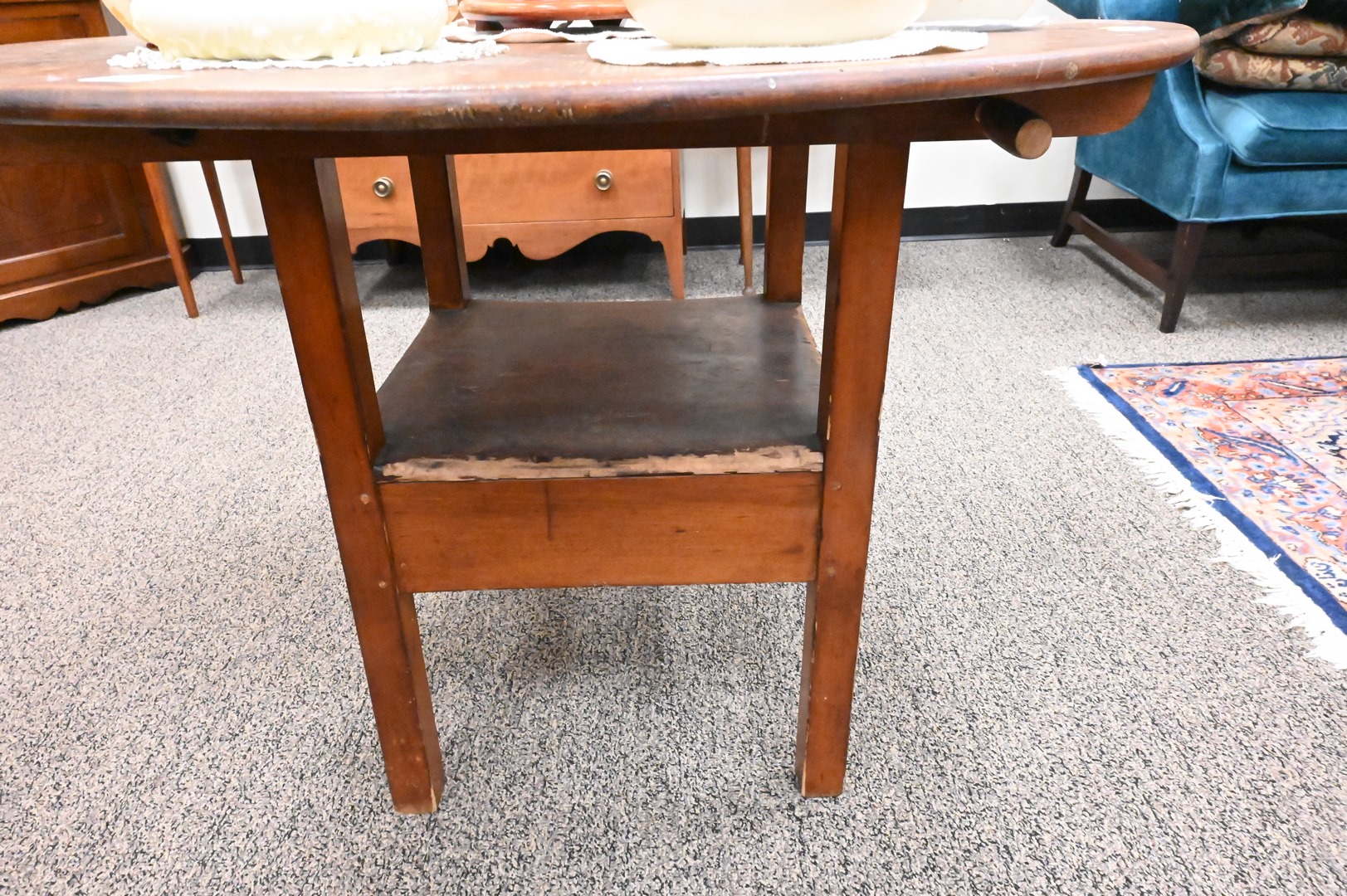 Primitive Hutch Chair Table, having round top, height 27 1/4 inches, diameter 39 inches.